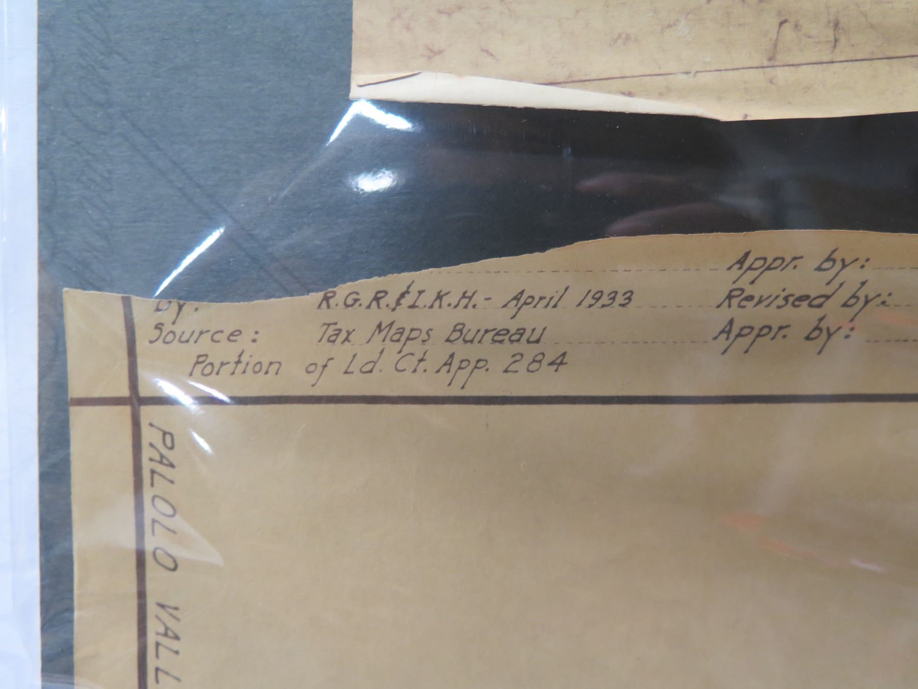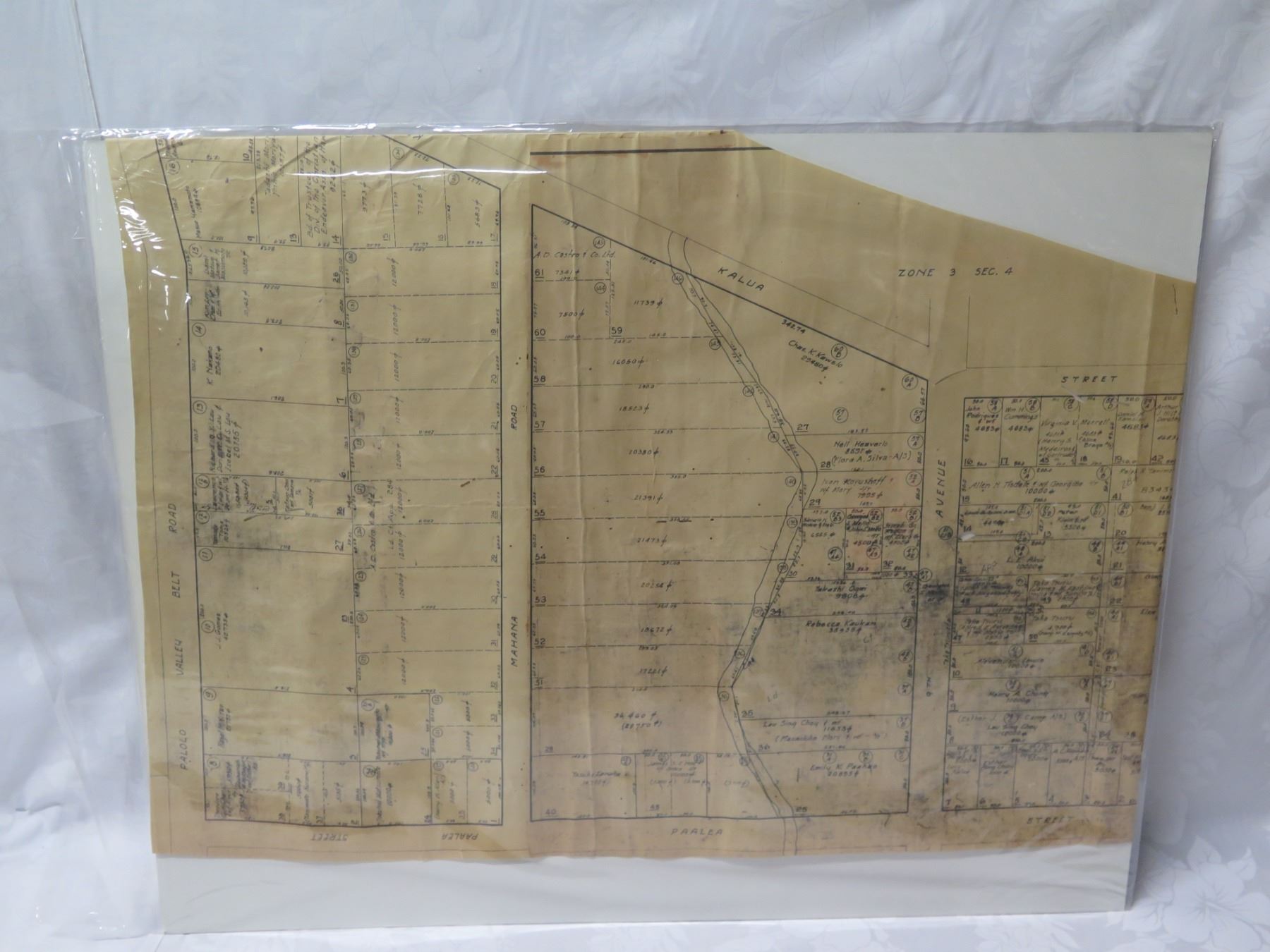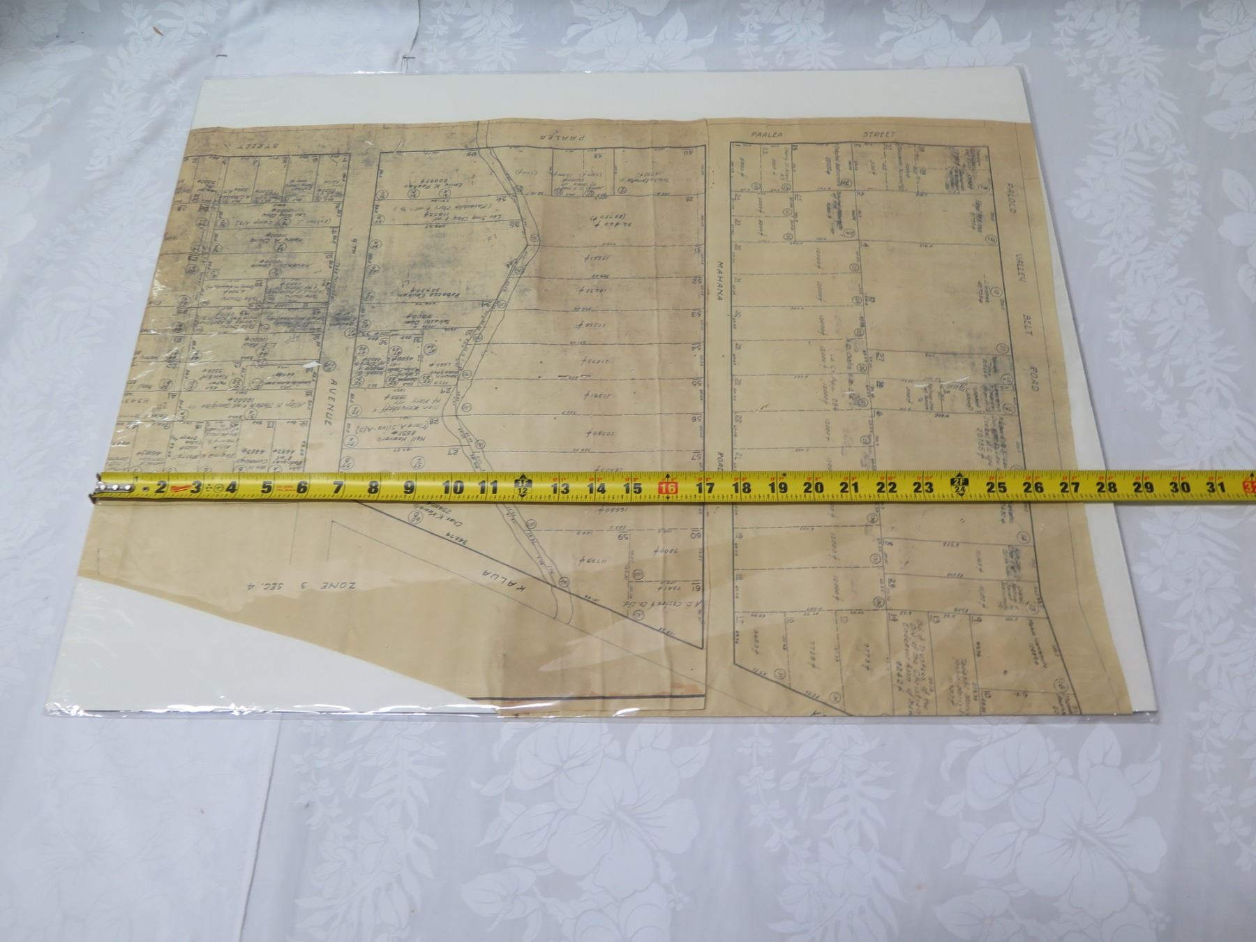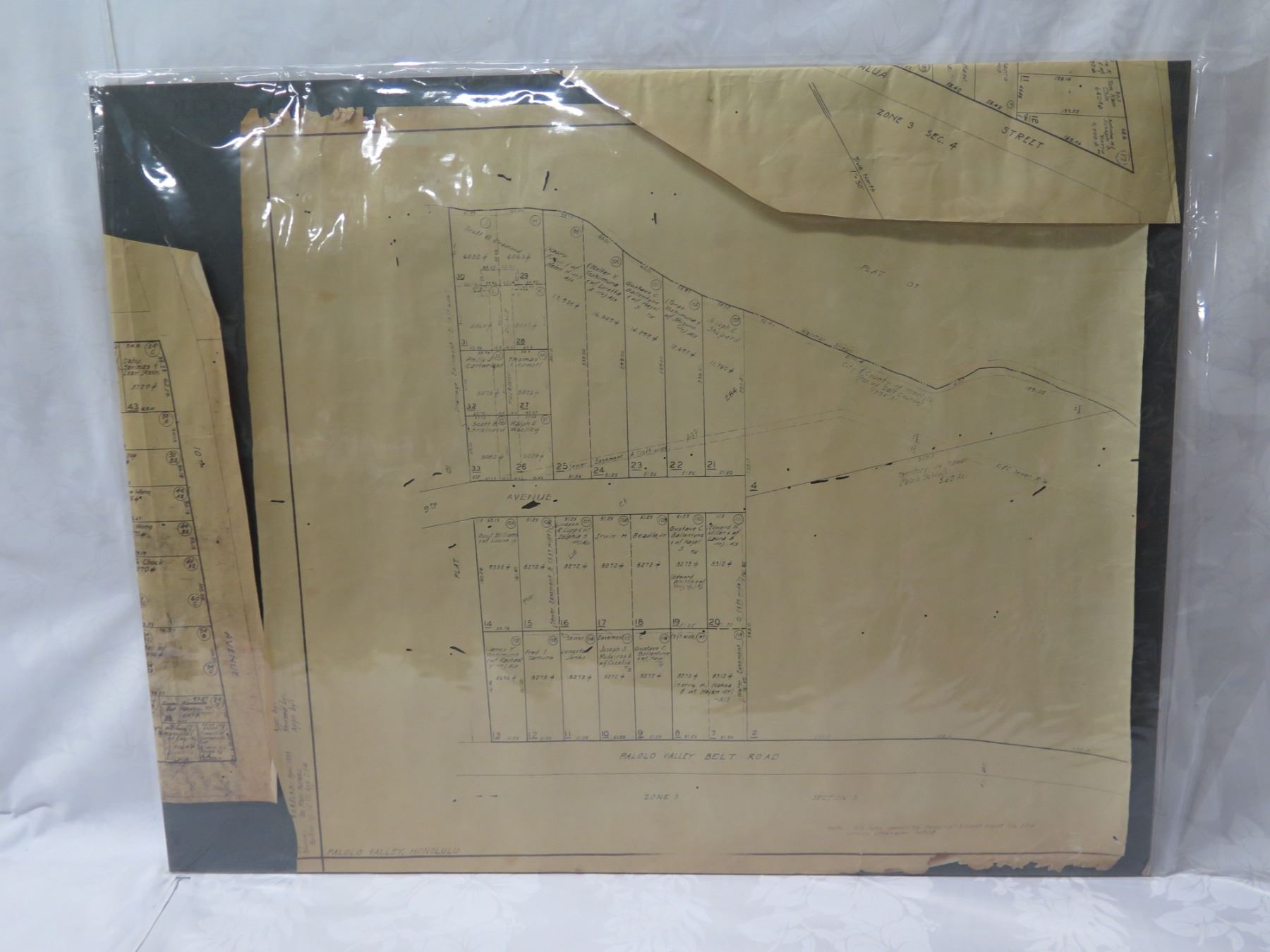 Palolo Valley Belt, Honolulu 1933 Tax Maps Bureau, Survey Office 28"x22"