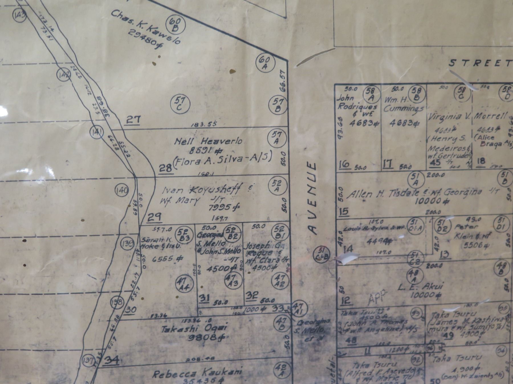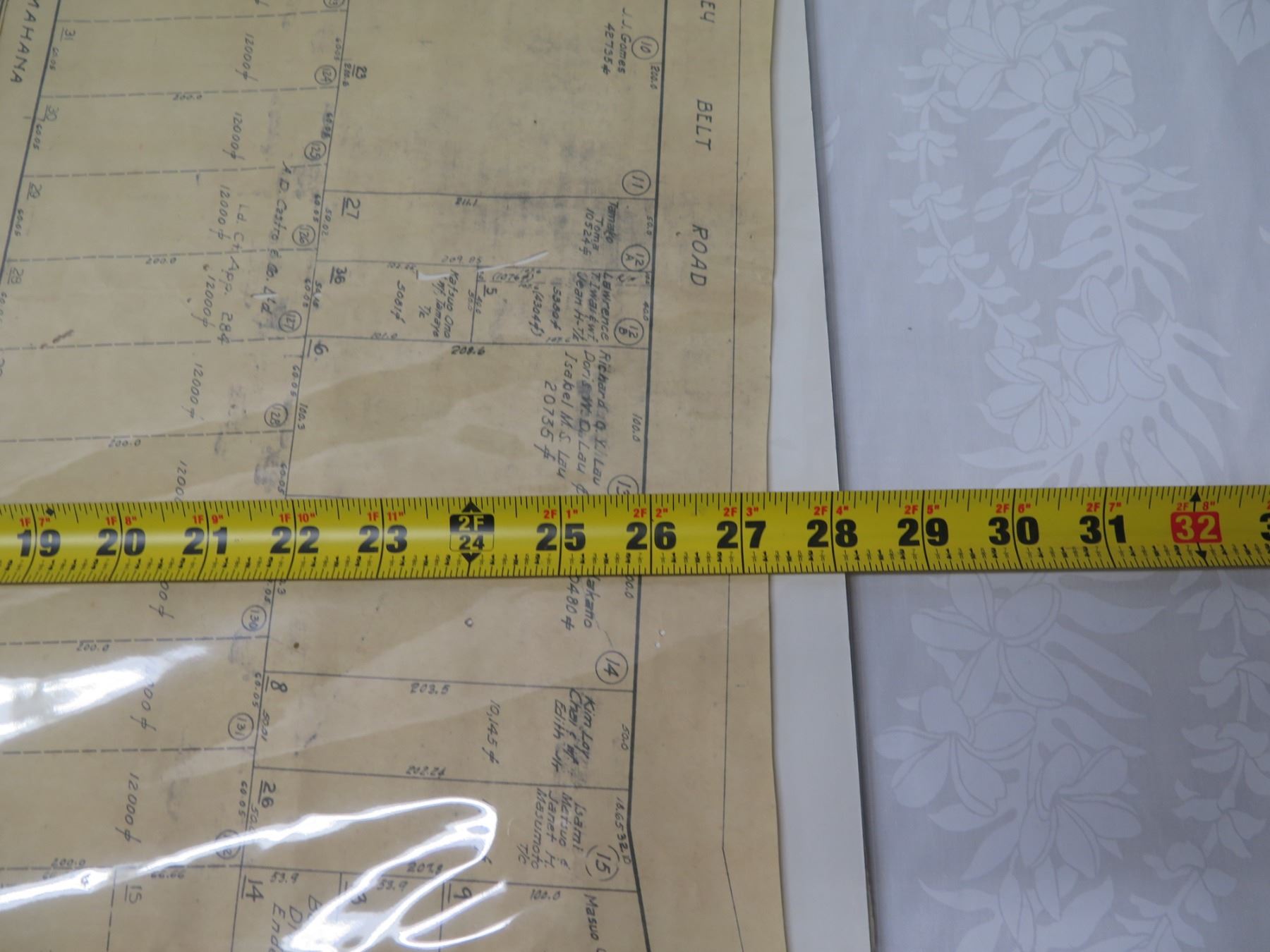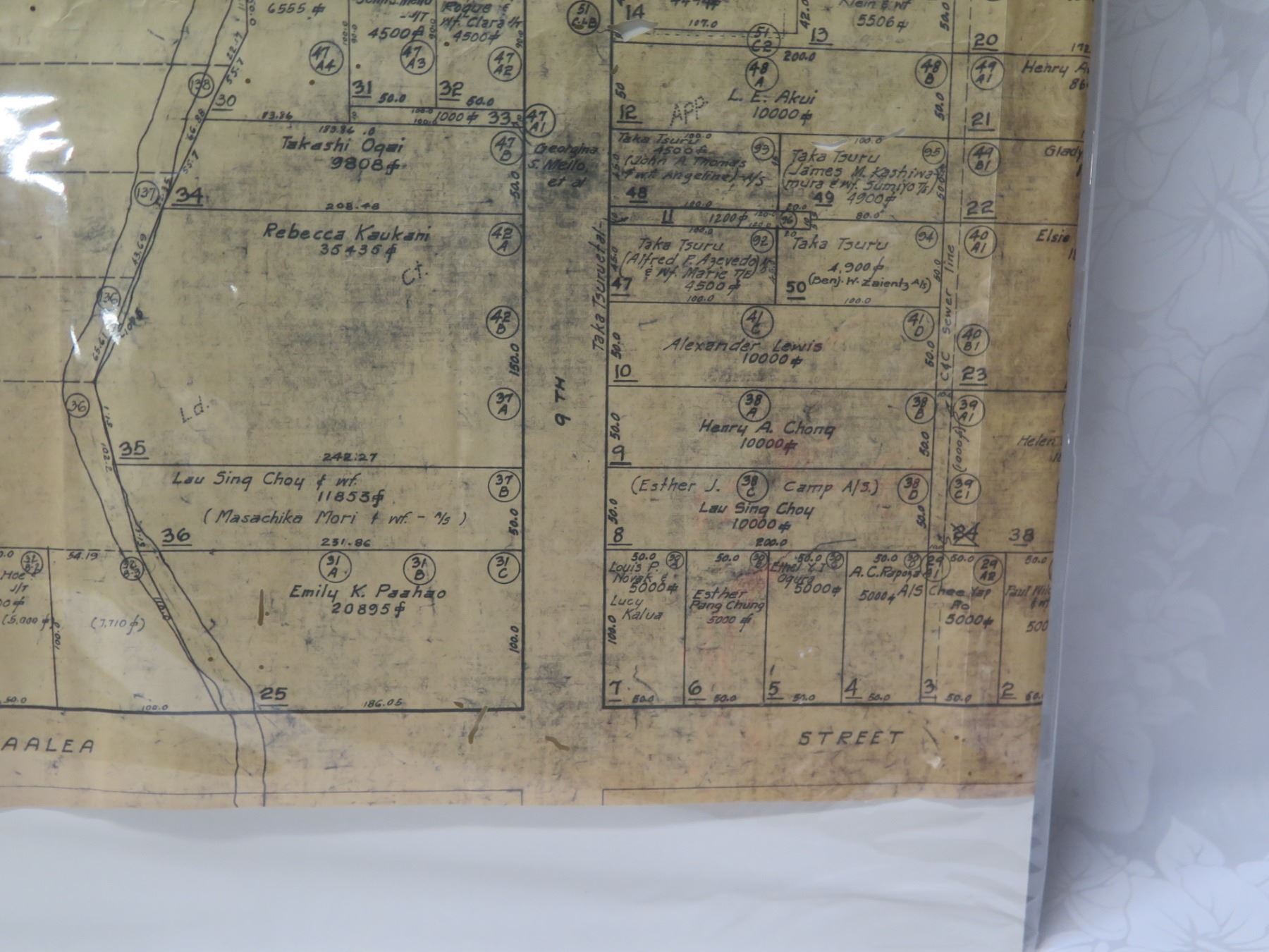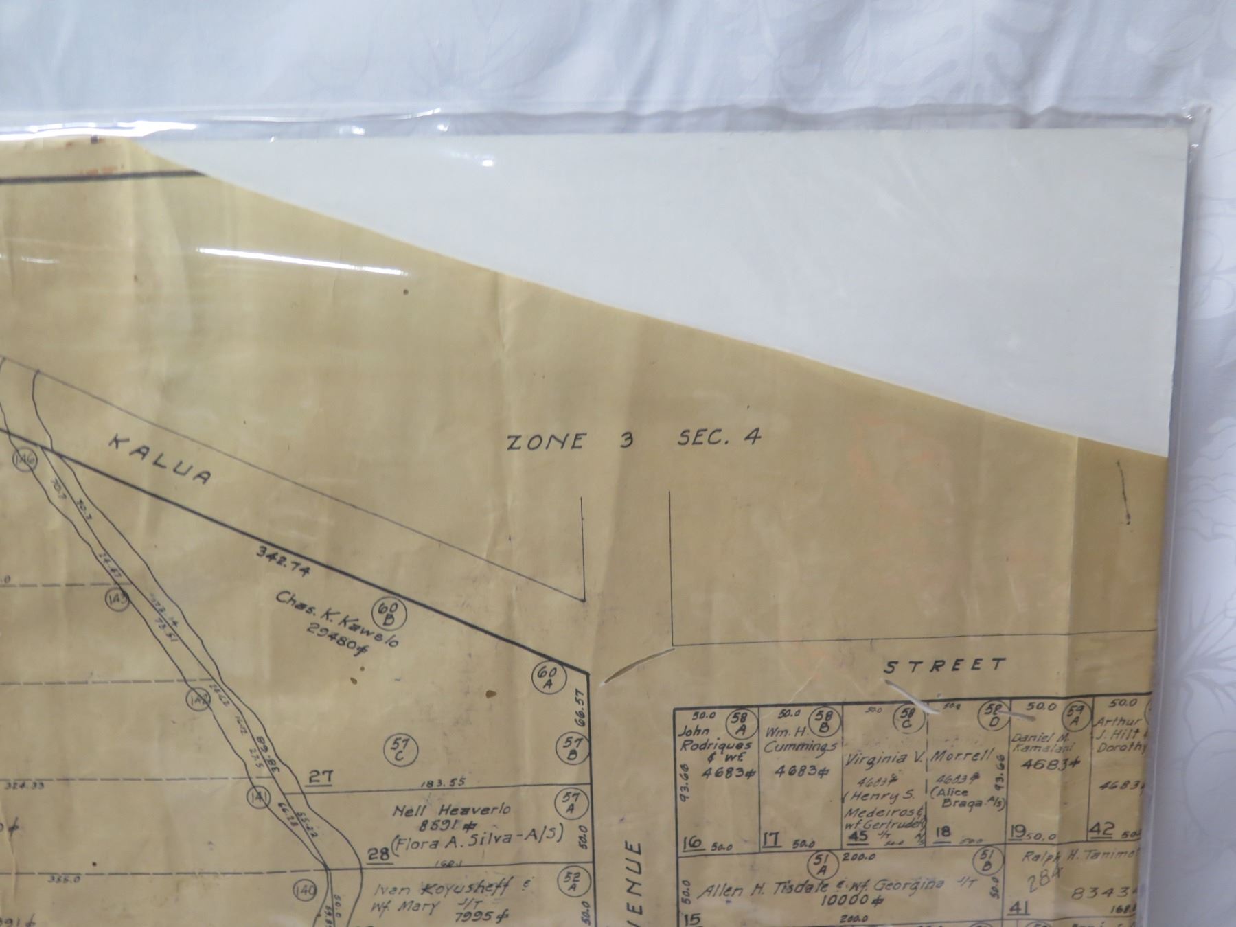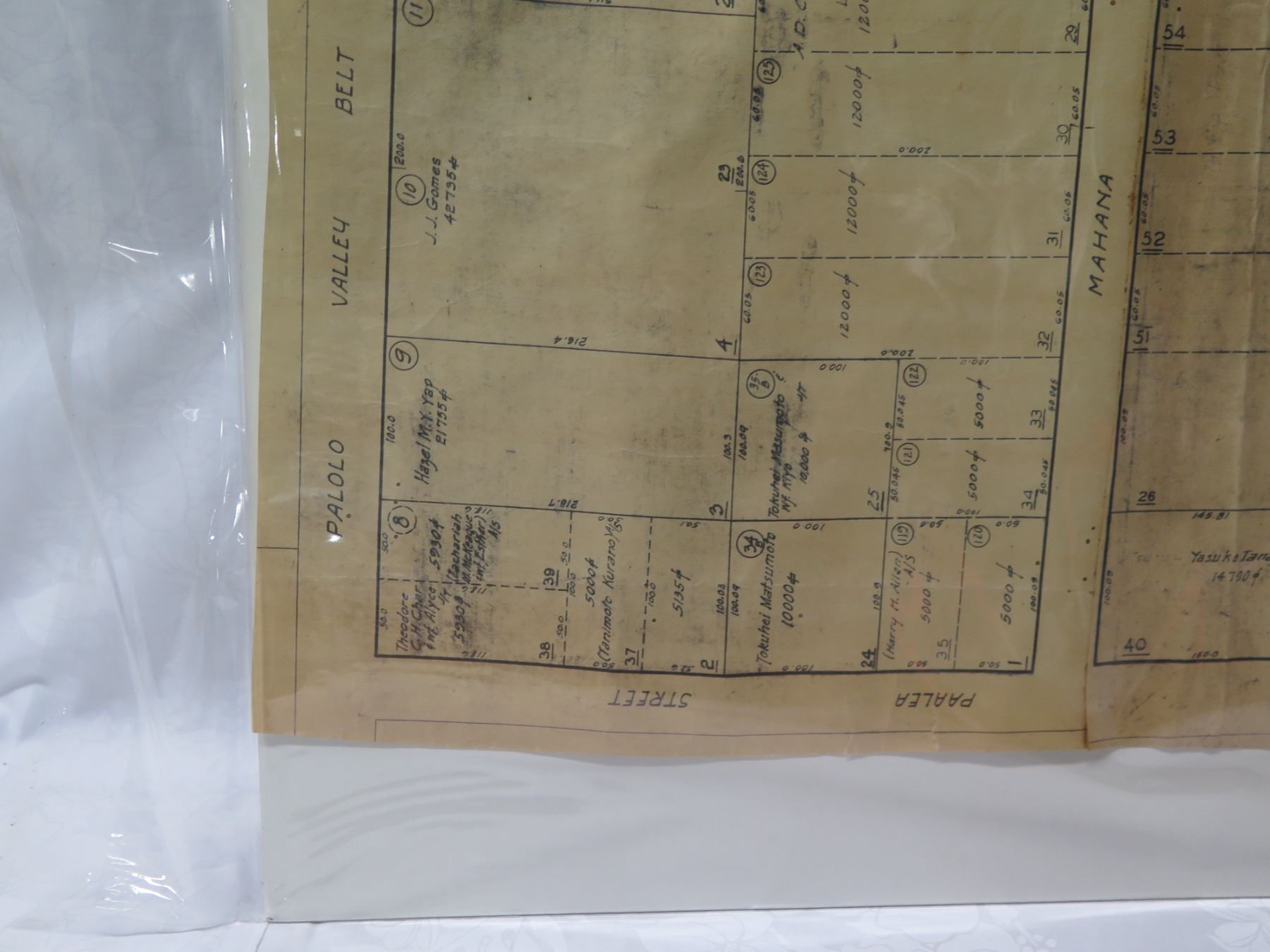 Palolo Valley Belt, Honolulu 1933 Tax Maps Bureau, Survey Office 28"x22"