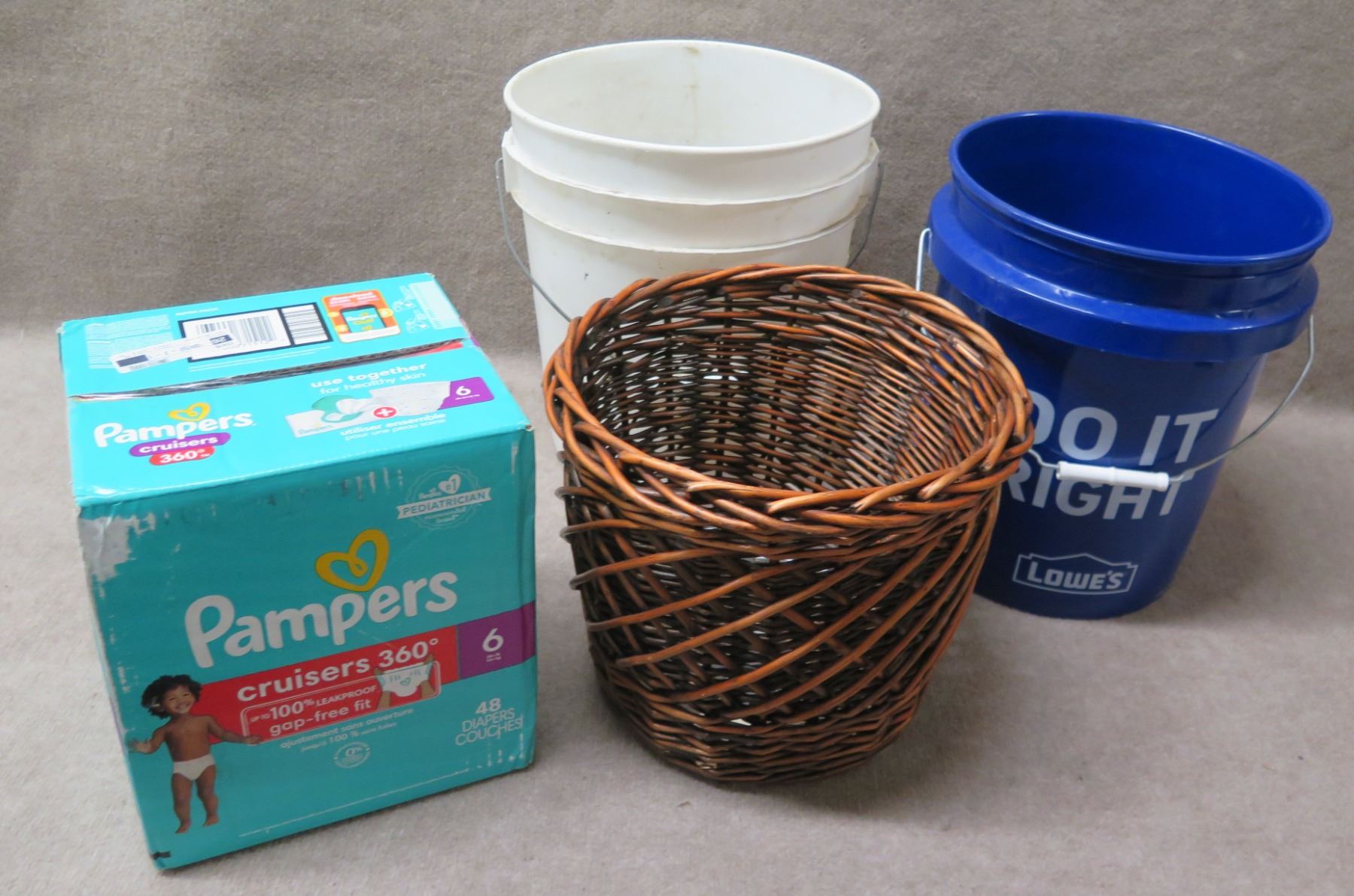 Pampers Cruisers 360 Diapers, Wicker Basket, 2 Pails