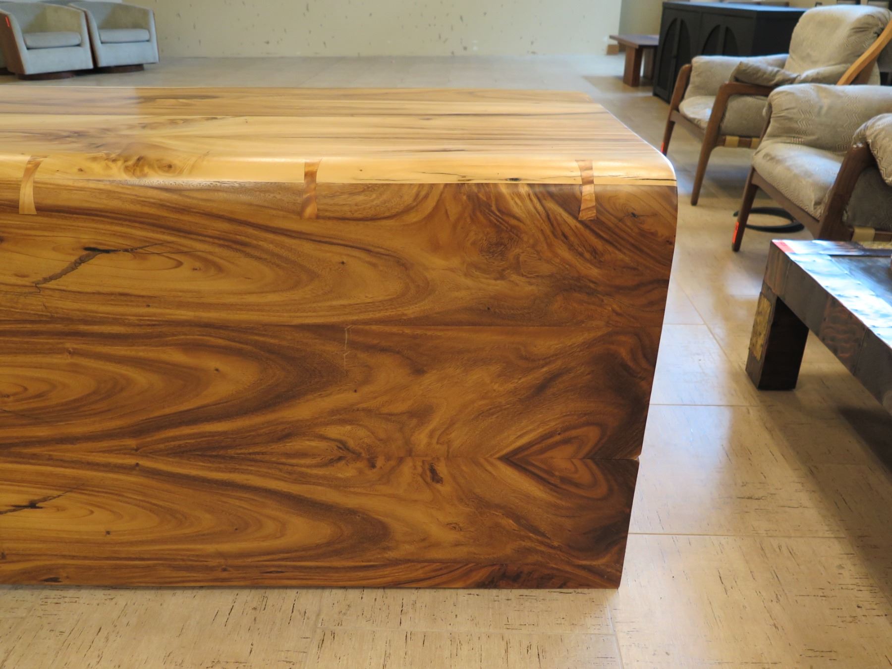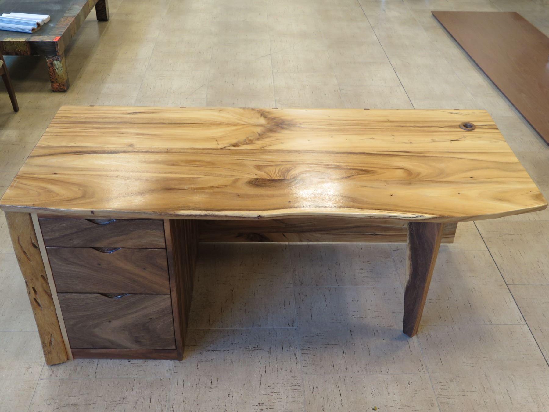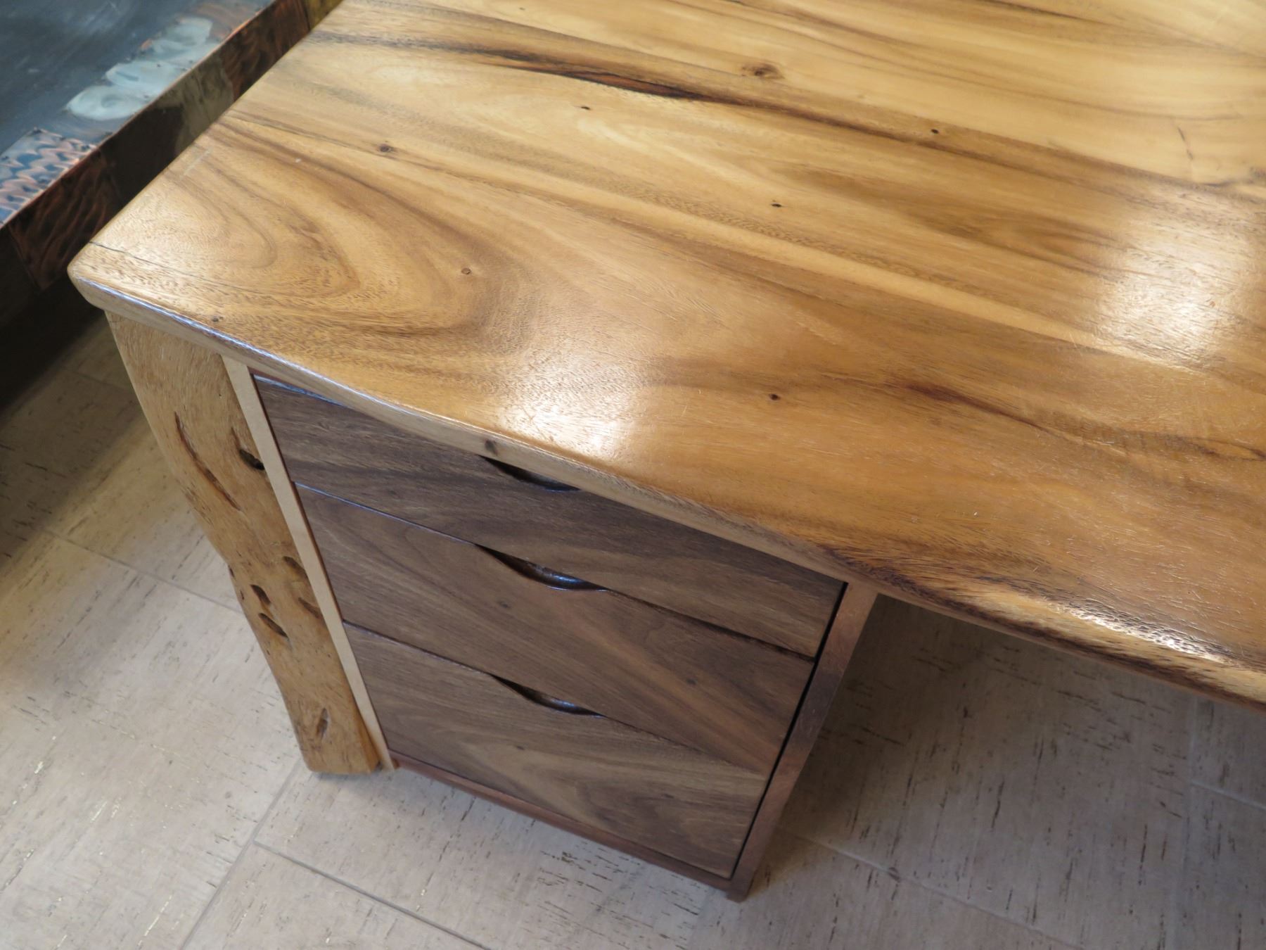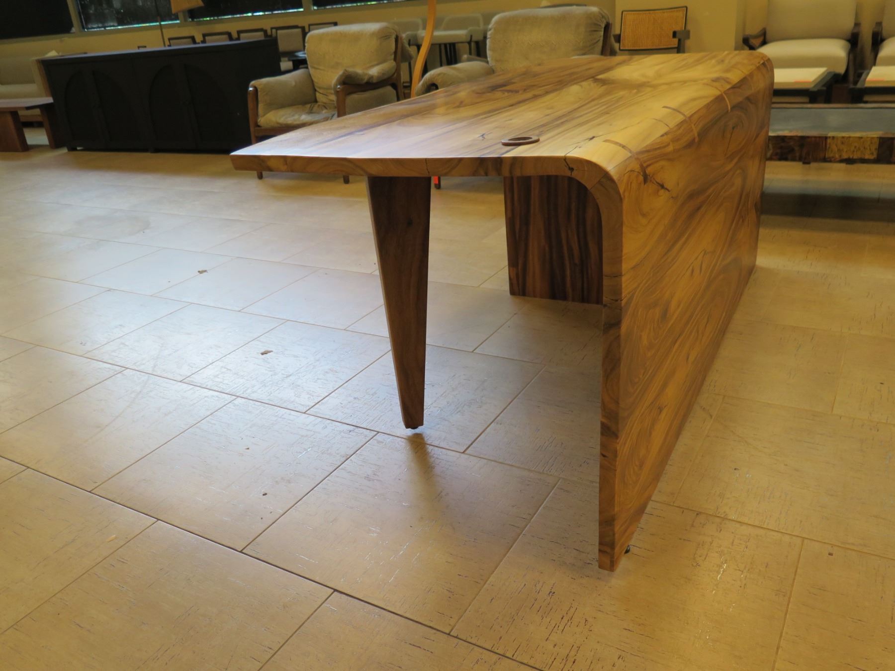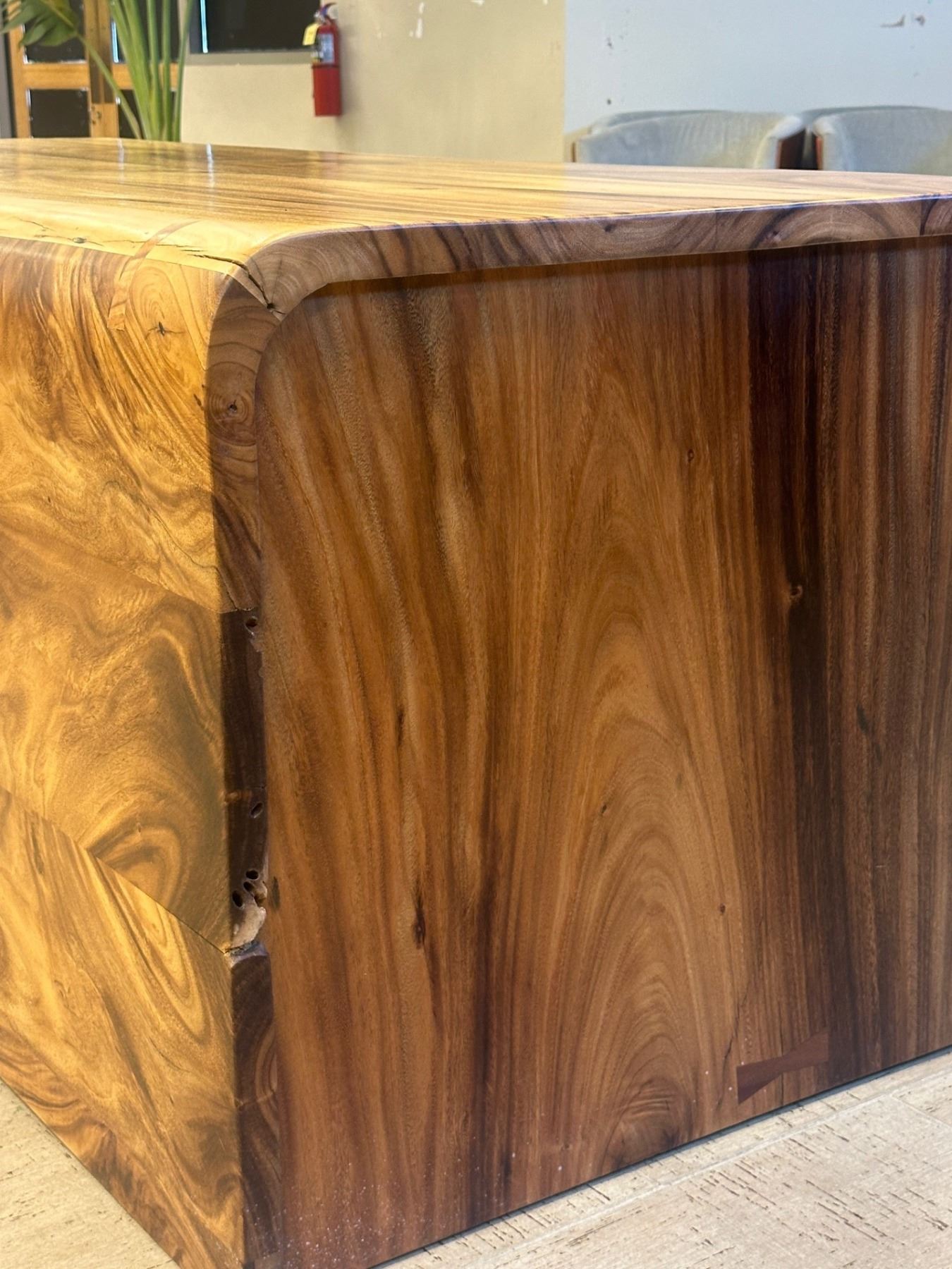 Papali Woodworks Monkeypod & Black Walnut Desk, Curved & Joined Together with dovetail detail 71"x32"x30"H.