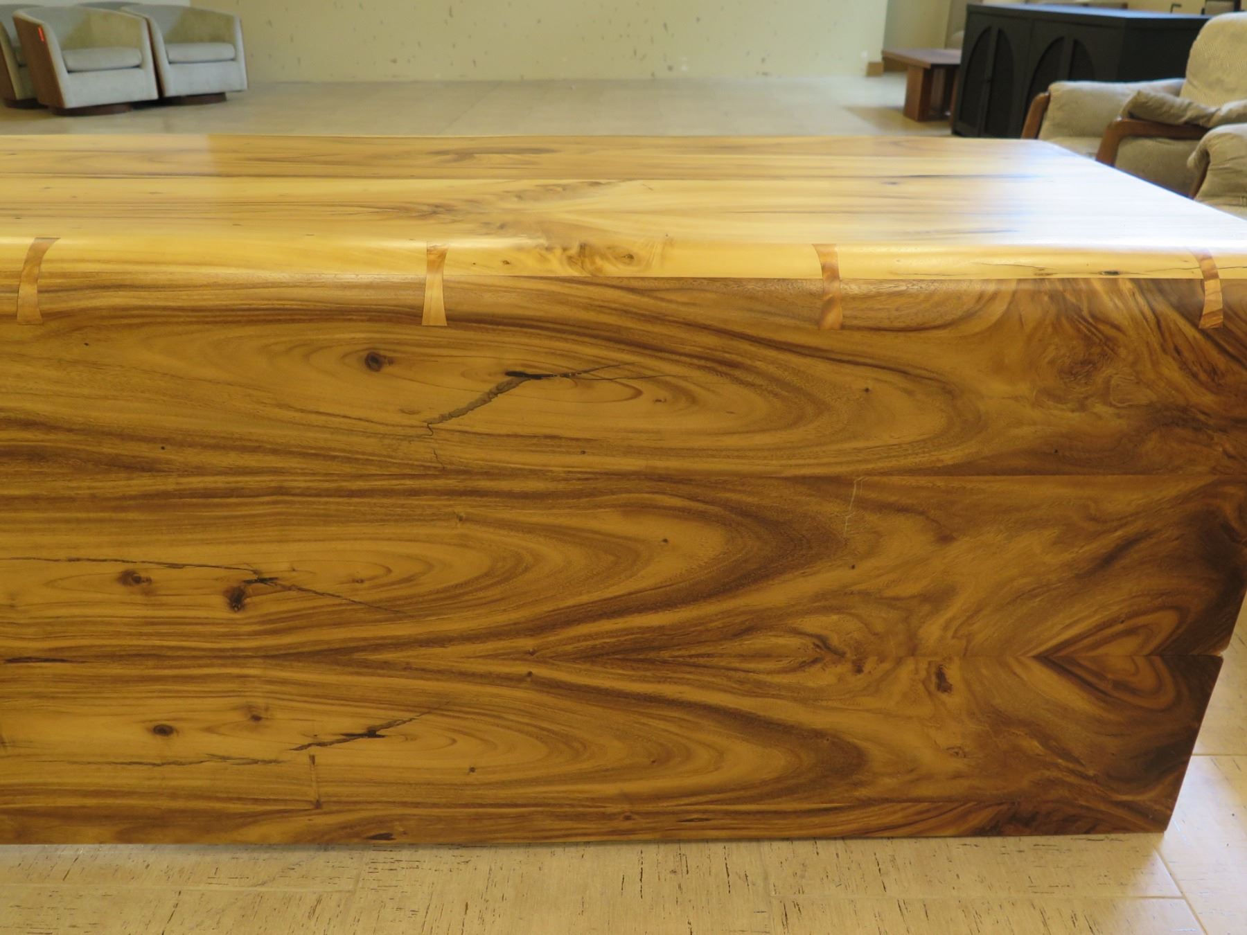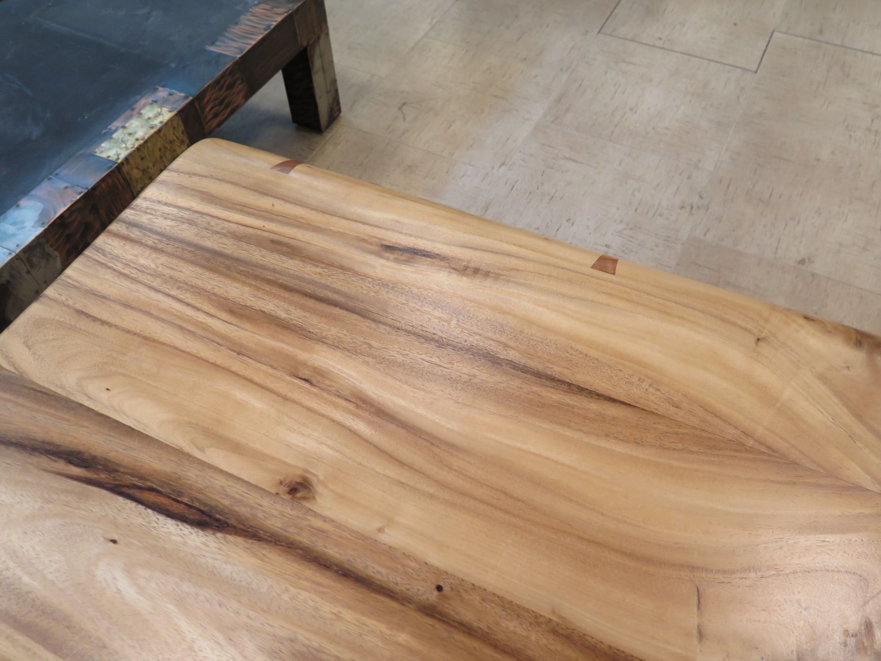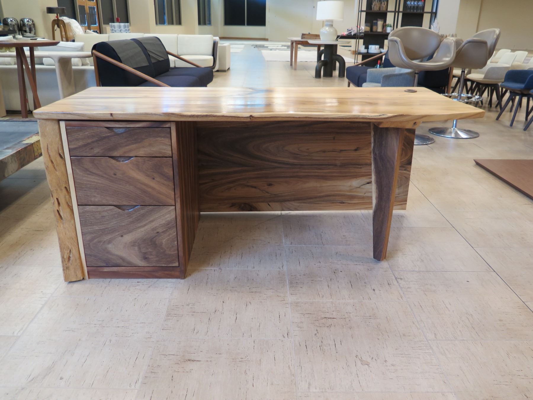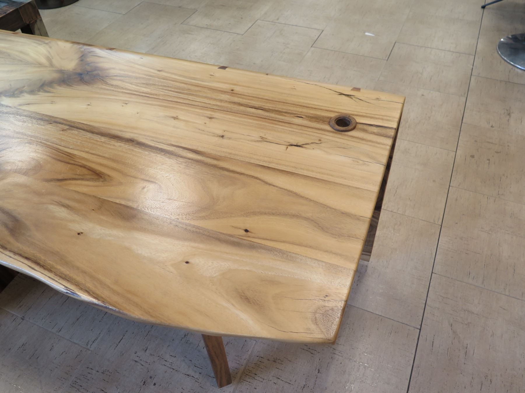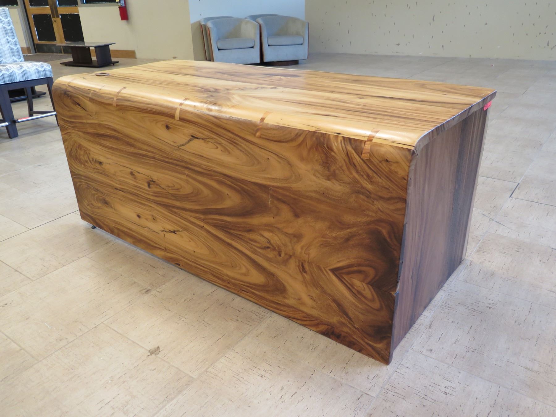 Papali Woodworks Monkeypod & Black Walnut Desk, Curved & Joined Together with dovetail detail 71"x32"x30"H.