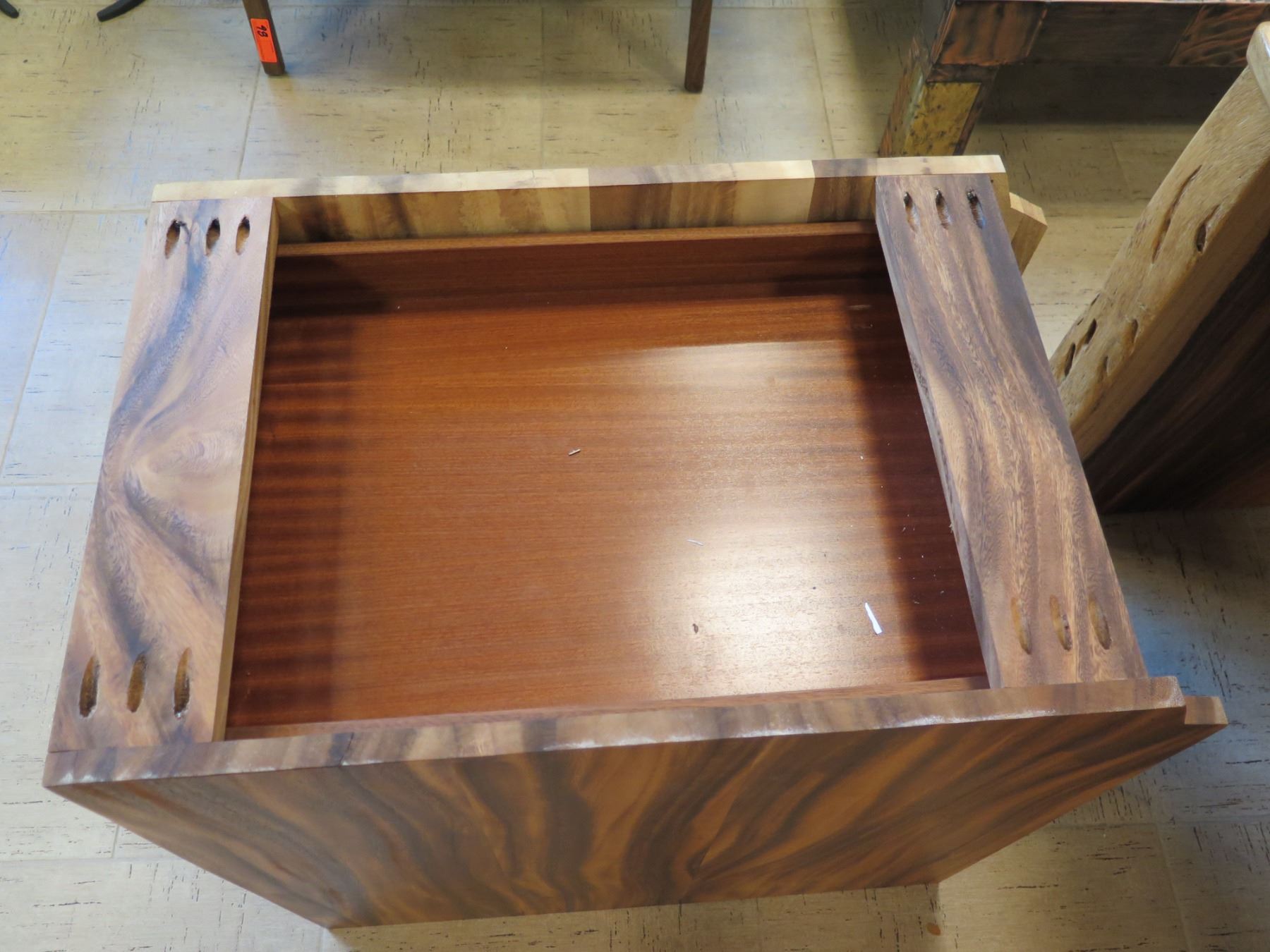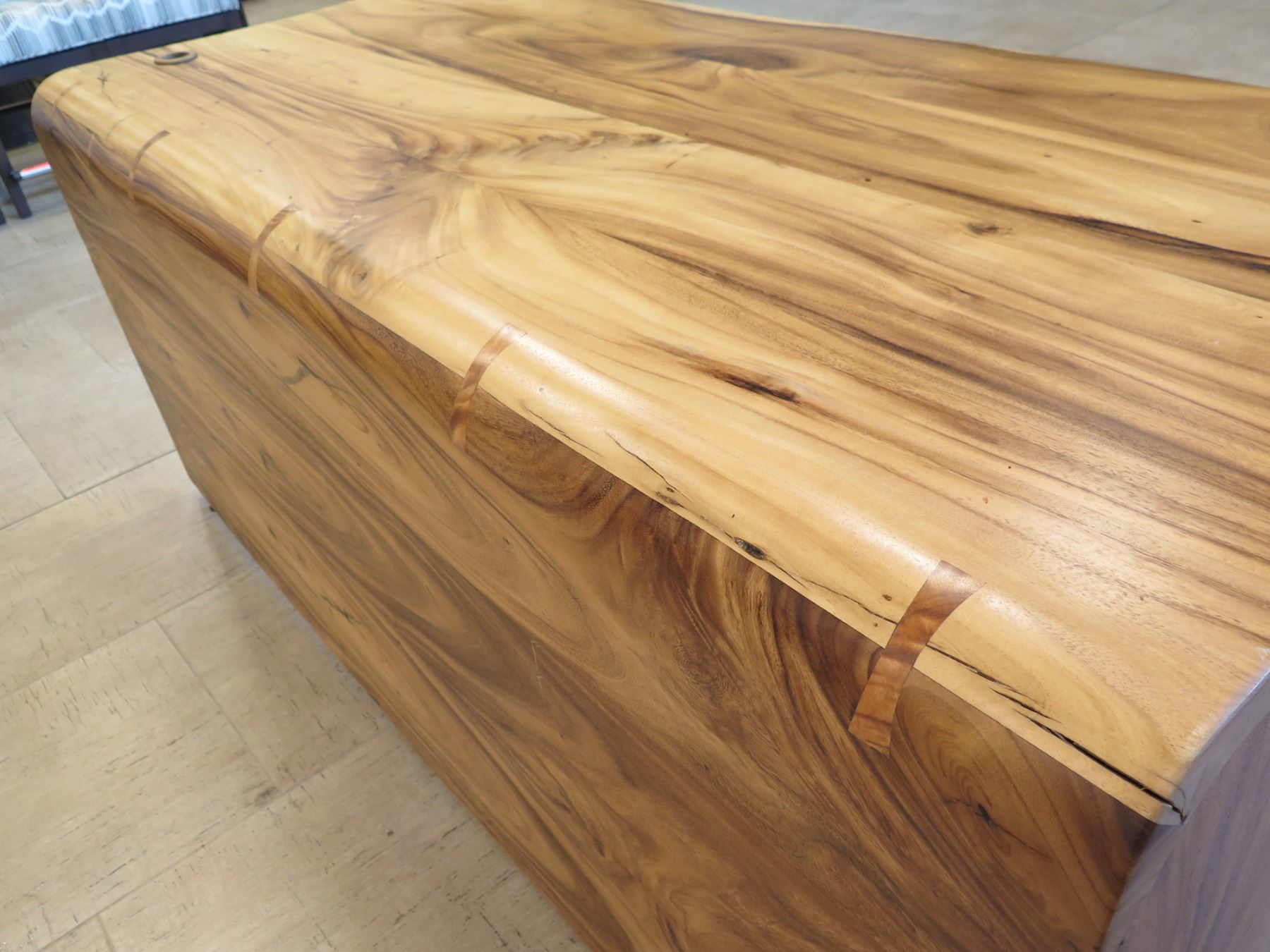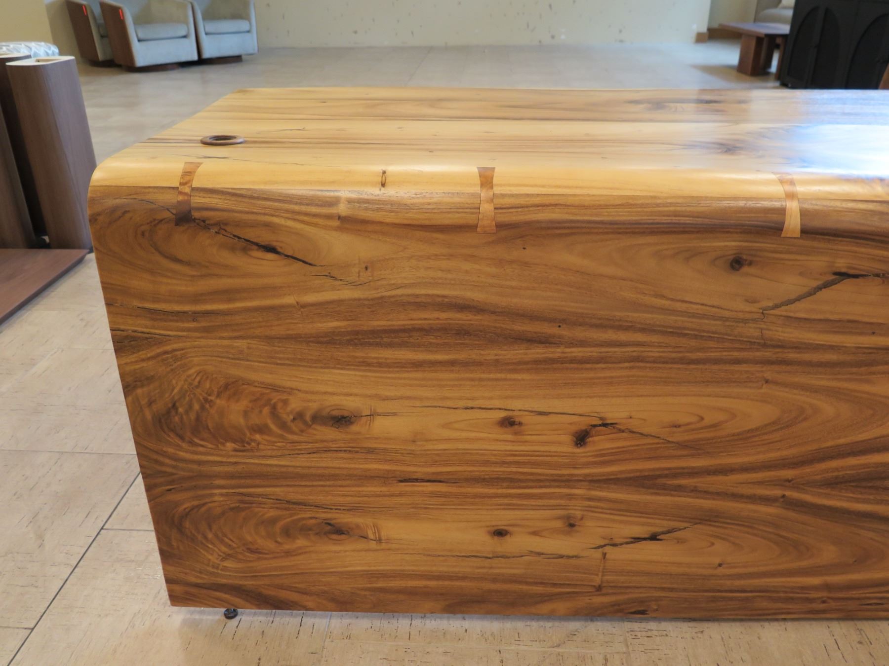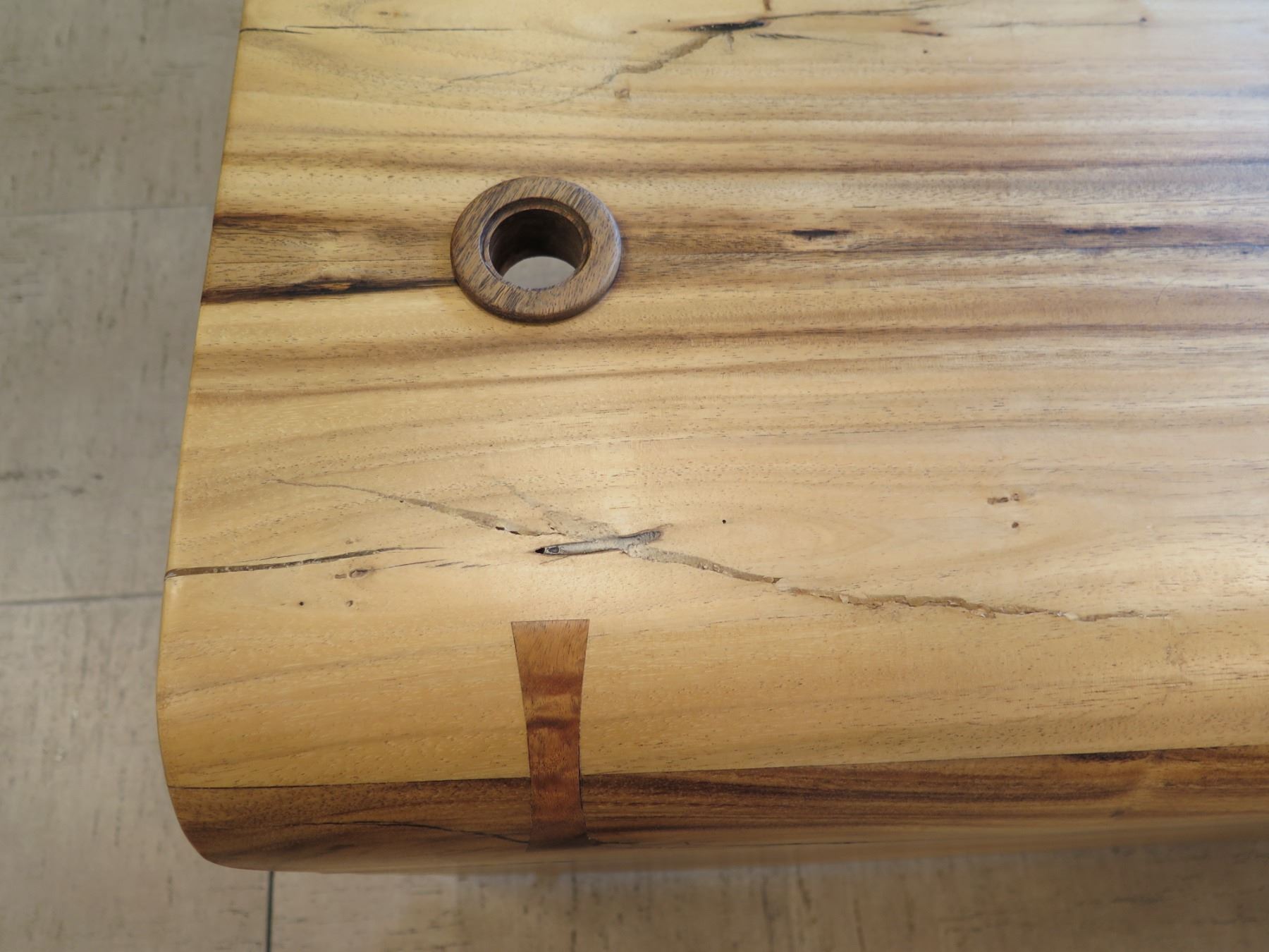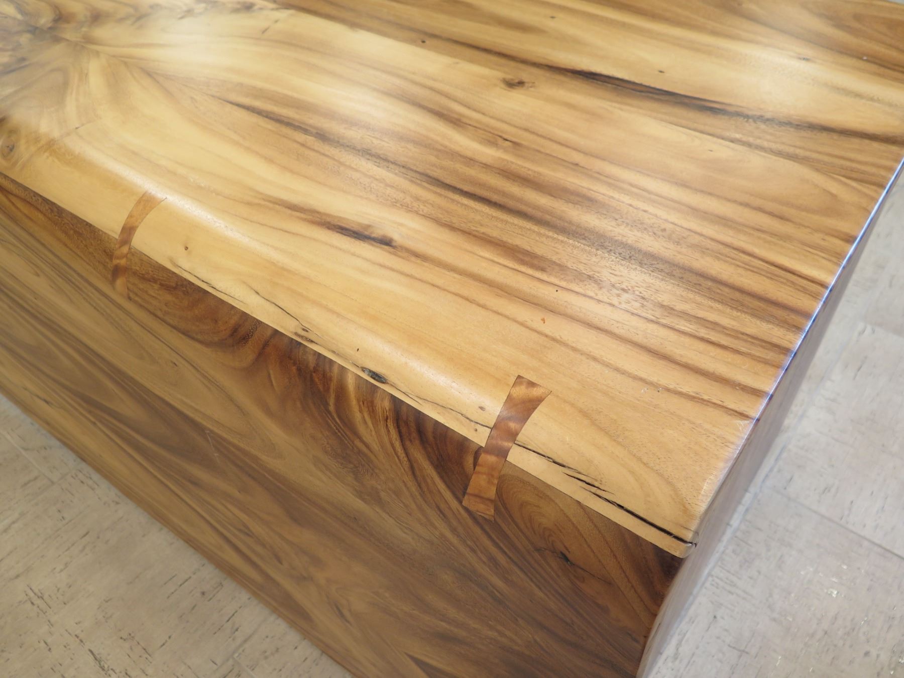 Papali Woodworks Monkeypod & Black Walnut Desk, Curved & Joined Together with dovetail detail 71"x32"x30"H.