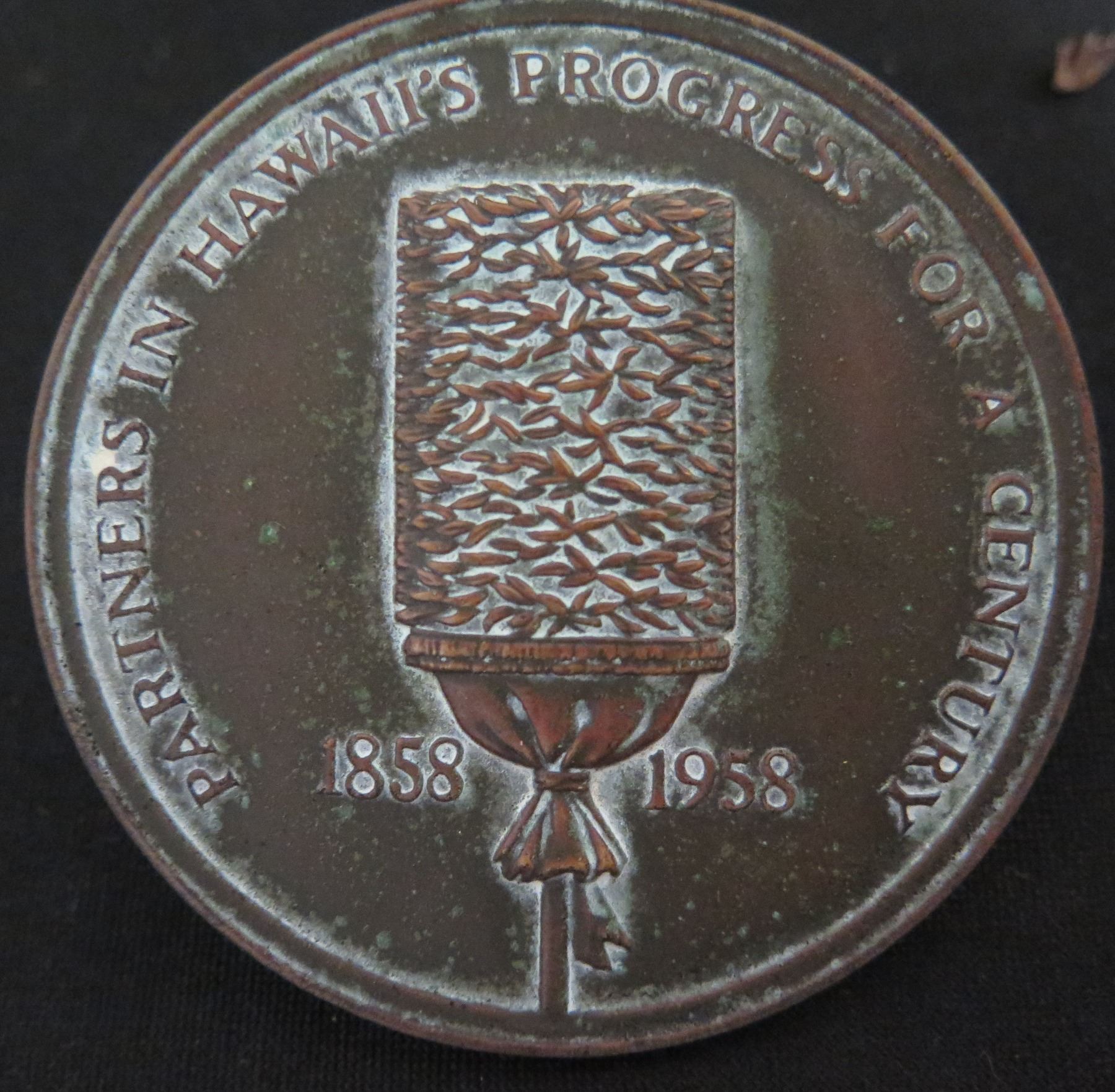 Partners in Hawaii's Progress for a Century 1858-1958 Collectible Pin 2.75"D