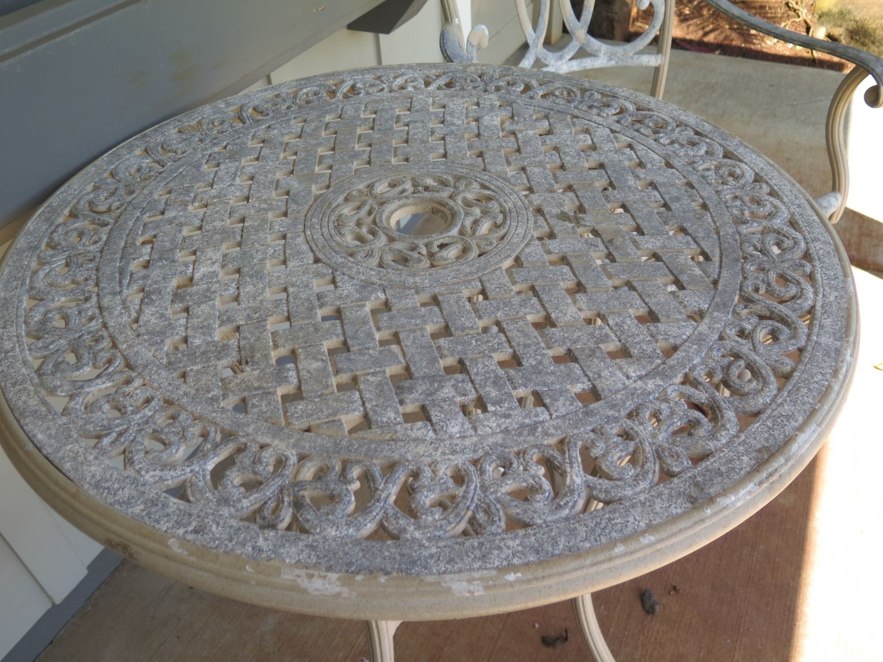 Patio Bistro Table (30" Dia, 33"H) & 2 Chairs (shows general wear and tear)
