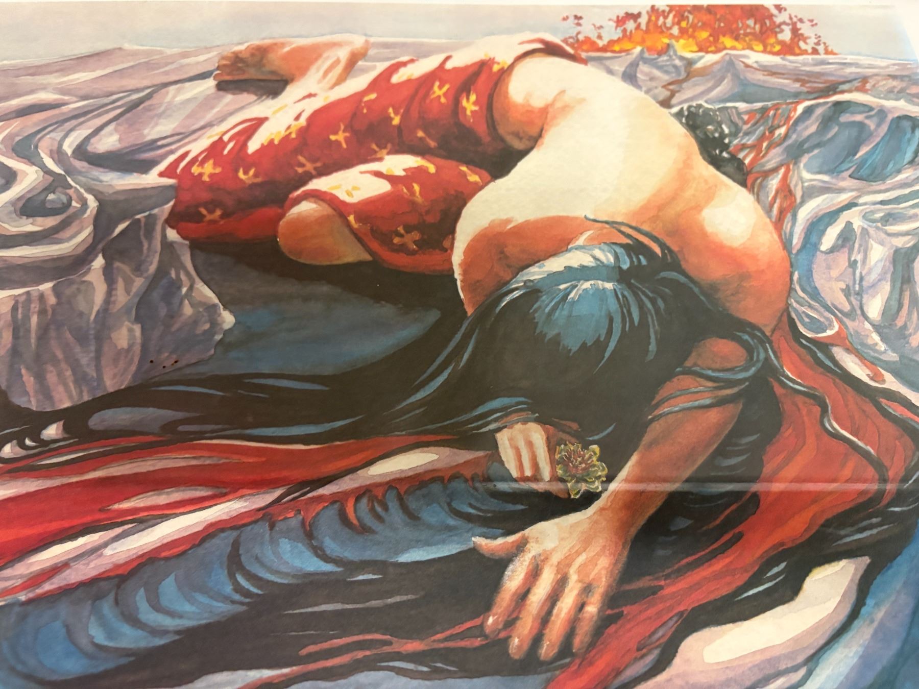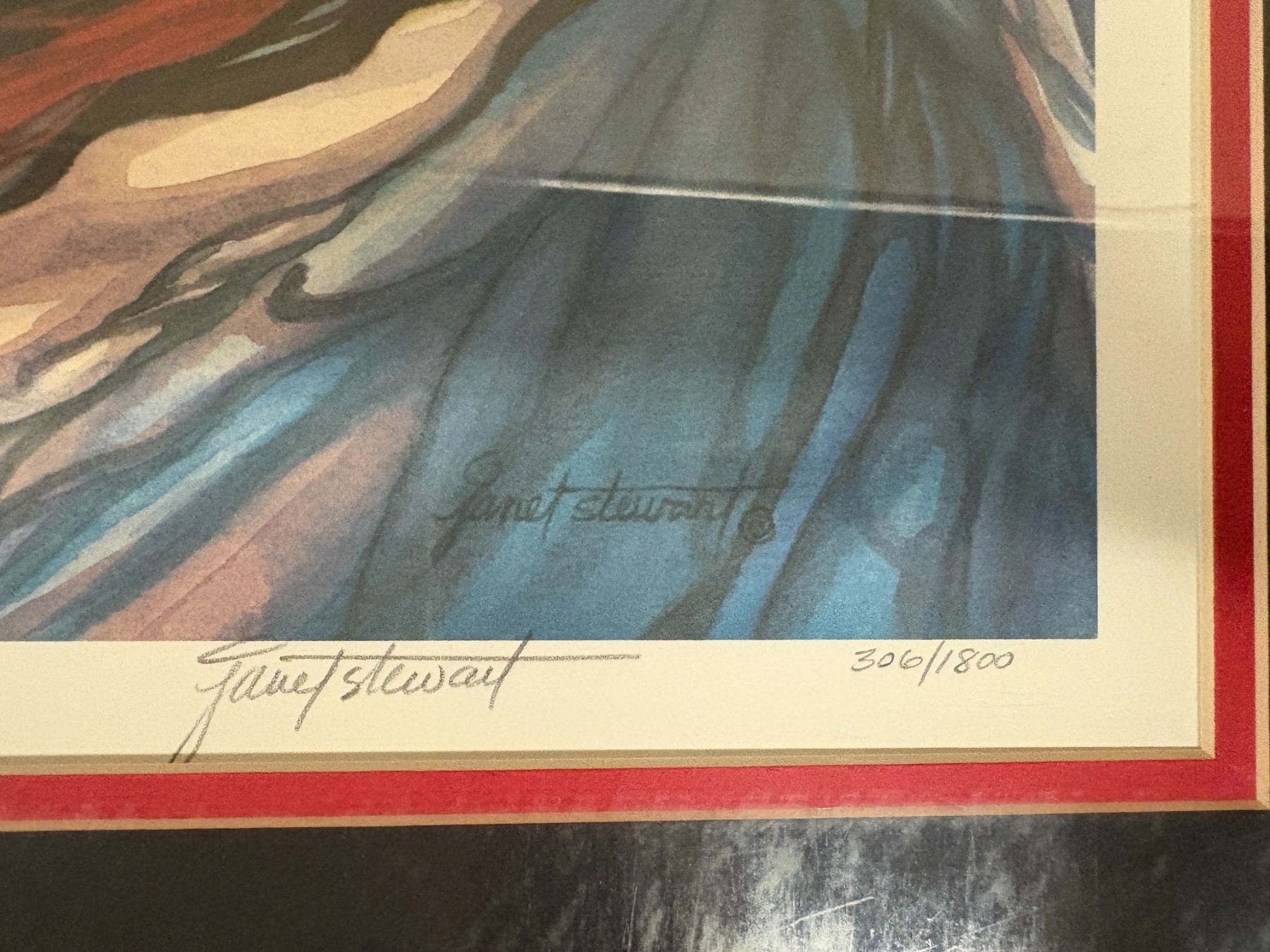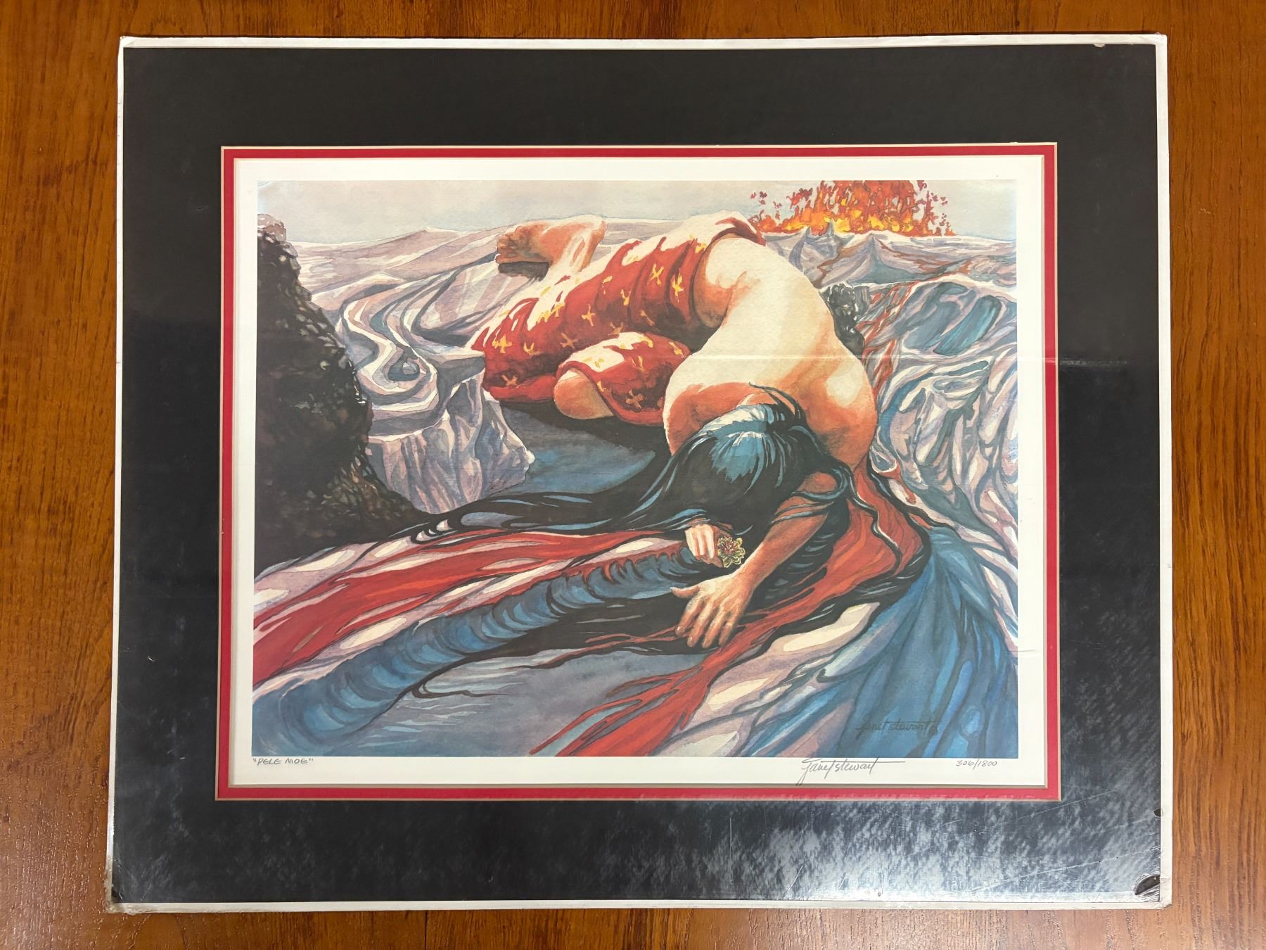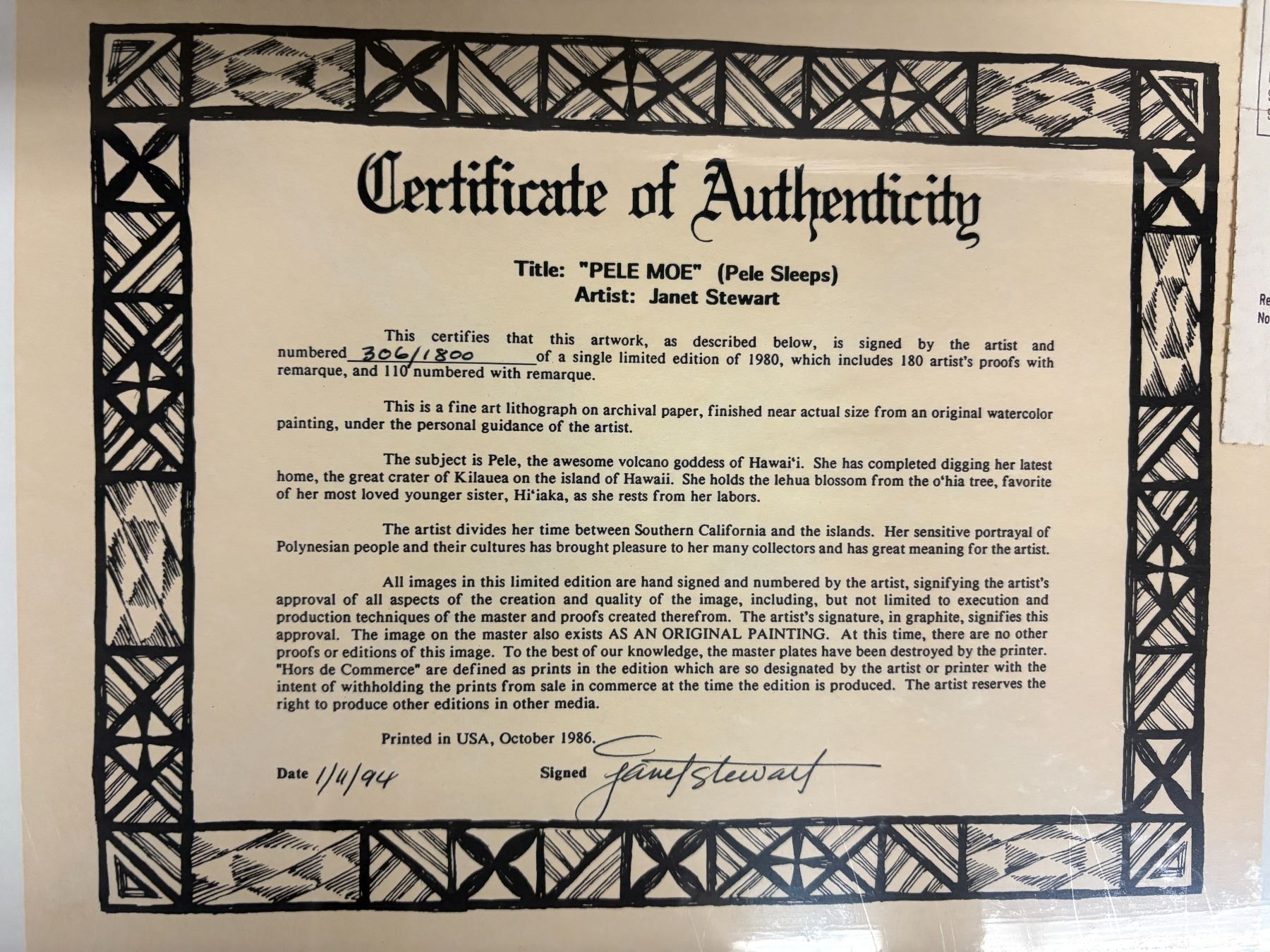 Pele Moe by Janet Stewart, Original Signature (hand-signed by artist). Ltd. Ed. fine art lithograph 306/1800. Matted. Image size approx. 16.5” x 12.5”. With matting 23" x 19". Currently wrapped in protective plastic covering.
