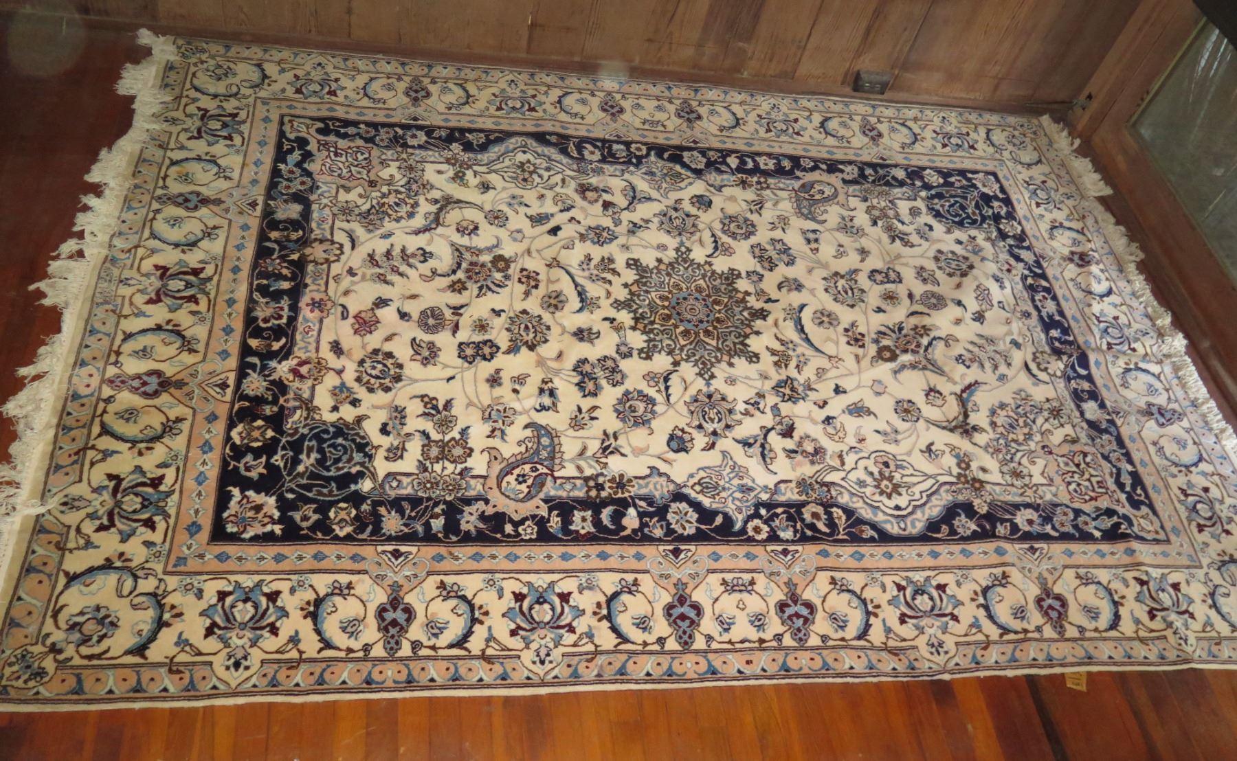 Persian Rug, Floral Motif Cream/Navy/Blue/Tan 120" x 79"