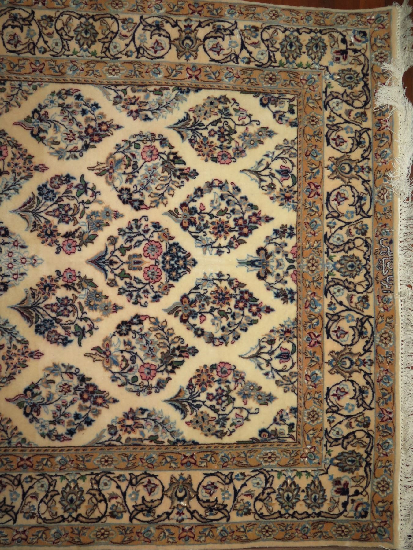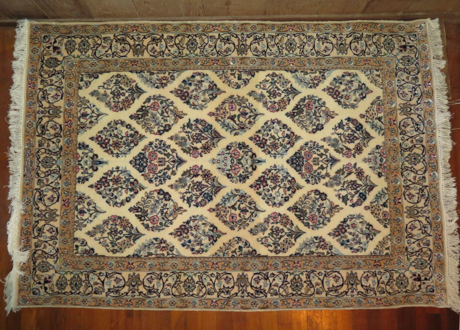 Persian Rug, Hand Woven Floral Motif White/Navy/Pink/Blue 66"x 45"