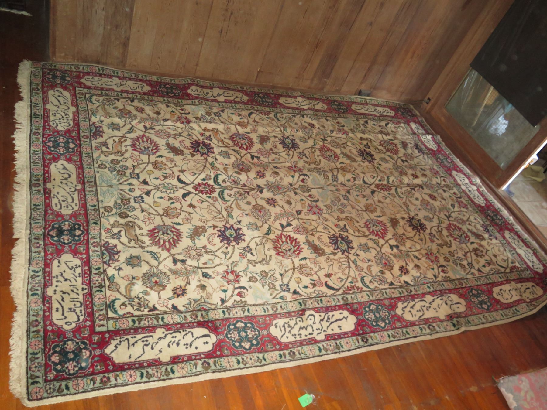 Persian Rug, "Tabriz" Animal & Floral Motif Cream/Red/Blue/Tan 144" x 98"