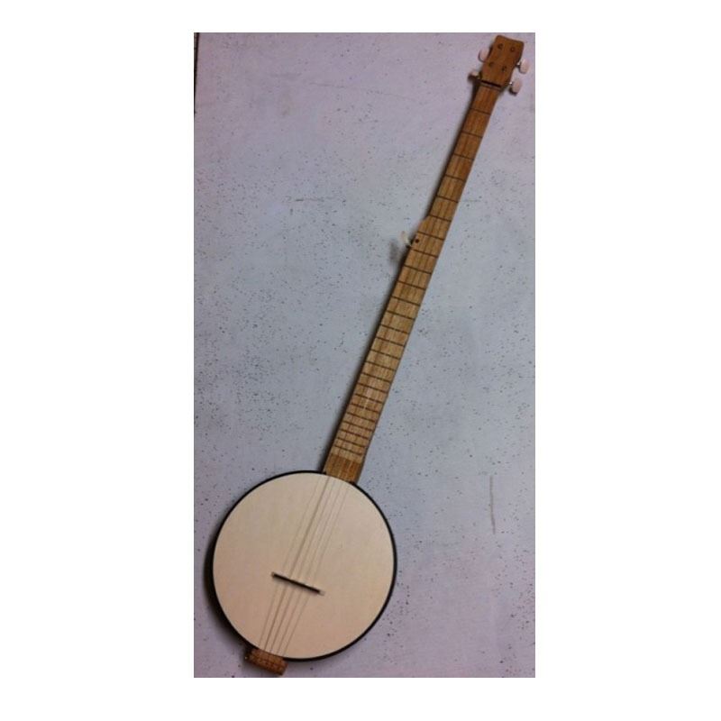 Pete Seeger has the longest neck and scale (open tuned to E below G rather than the traditional G). It can be capoed at the 3rd fret to be in the key of G and at the 5th fret for the key of A.....usually the most common keys of the early American traditional musical instrument. The neck is solid maple finished with 100% Tung oil. The soundboard is of aviation plywood. The hoop is a light and very durable cardboard composite material. Hand made and finished the item weighs in at about 3 lbs. The wooden top is quieter than the models with the skin tops having "a true tone all it's own" also saving many relationships! Donated By: Backyard Music