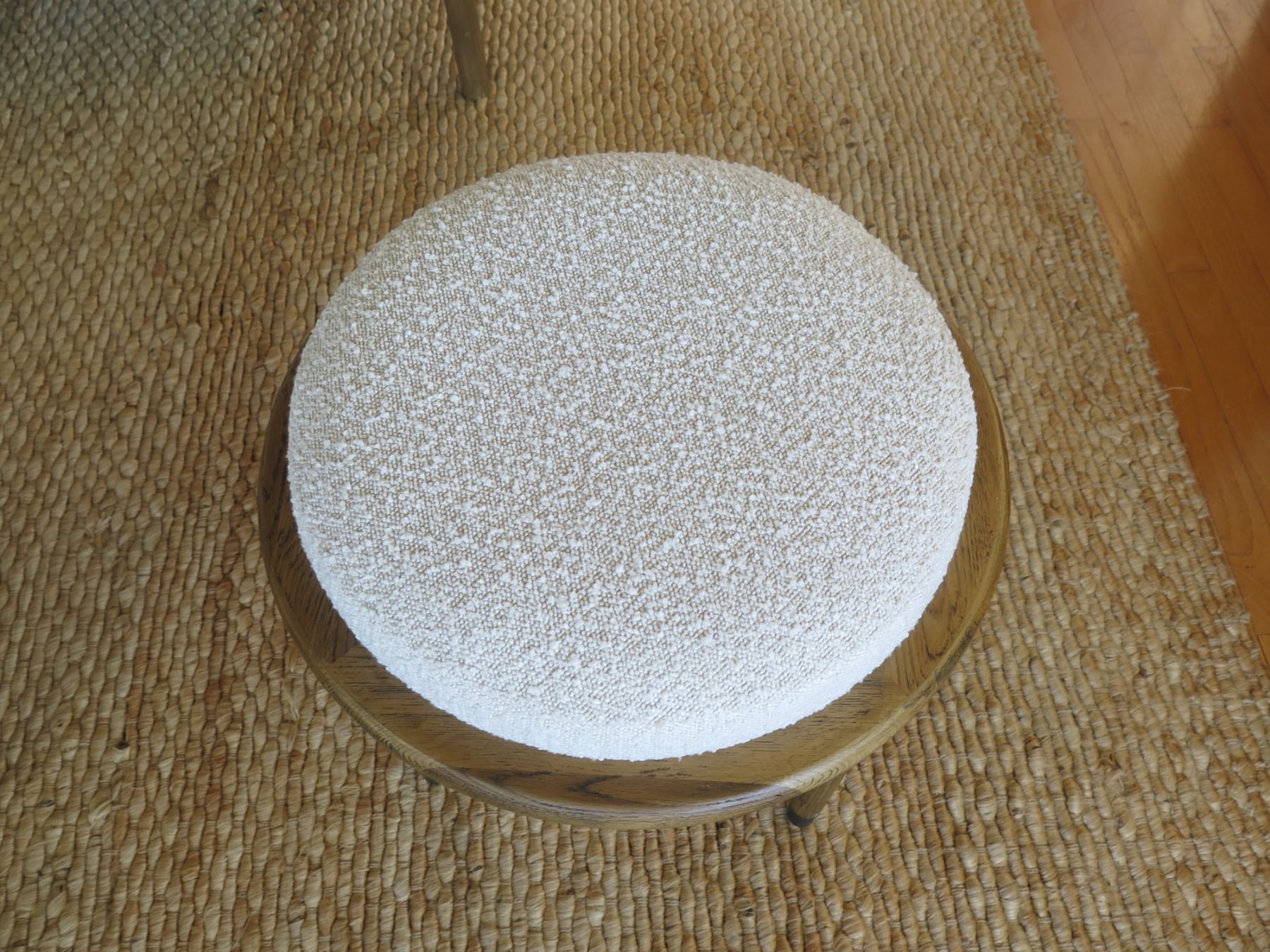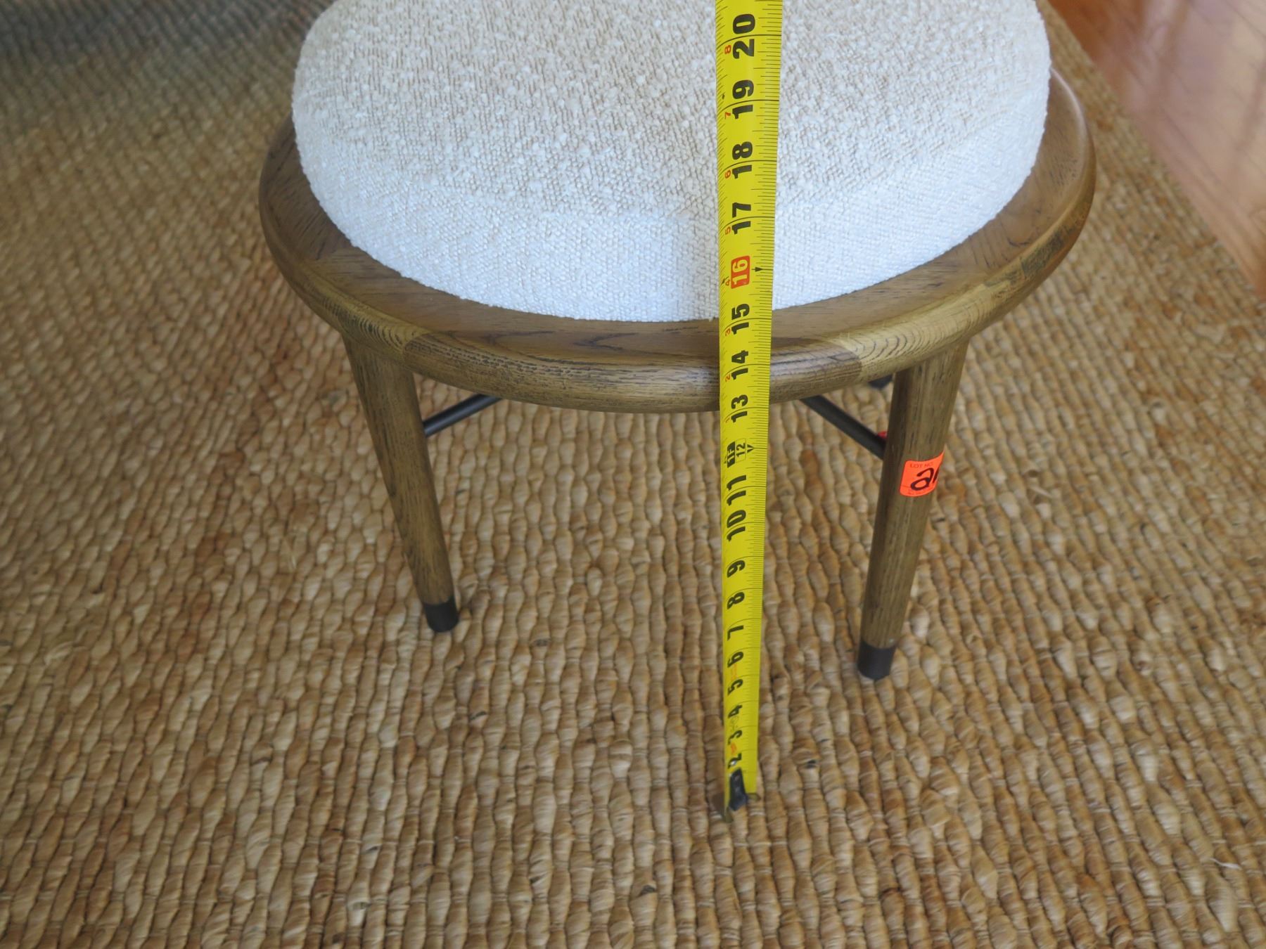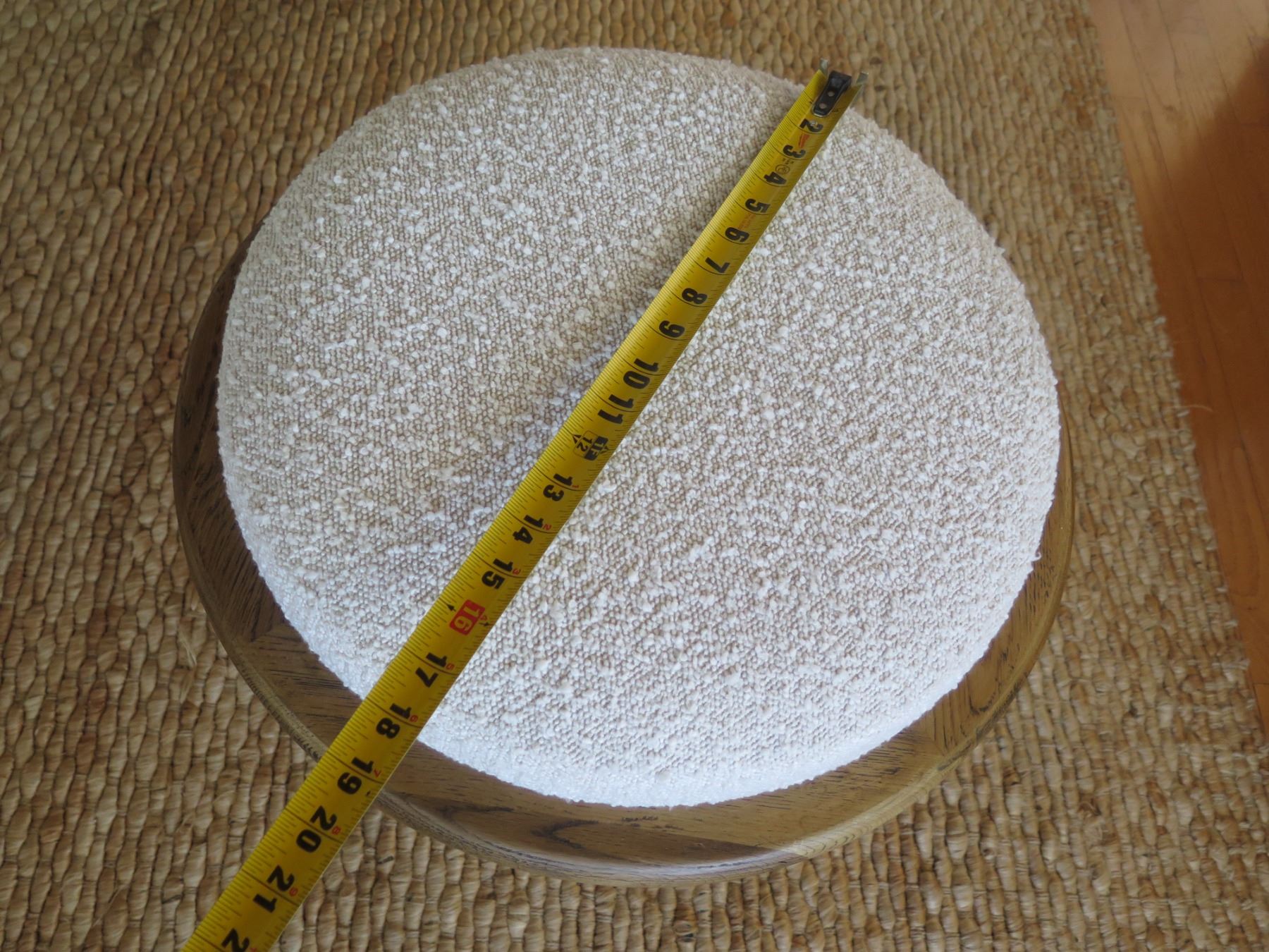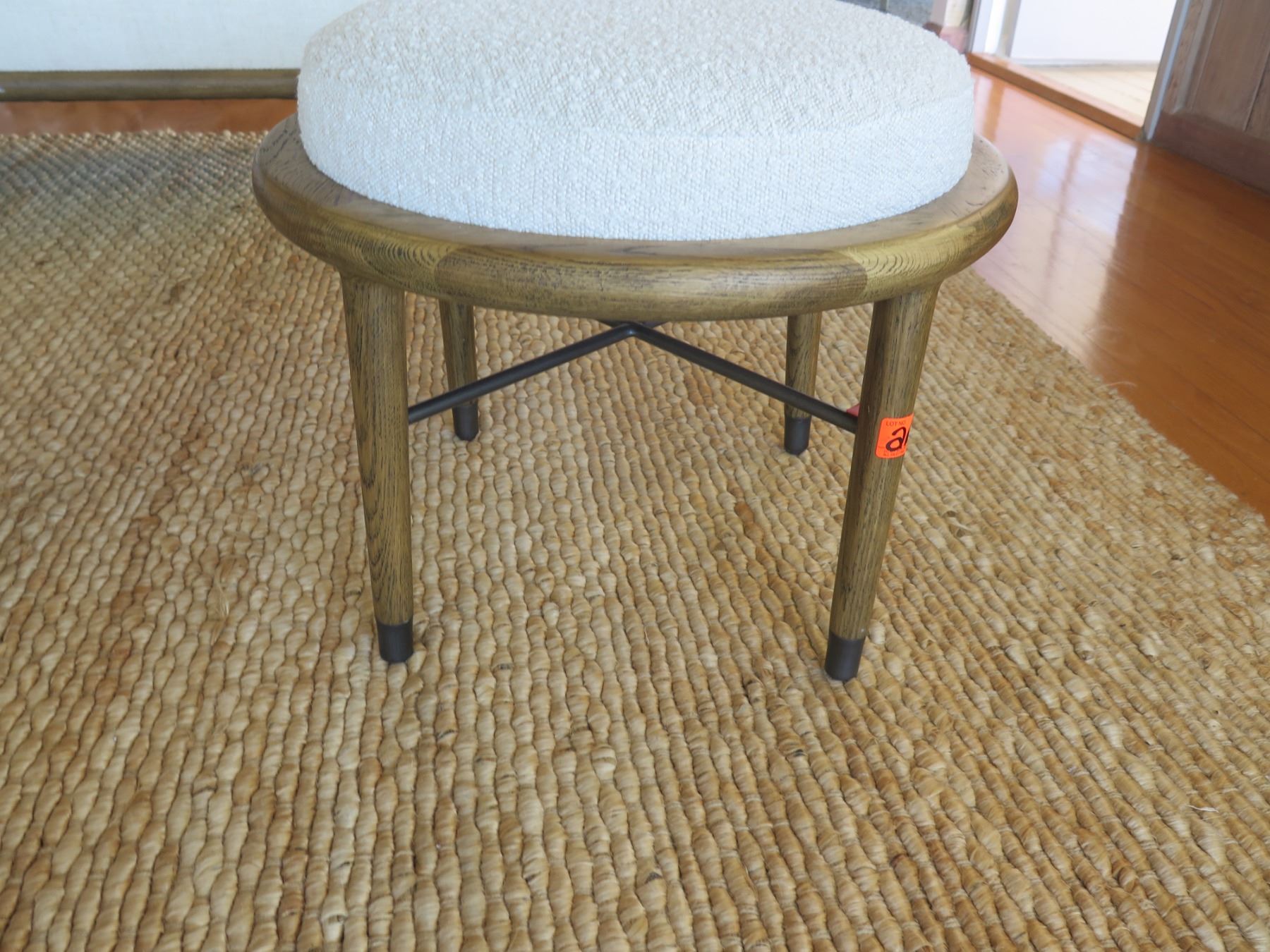 Petra Wooden Ottoman w/ White Upholstered Top 19" Dia, 17"H