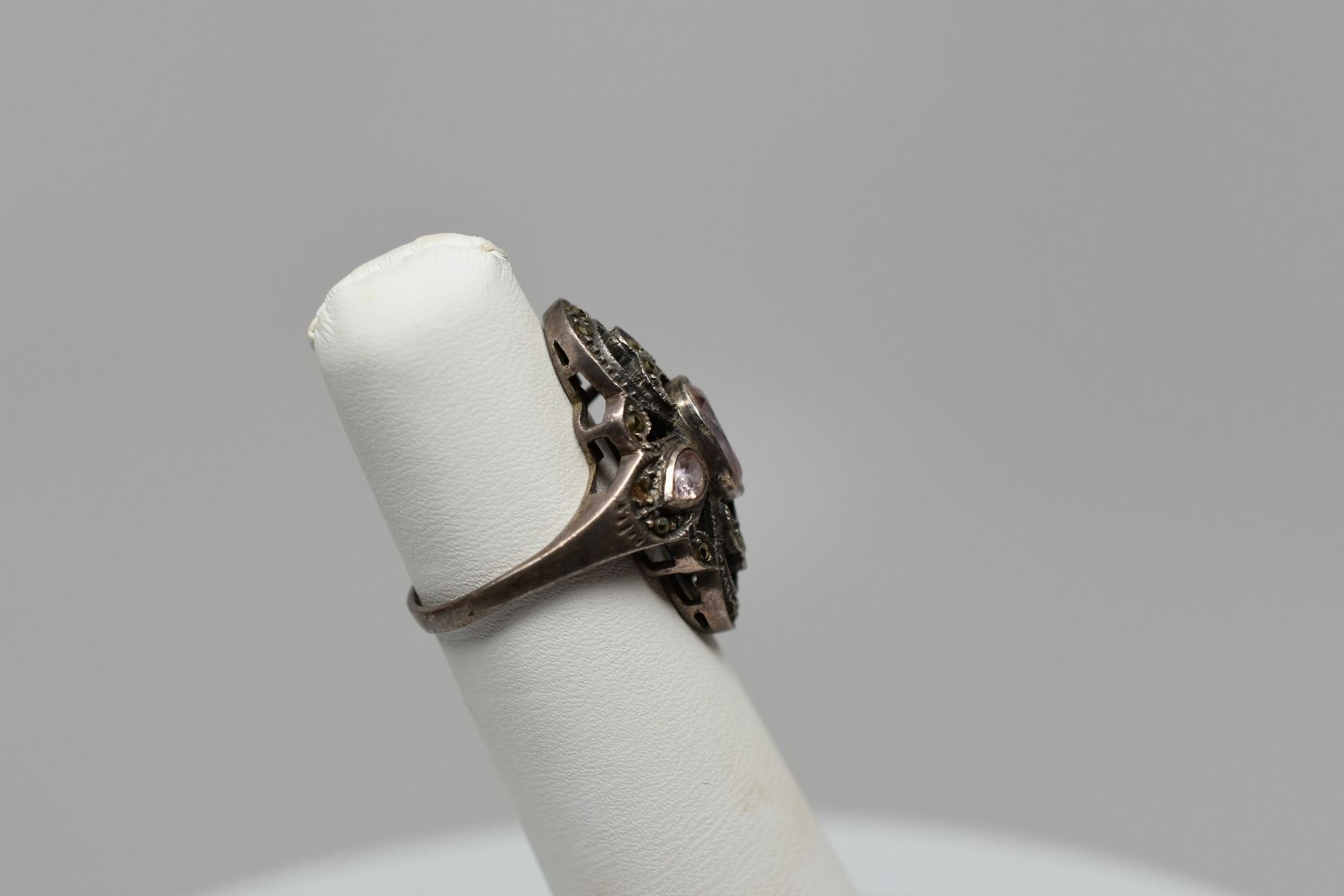 Pink Cubic Ziconia Ring - 3 Pink CZs Approx 2.30 Total ct Wt, 16 Marcasites, 5.3 g