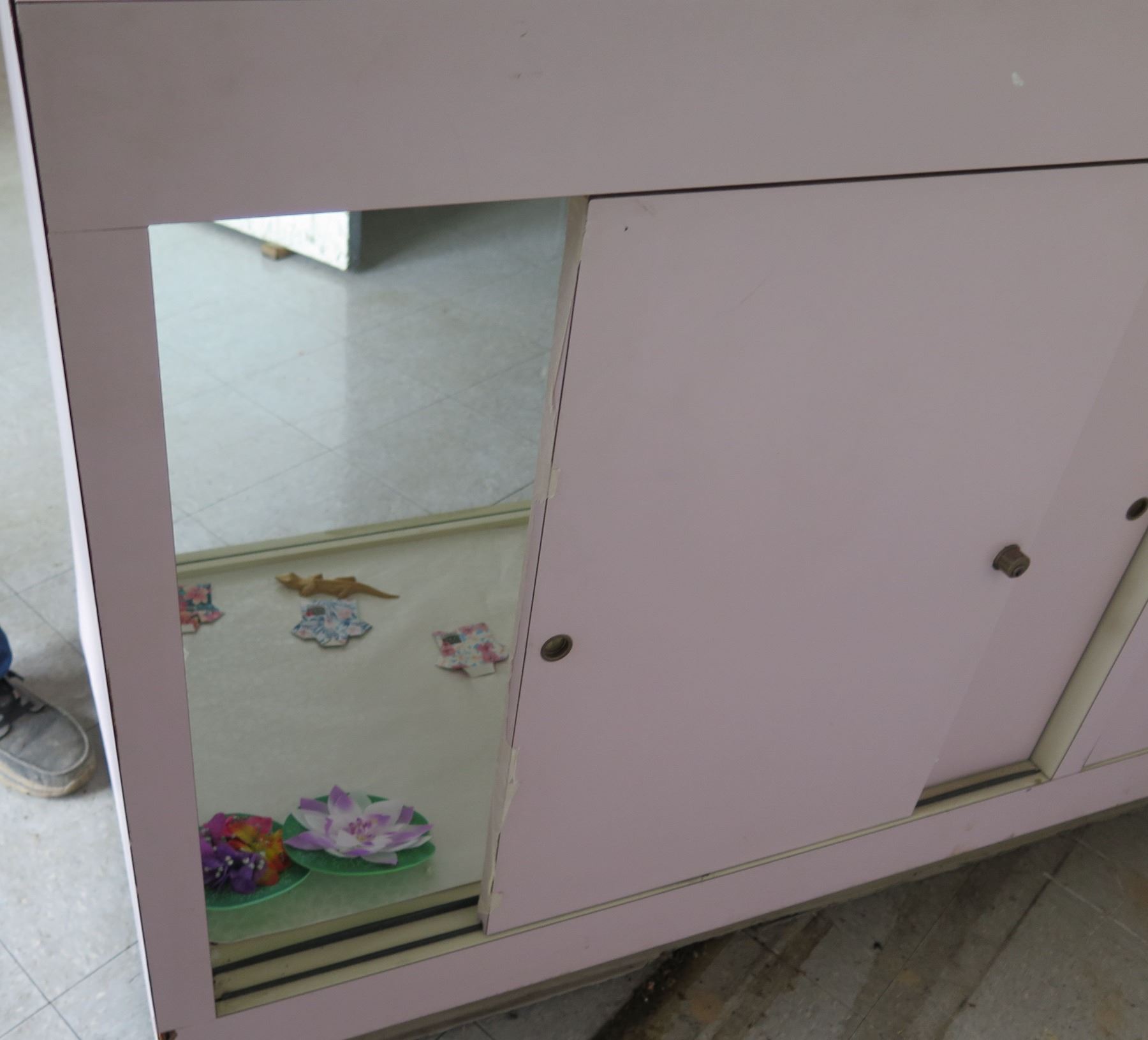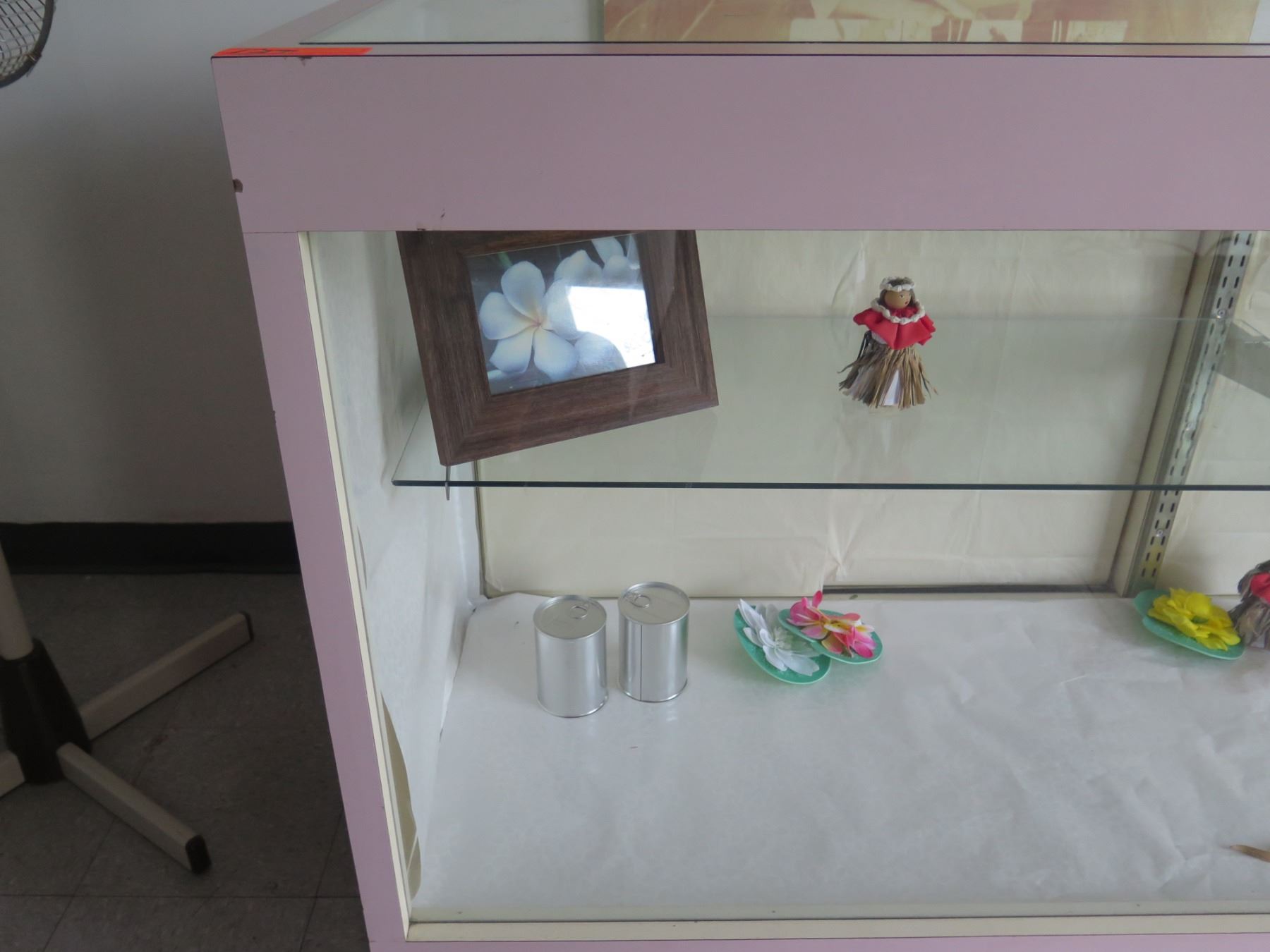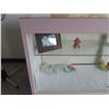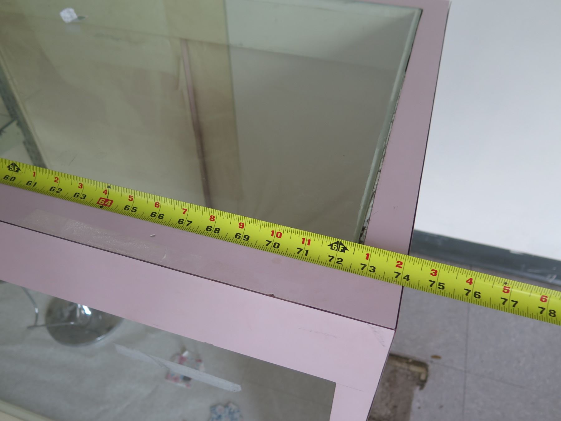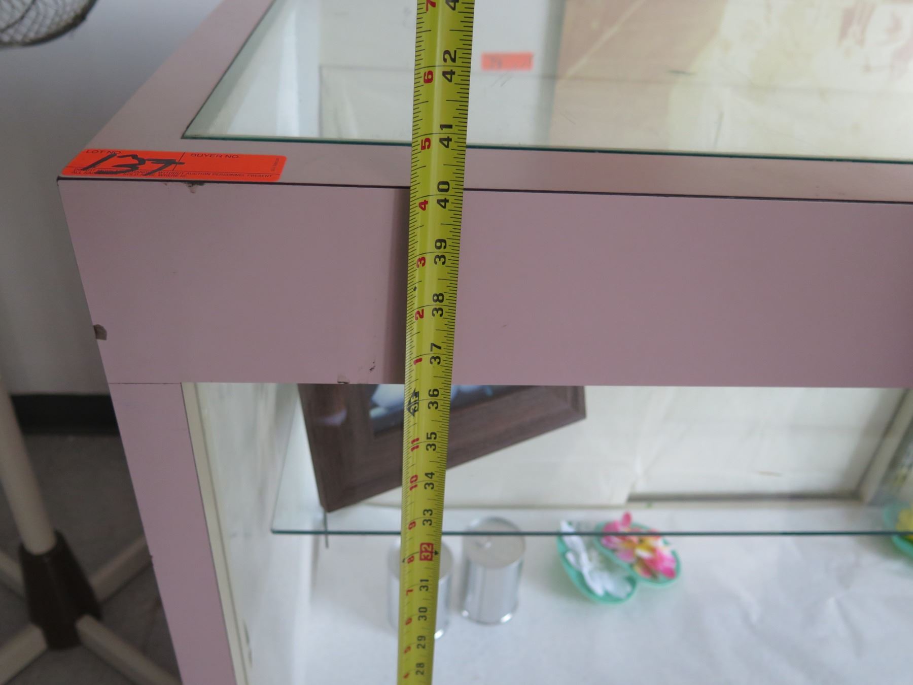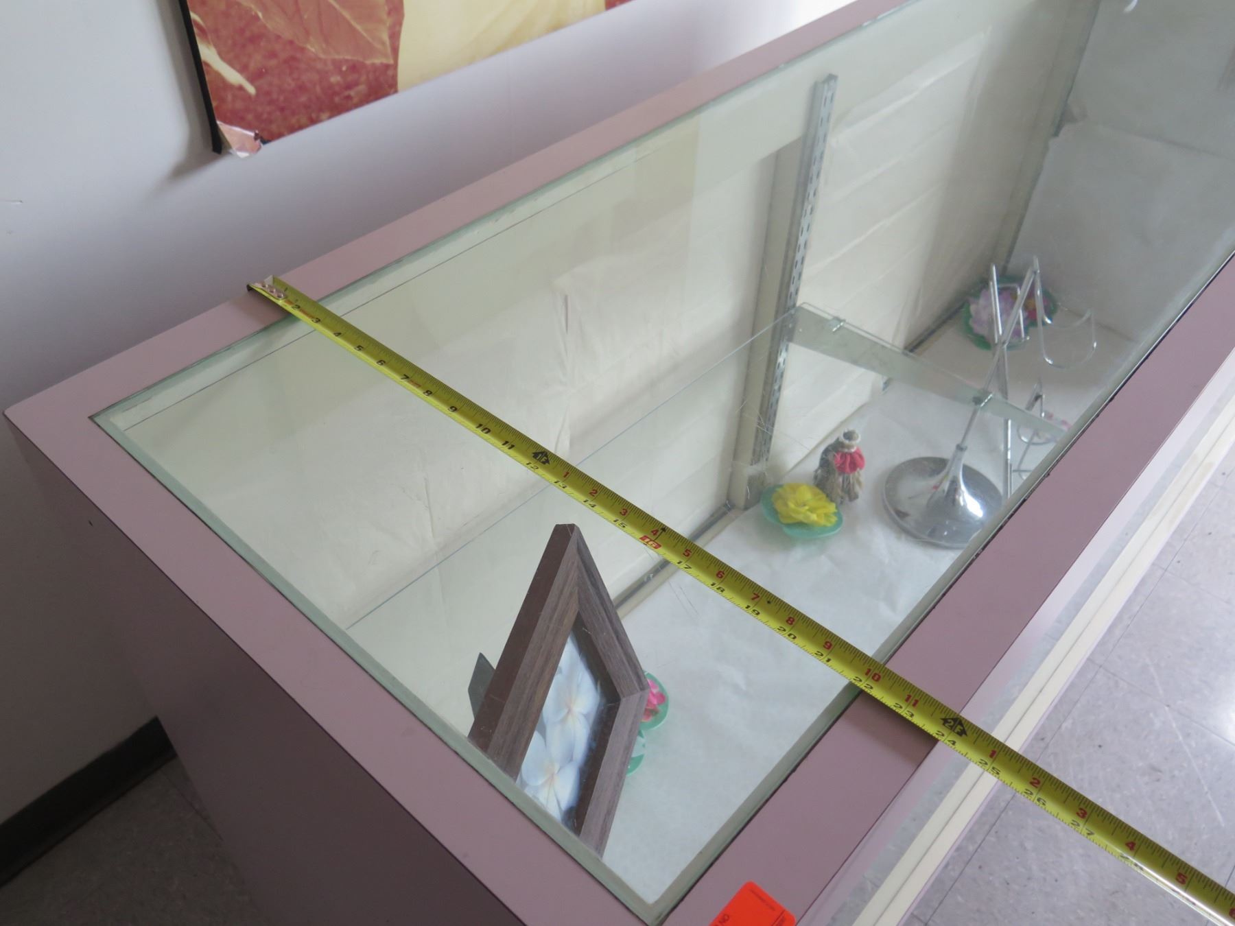 Pink Display Cabinet w/ Glass Shelves, Top & Front, Sliding Back Doors 74"x24"x40"H