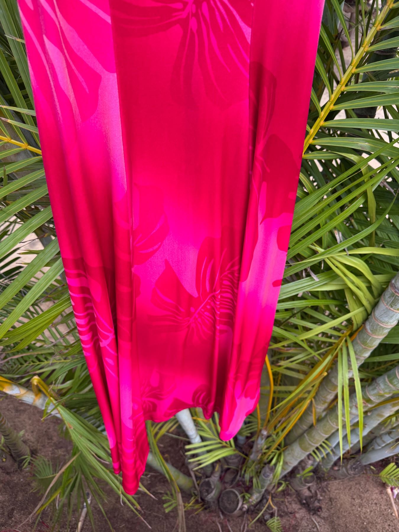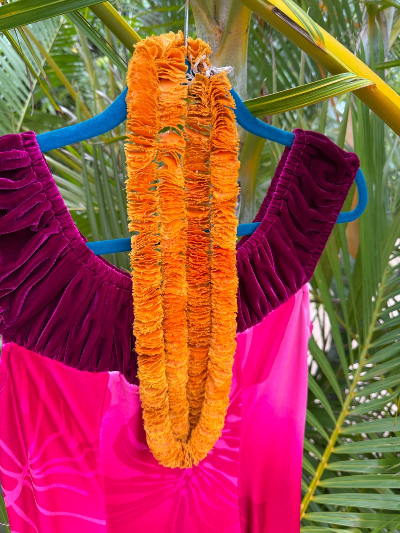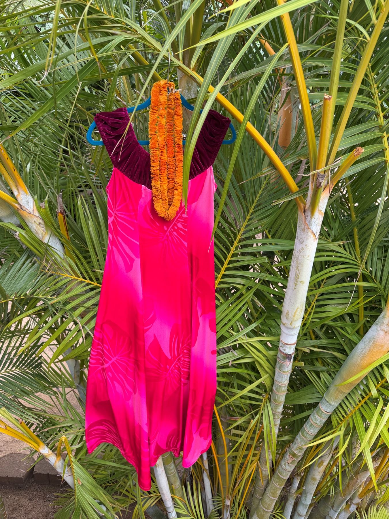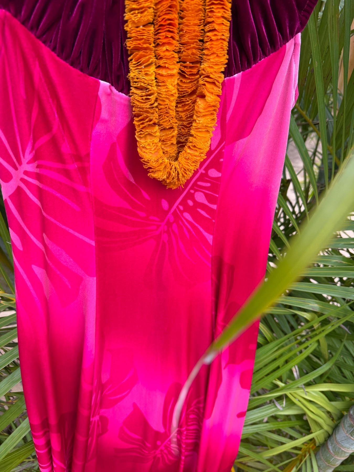 Pink Leaf Print Velvet Dress w/ Lei