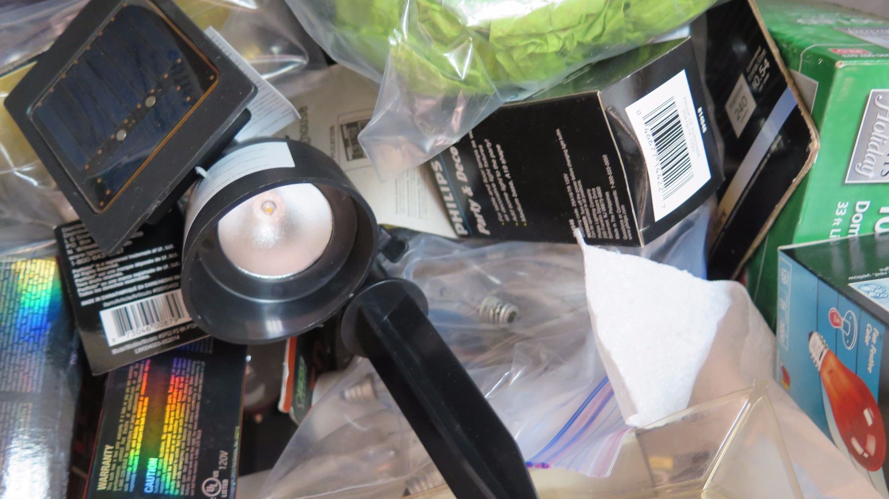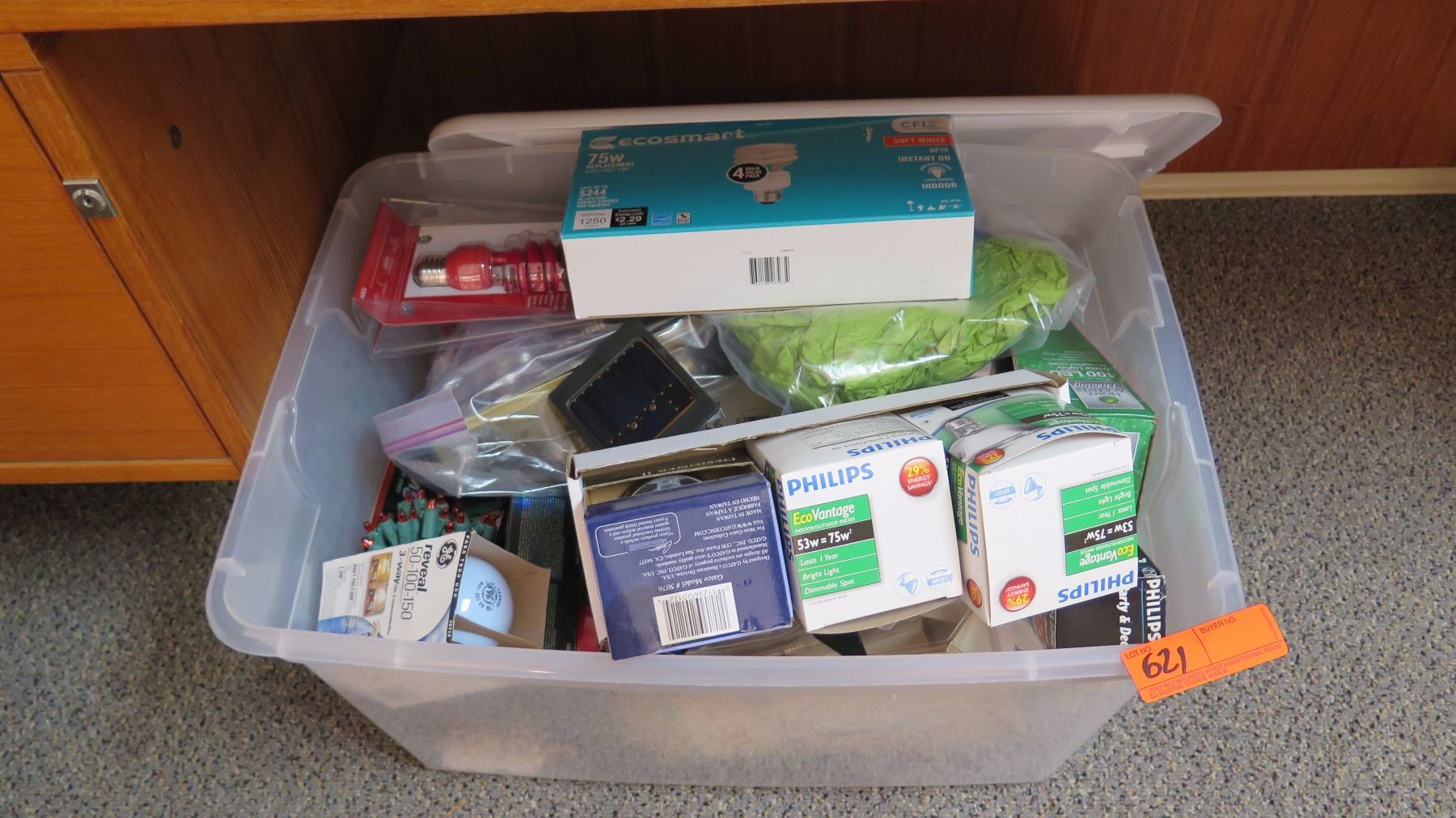 Plastic Bin of Misc. Household Light Bulbs and Lights