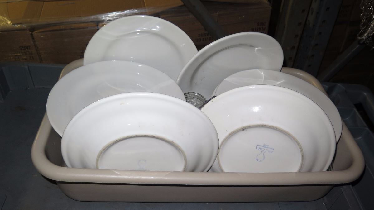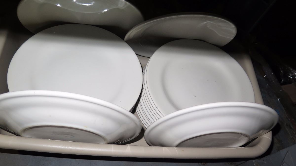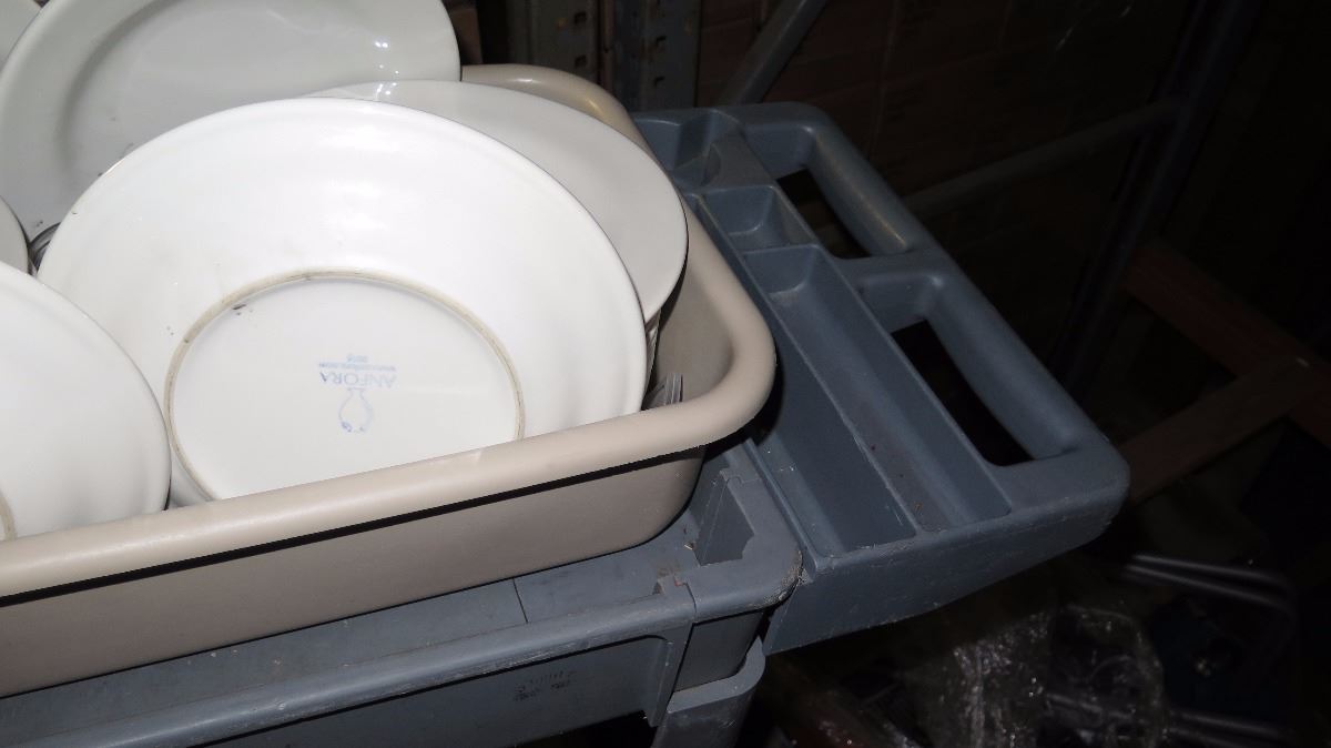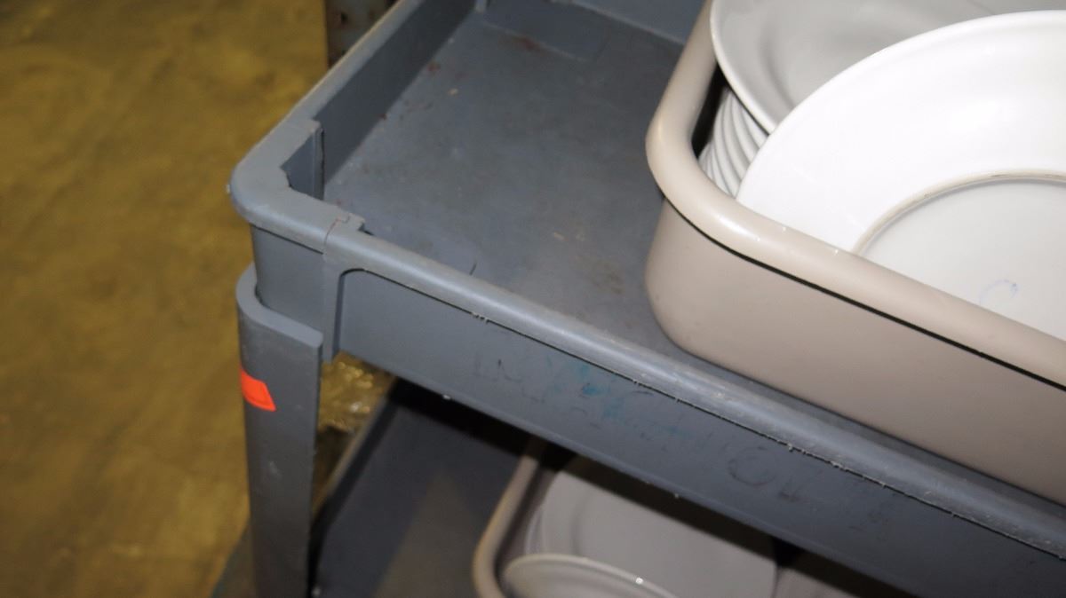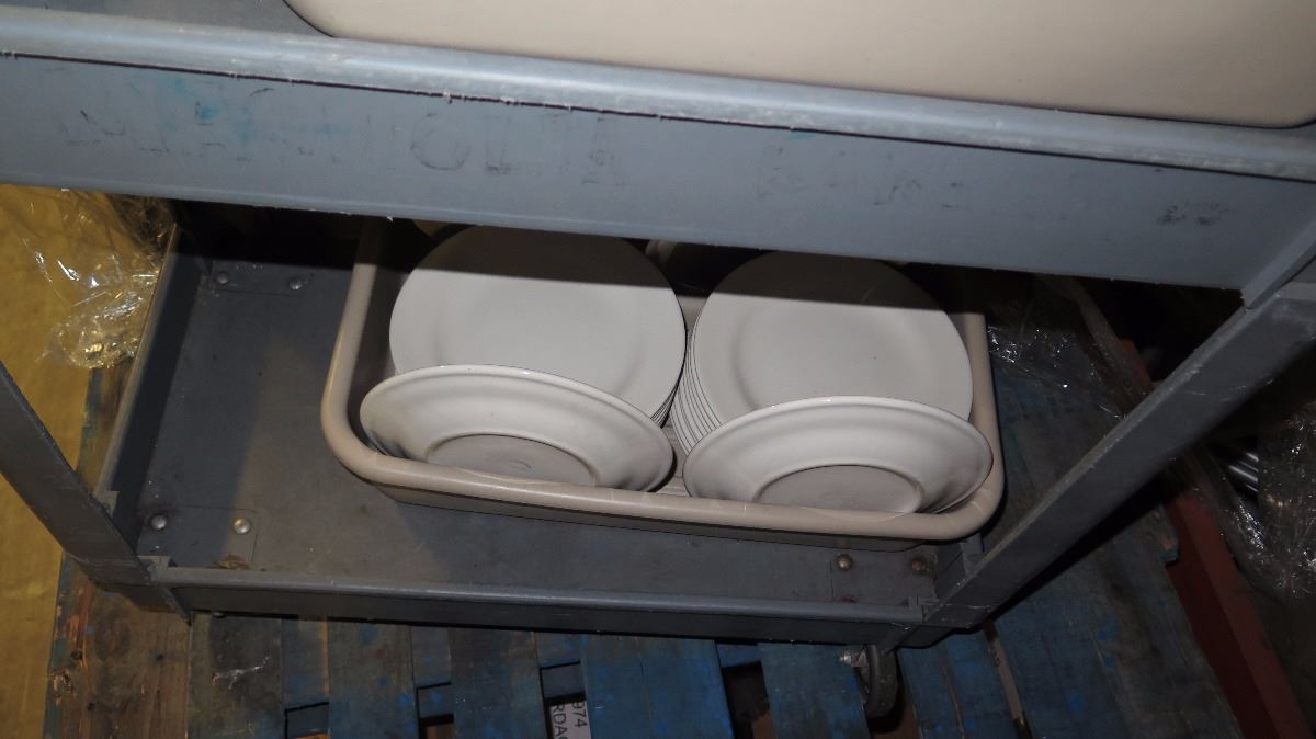 Plastic Rolling Dish Cart w/ Porcelain Dishes