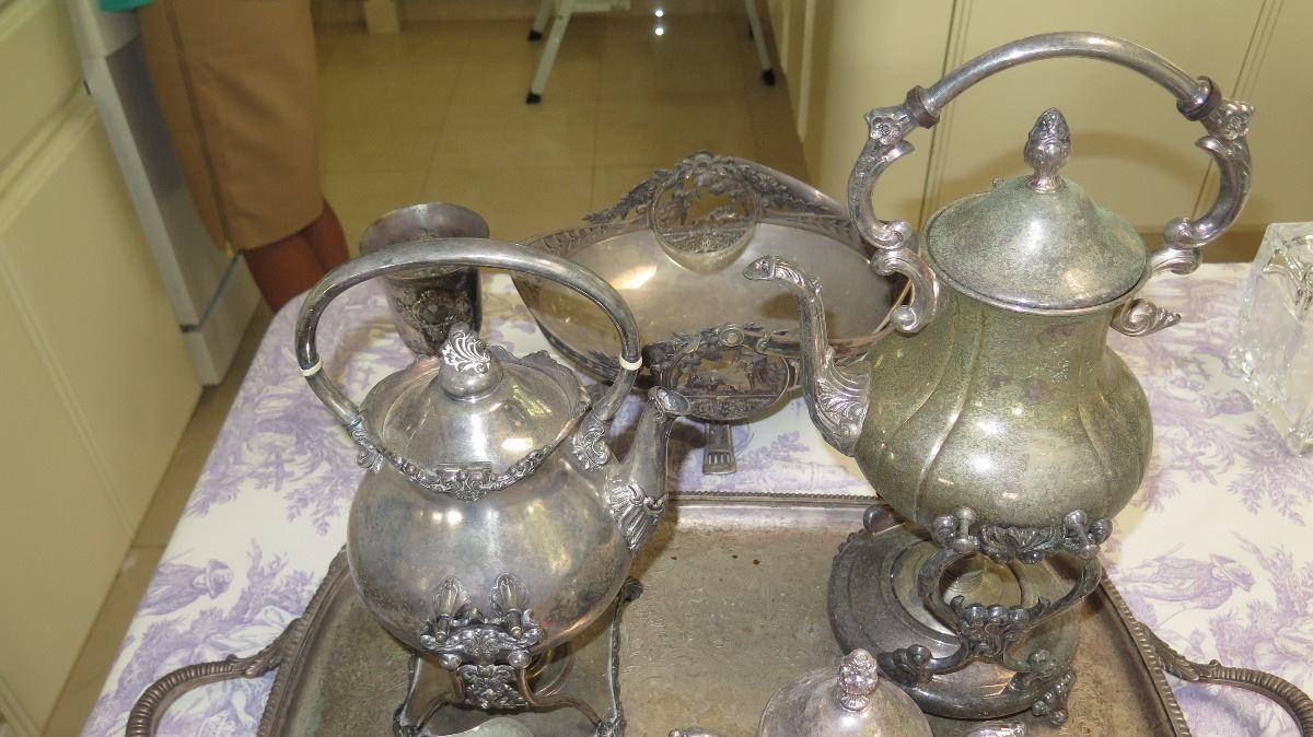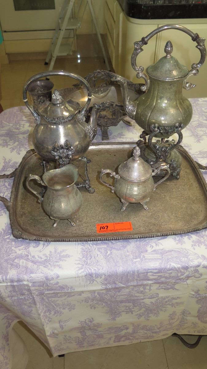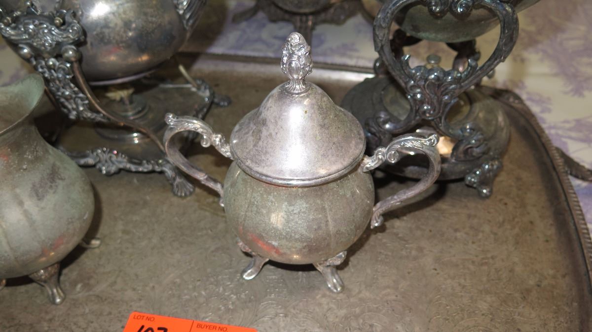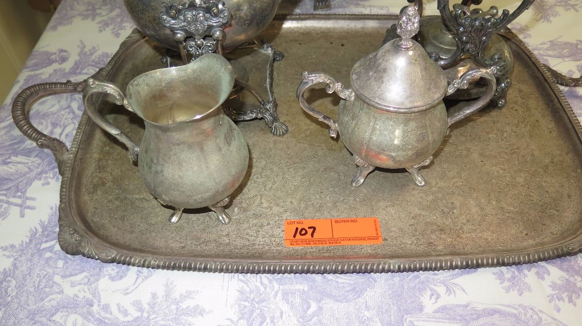 Plated Siver Tray and Coffee & Tea Server Set, Sugar Bowl, Creamer
