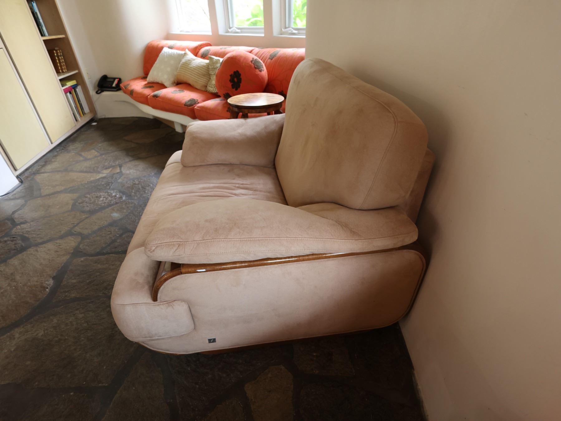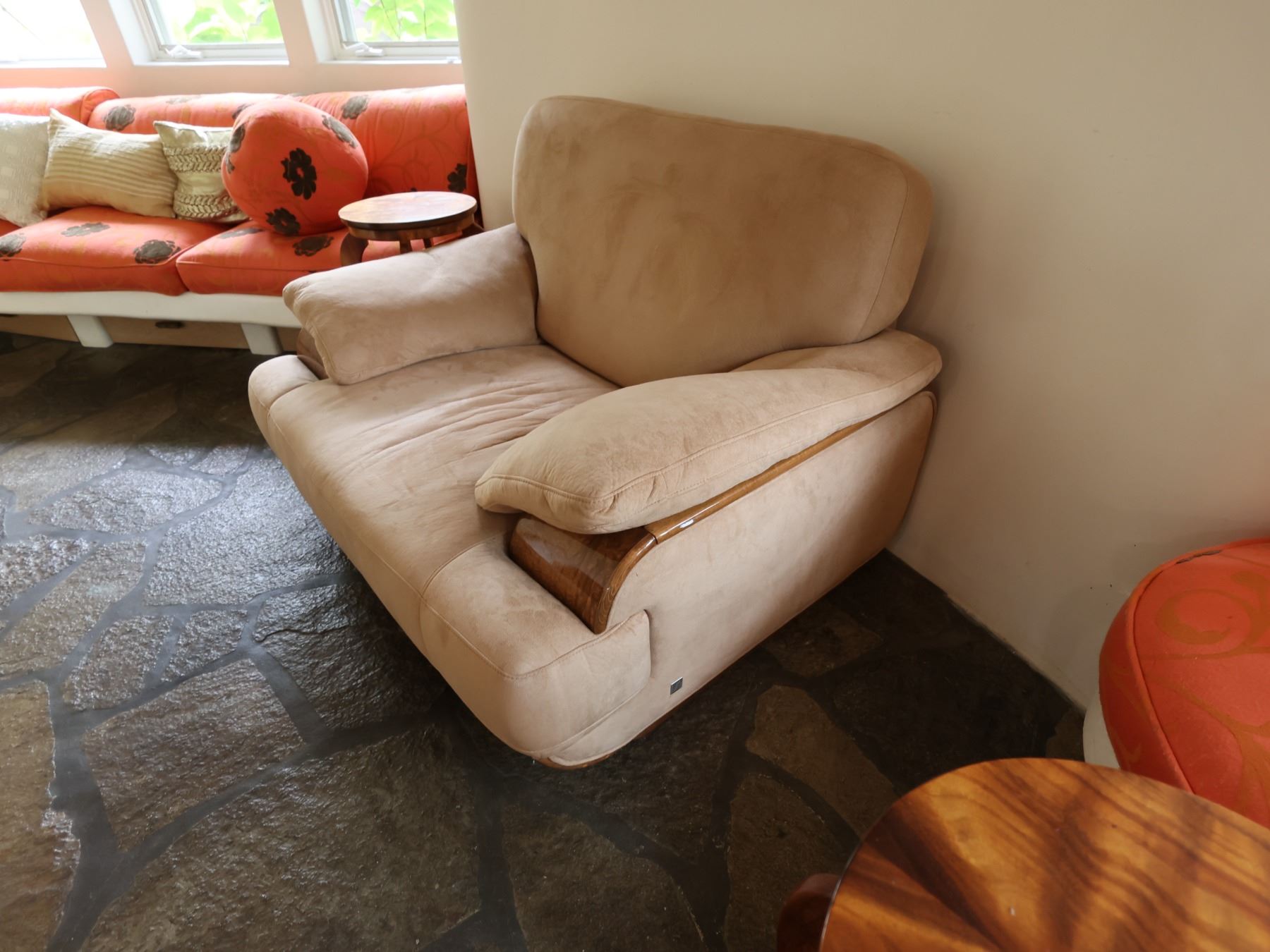 Plush Lounge Chair w/ Wooden Arm Accents 44" x 35" x 24"H