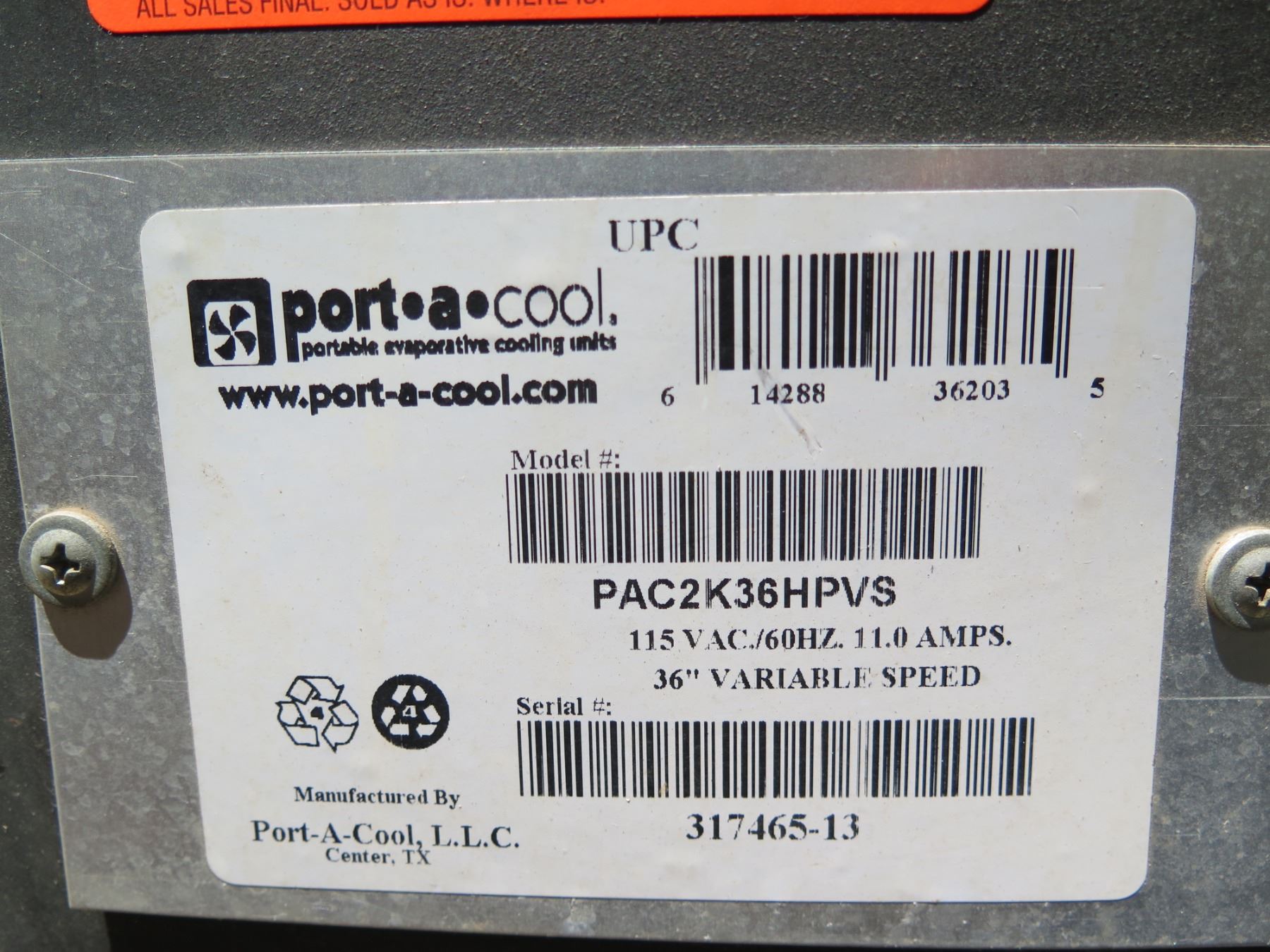 Port-A-Cool Portable Evaporative Cooling Unit 50 PSI Max Water Supply PAC2K36HPVS