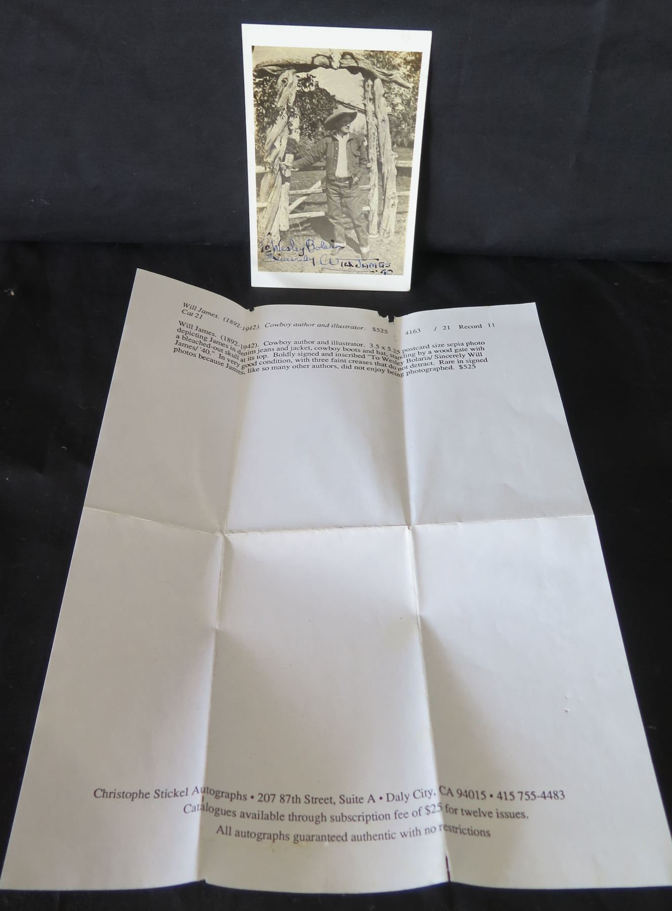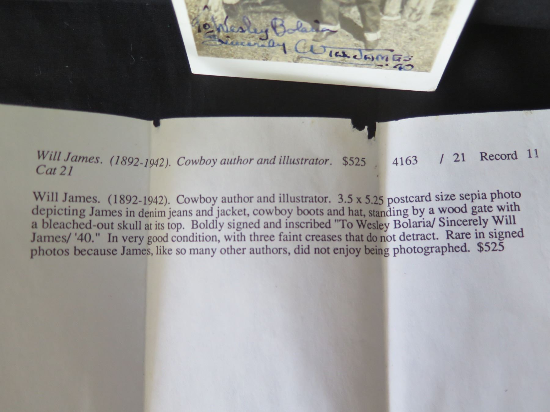 Postcard Size Sepia Photo of Will James (1892-1942) w/ Letter of Authenticity