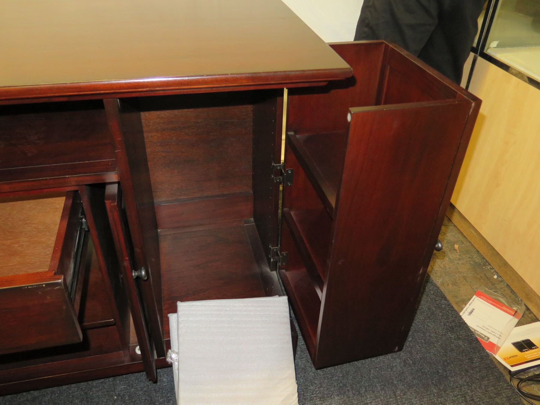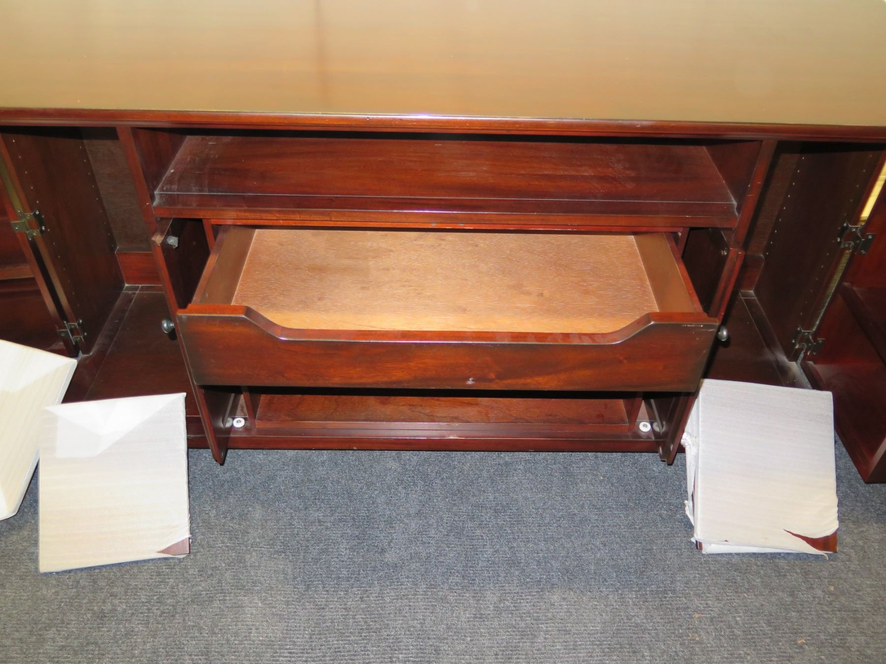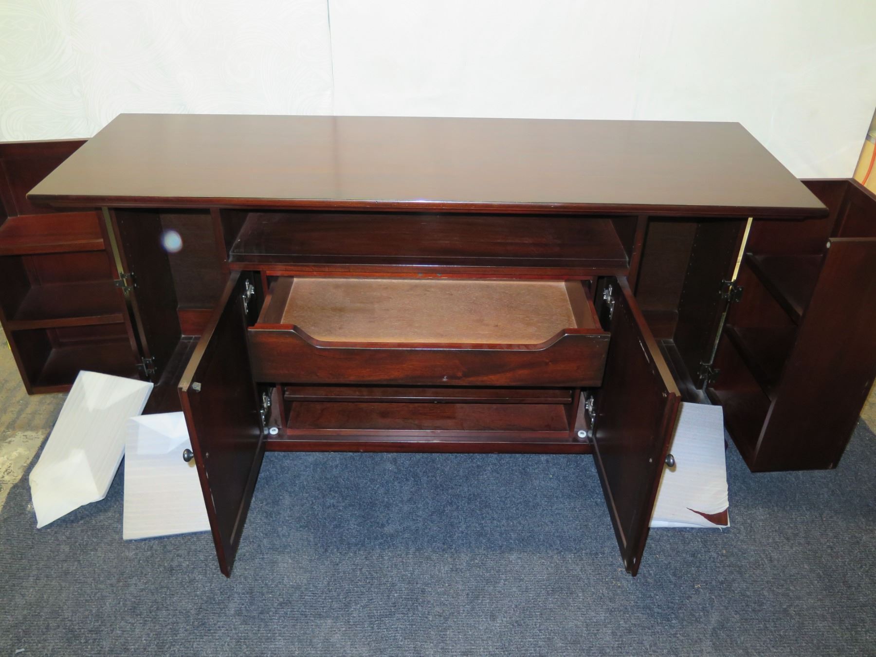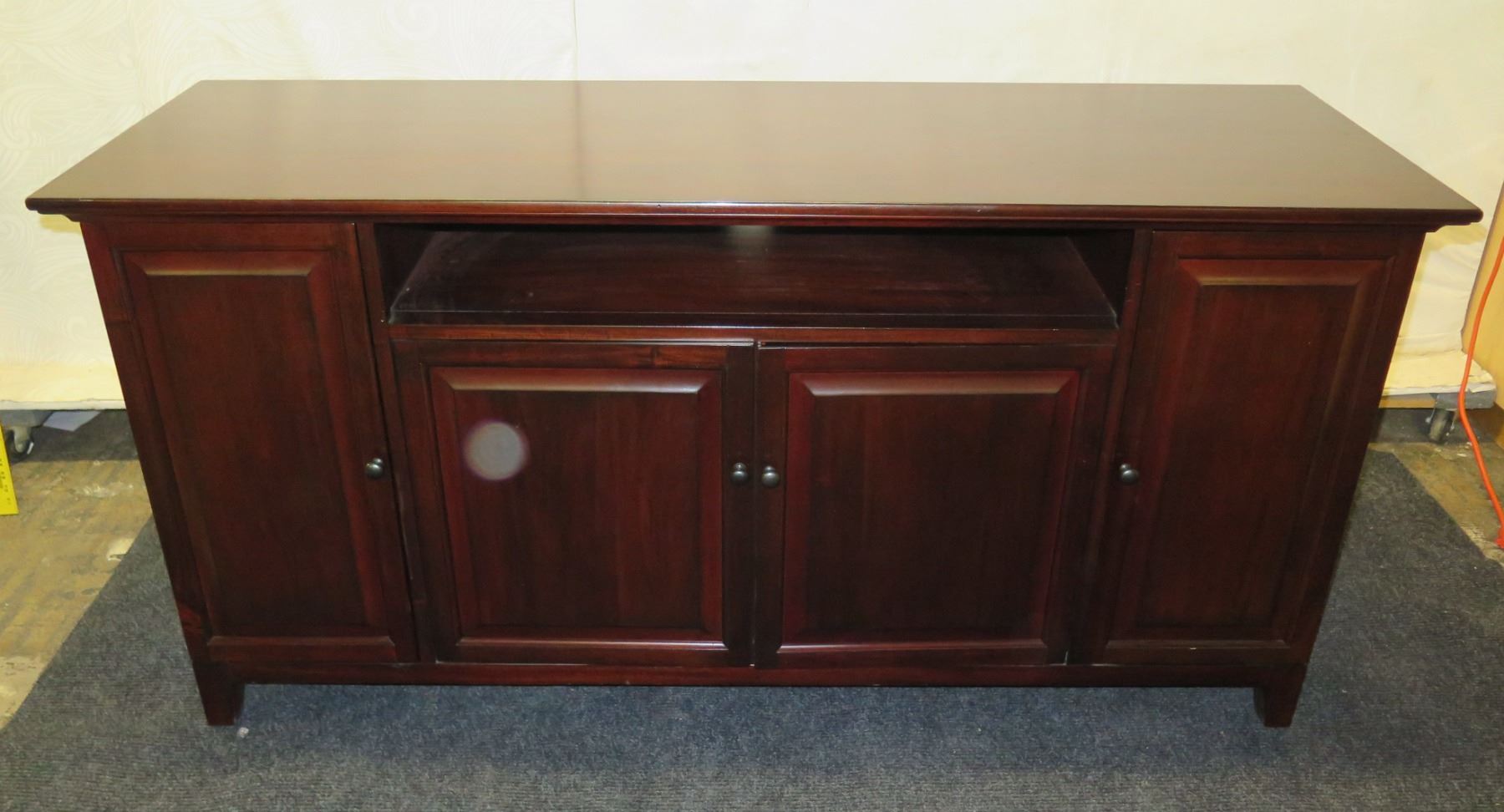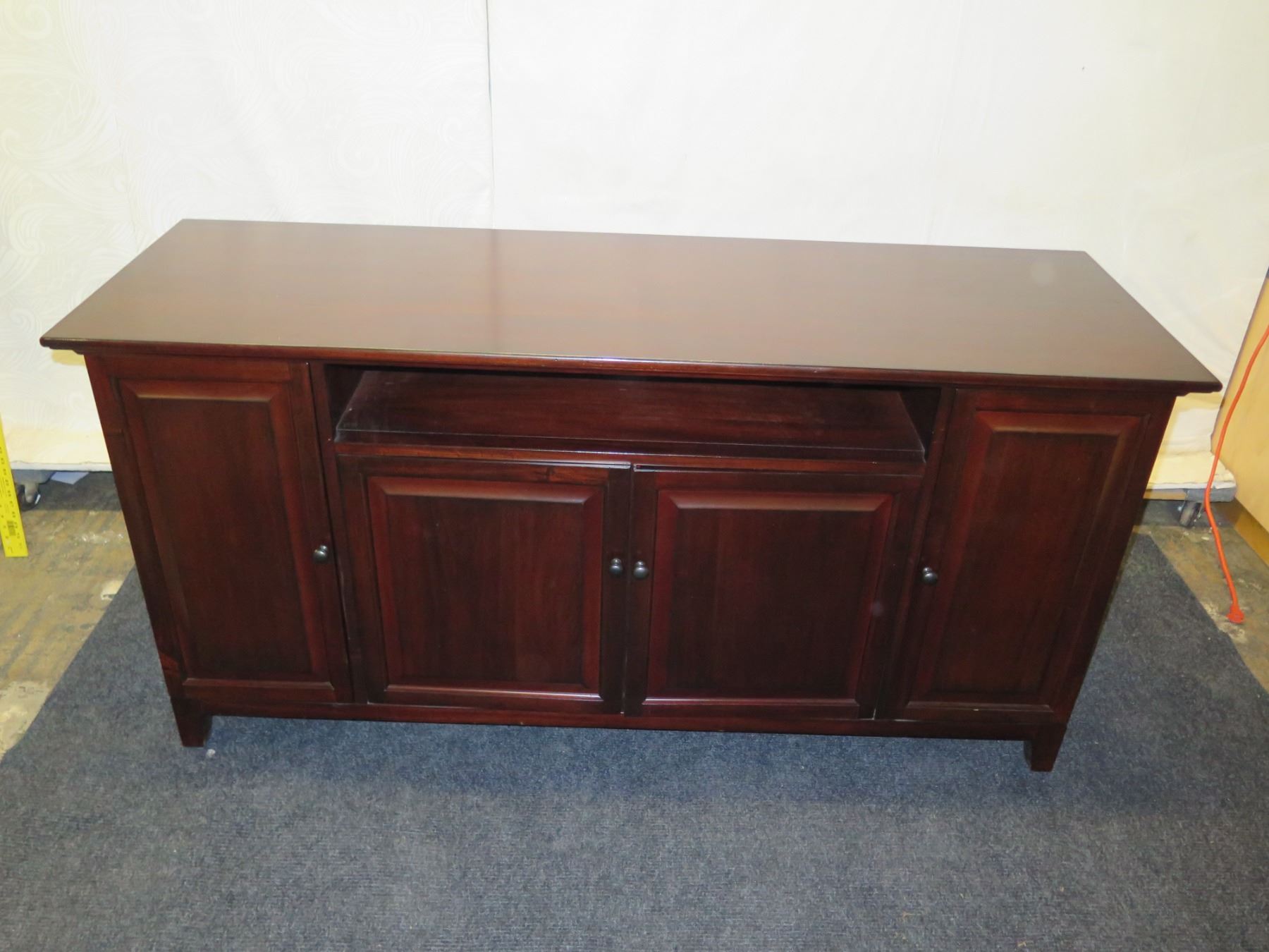 Pottery Barn Wooden Sideboard w/ Shelving, Cabinet, Drawers & Swing-Out Side Cabinet Doors. 66"x22"32"H