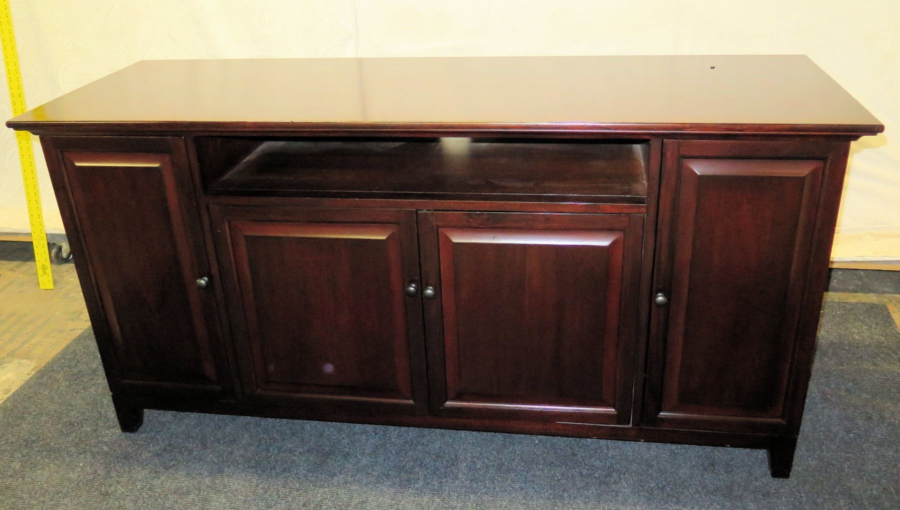 Pottery Barn Wooden Sideboard w/ Shelving, Cabinet, Drawers & Swing-Out Side Cabinet Doors. 66"x22"32"H