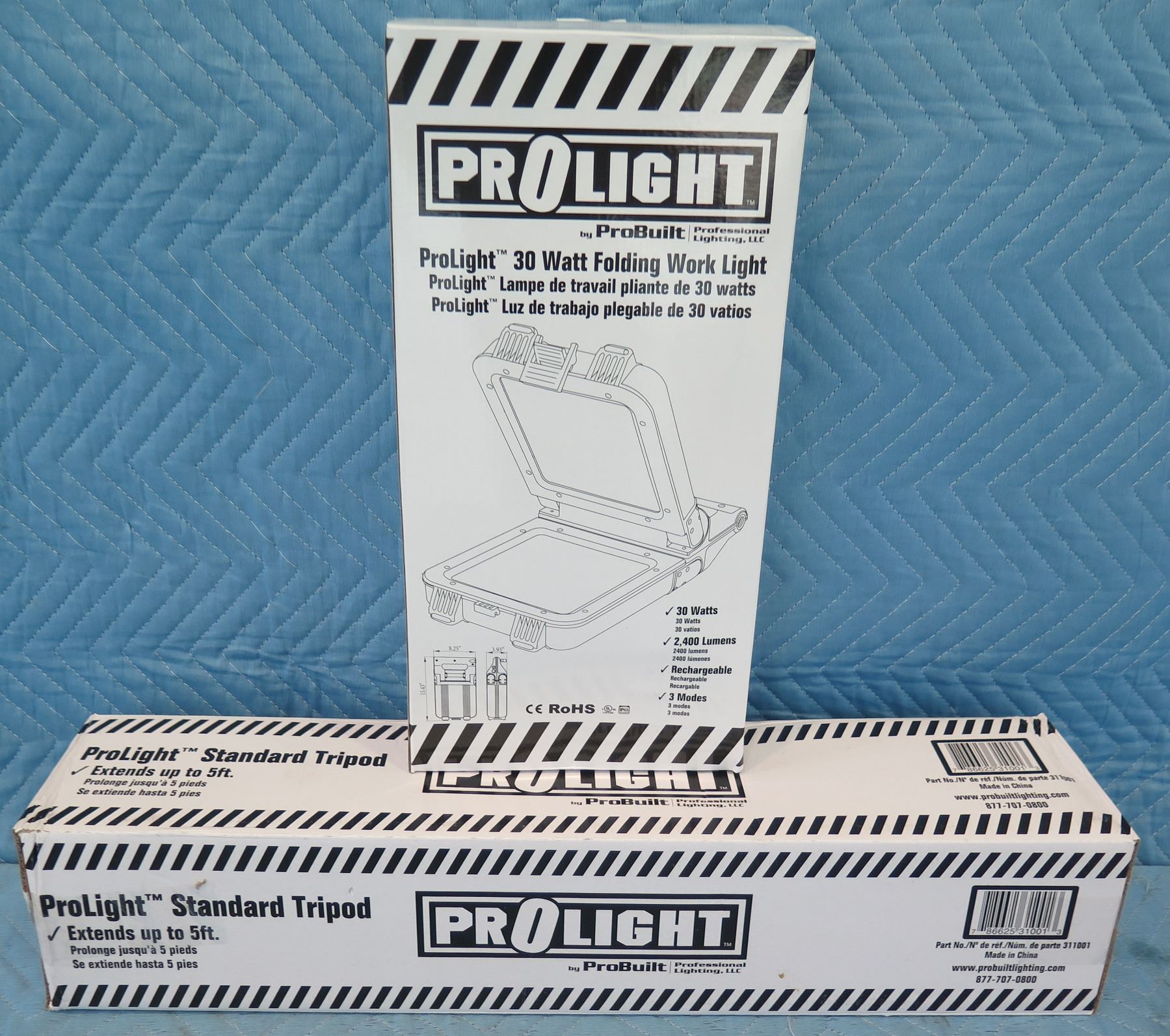 ProLight 514125 Folding Work Light Rechargeable & Standard Tripod New in Box