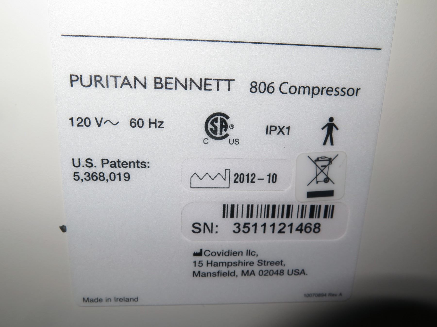 Puritan Bennett Rolling 840 Ventilator System w/ 806 Compressor.