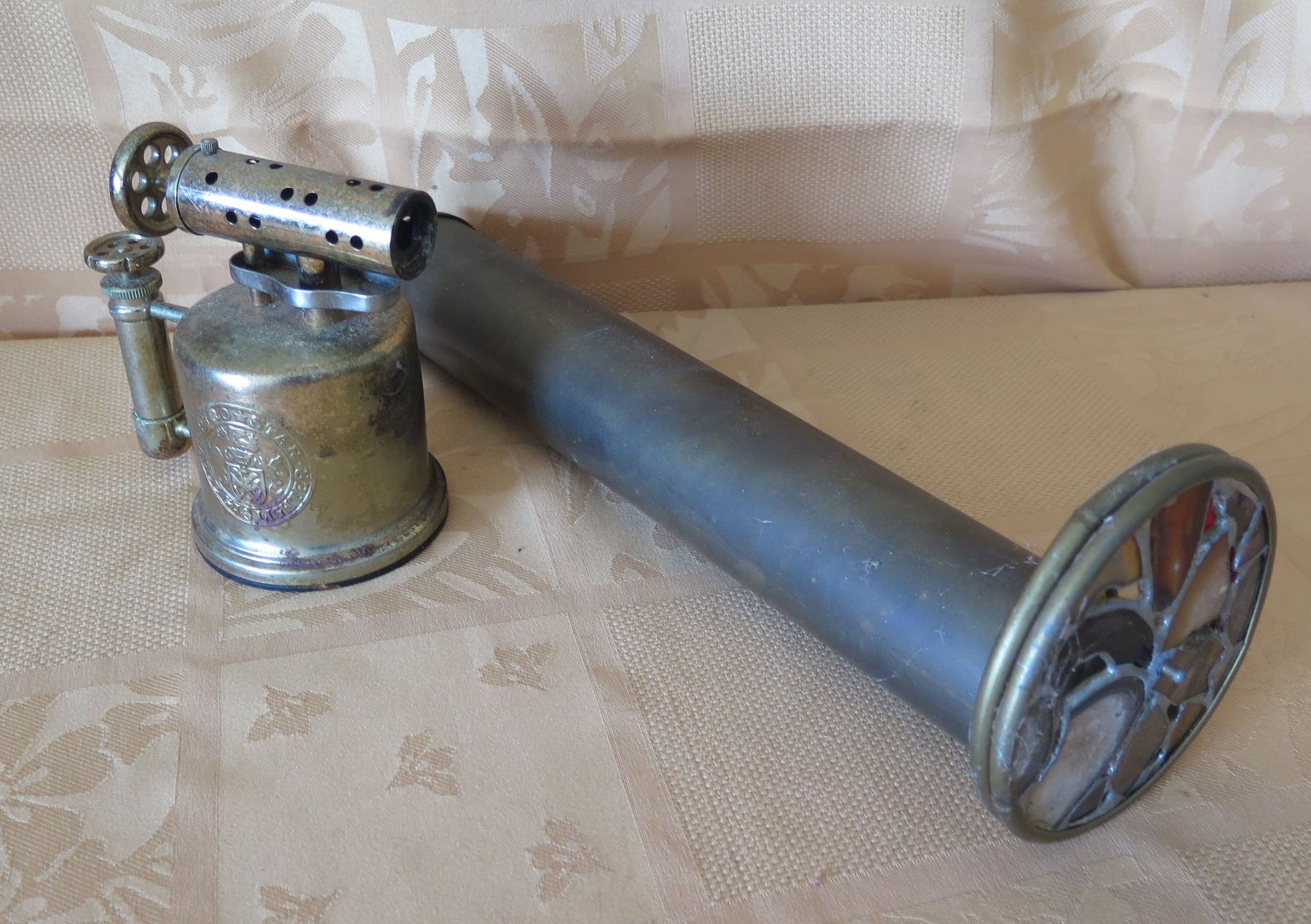 Pyro-Star Vintage Table Gas Lighter & Stained Glass Kaleidoscope 13"L