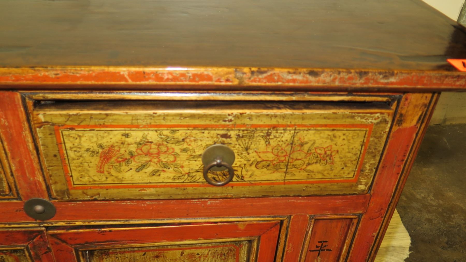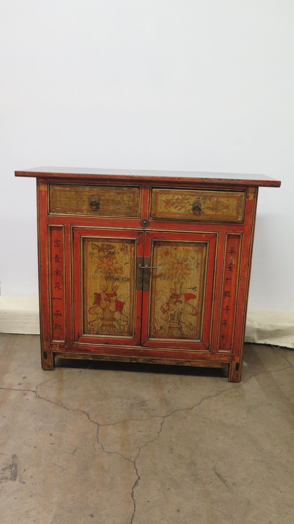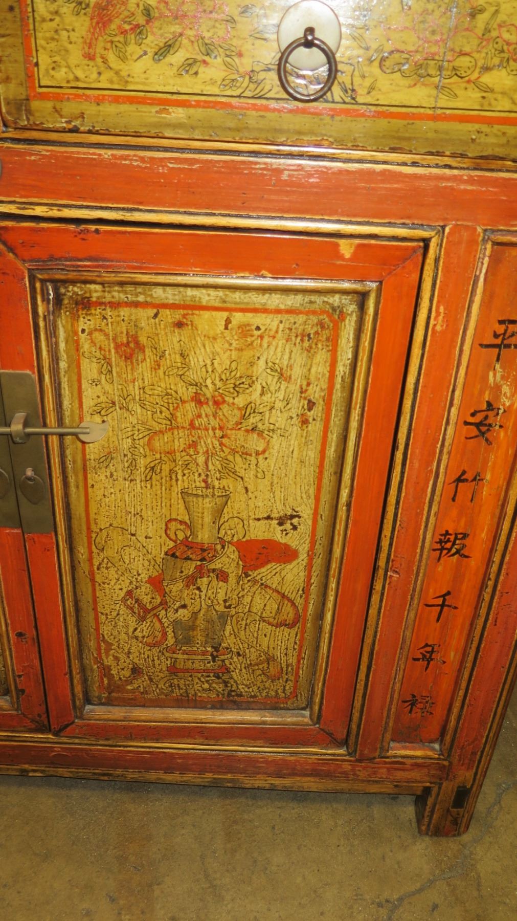 Qing Dynasty Elmwood Cabinet (Coffer) with Original Paintings, Circa 1850-1880), 45"W x 17"D x 38"H. Origin: Shanxi, China. Includes Certificate of Antiquity.