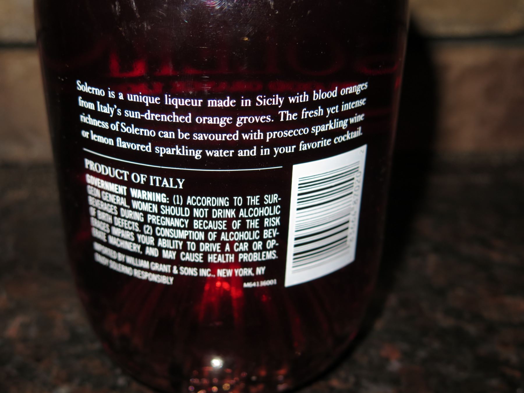 Qty 1 Bottle Solerno Blood Orange Liqueur
