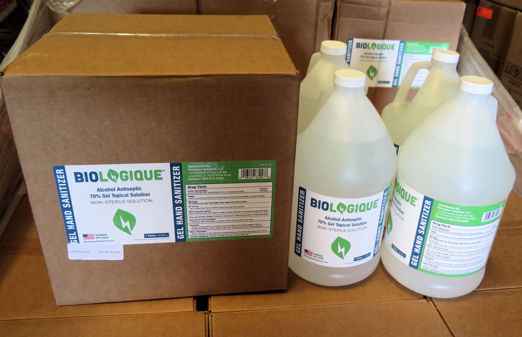 Qty 1 Box (4 qty 1-Gallon Bottles) Biologique Alcohol Sanitizer 70% Gel