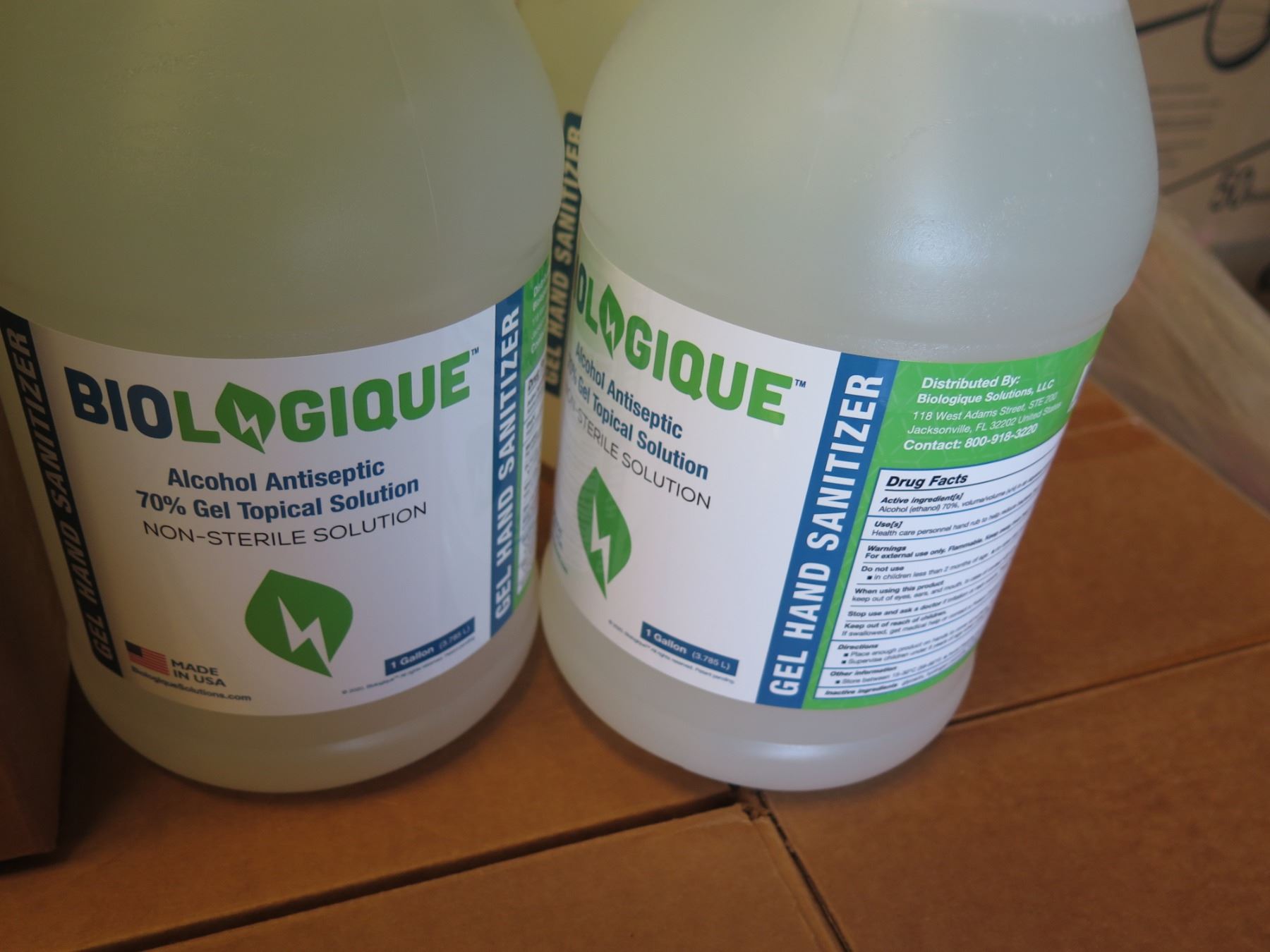 Qty 1 Box (4 qty 1-Gallon Bottles) Biologique Alcohol Sanitizer 70% Gel