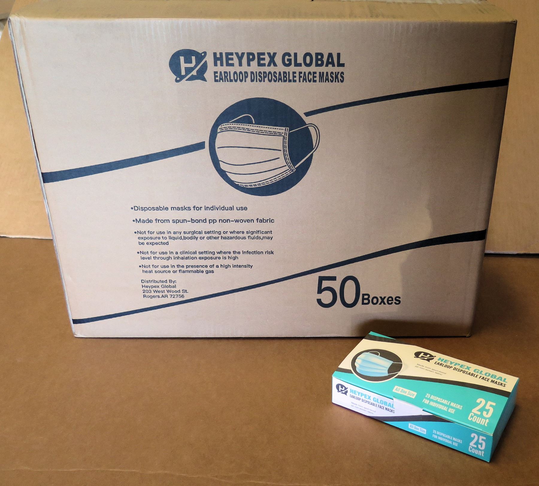 Qty 1 Box (50 Pkg) Heypex Global Disposable Face Masks (25 Masks/Pkg)