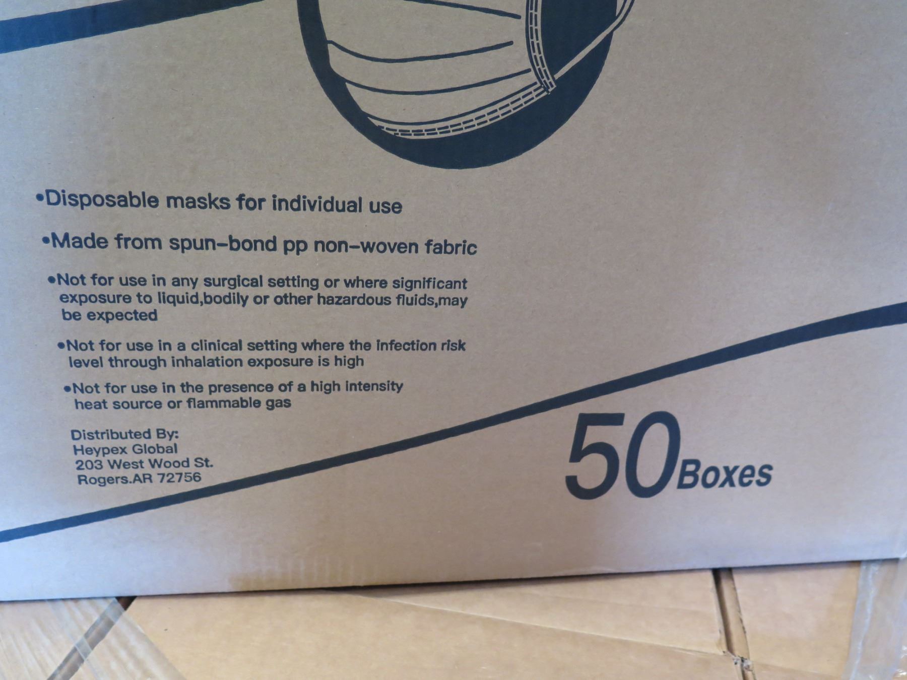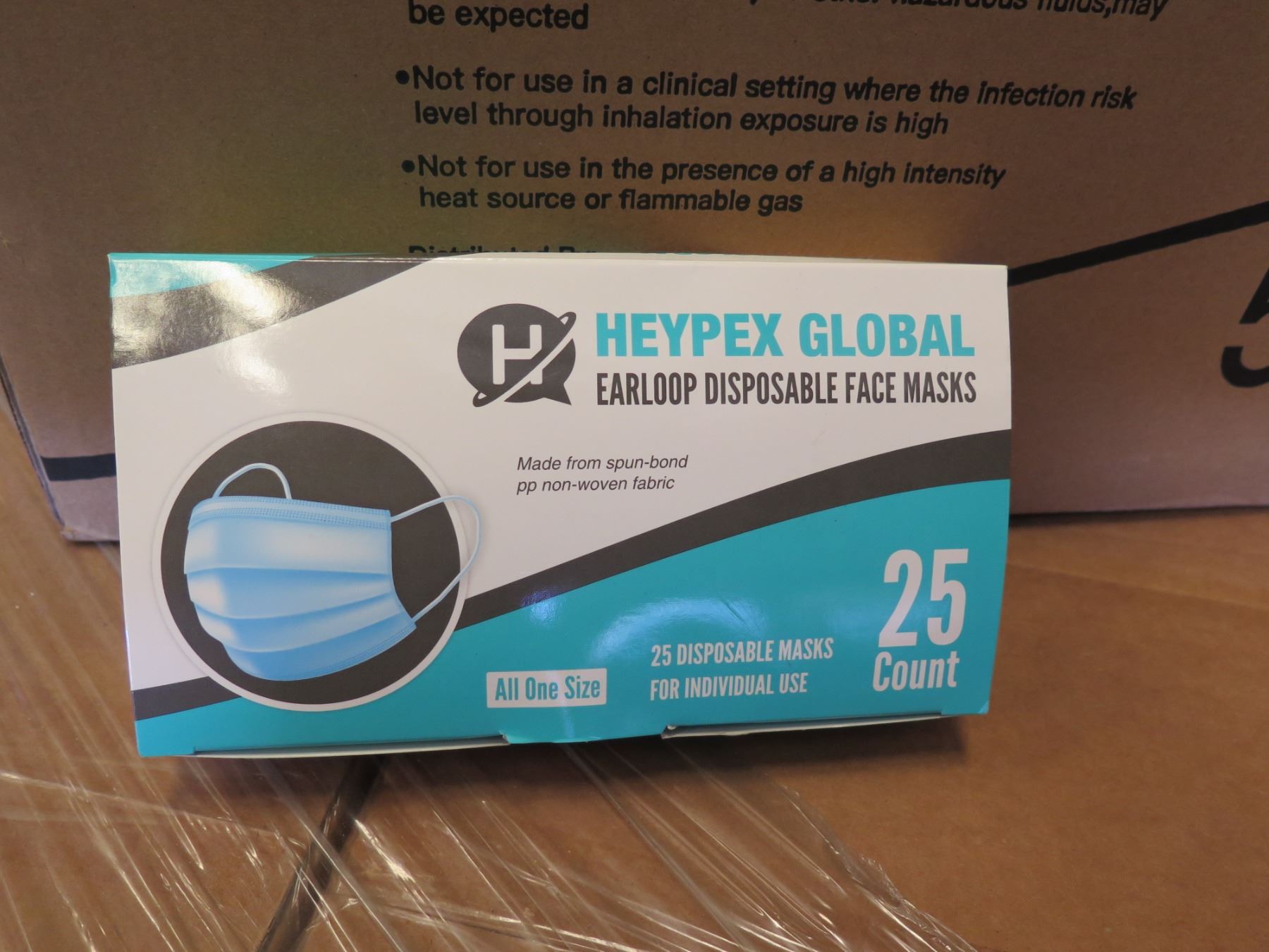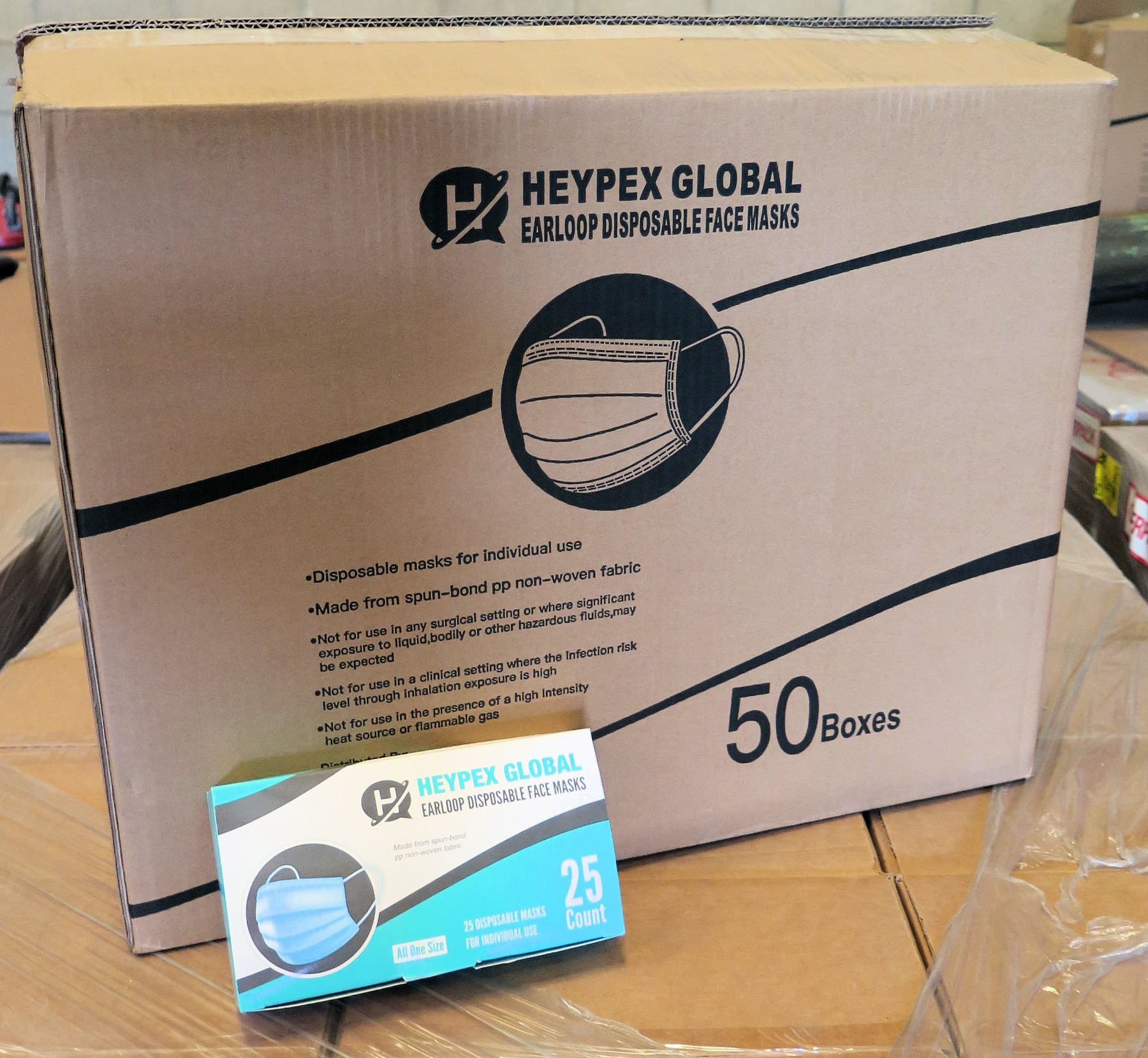 Qty 1 Box (50 Pkg) Heypex Global Disposable Face Masks (25 Masks/Pkg)