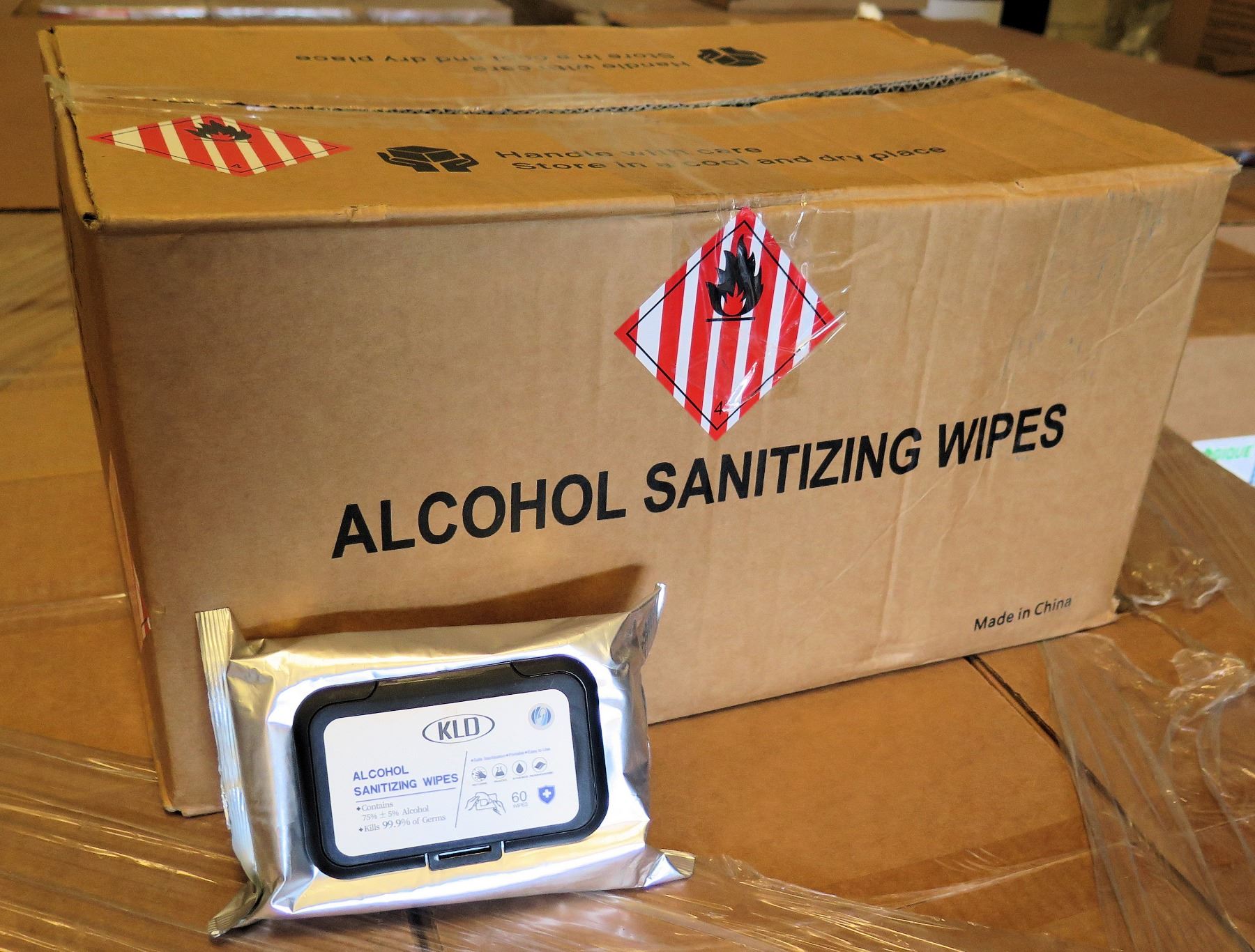 Qty 1 Box (50 Pkg) KLD 75% Alcohol Sanitizing Wipes (60 Wipes/Pkg)