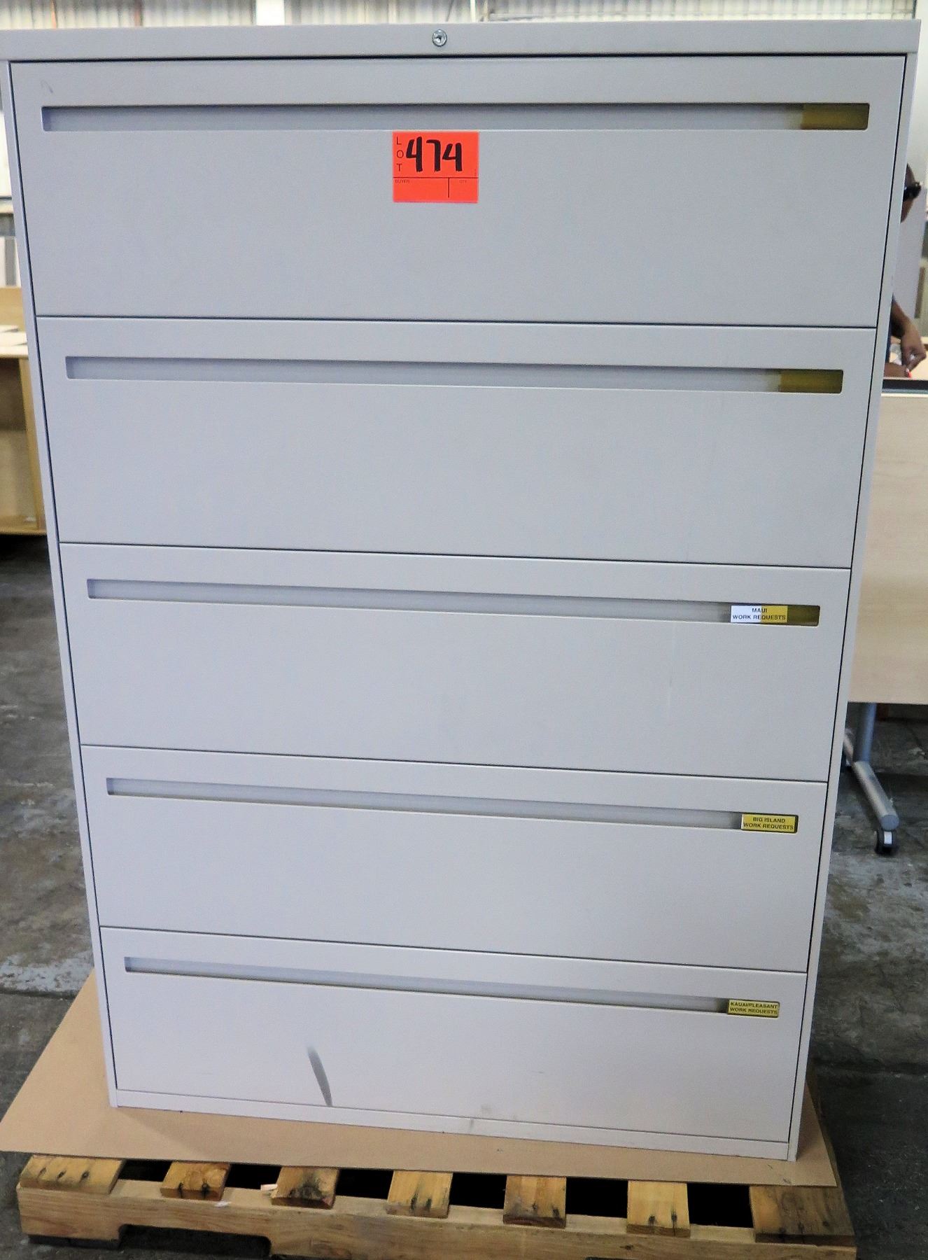 Qty 1 Metal 5 Drawer Lateral Legal Beige File Cabinet