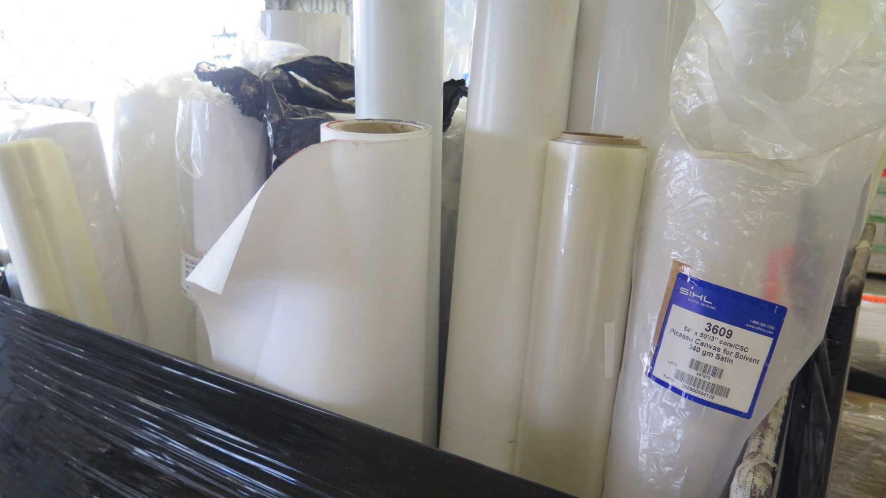 Qty 1 Metal Crate w/ Misc Rolled Paper Rolls - SIHL Picasso Canvas, etc