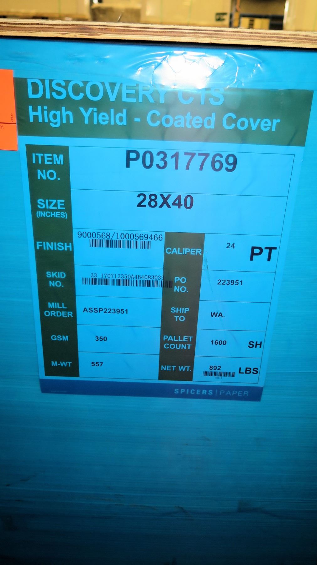 Qty 1 Pallet Discovery CTS 28 x 40 High Yield Cover Paper 1600 Sheets