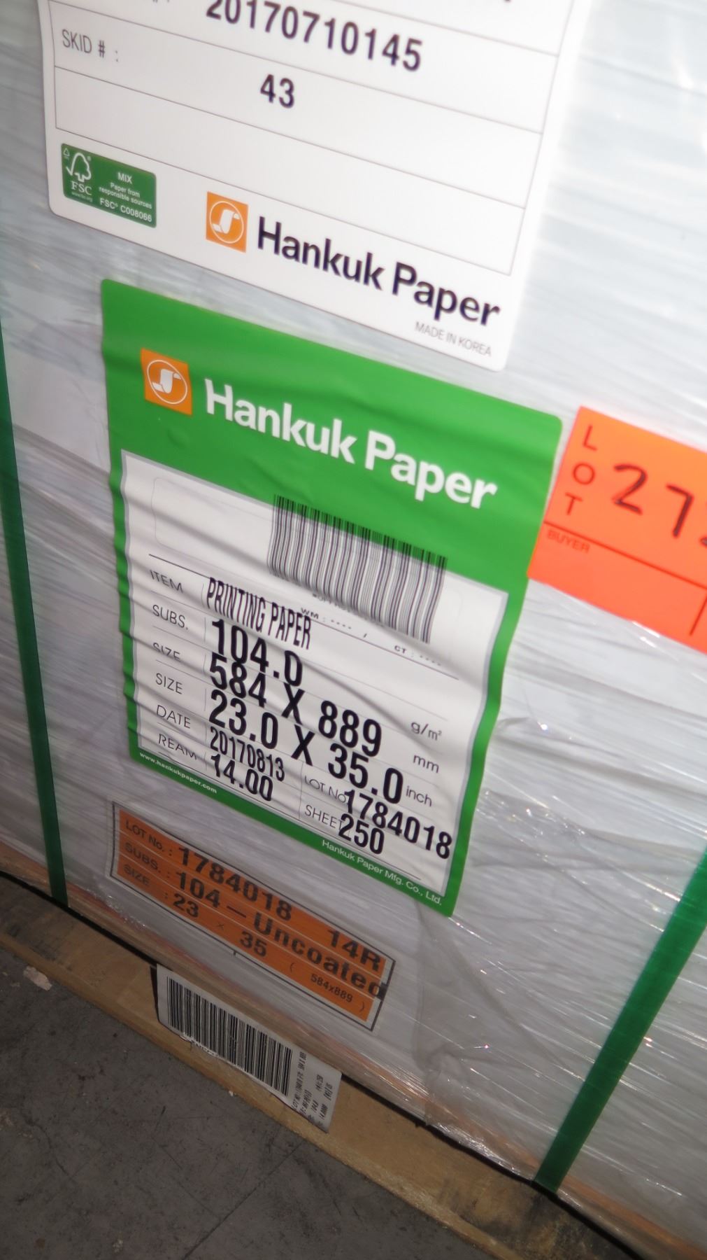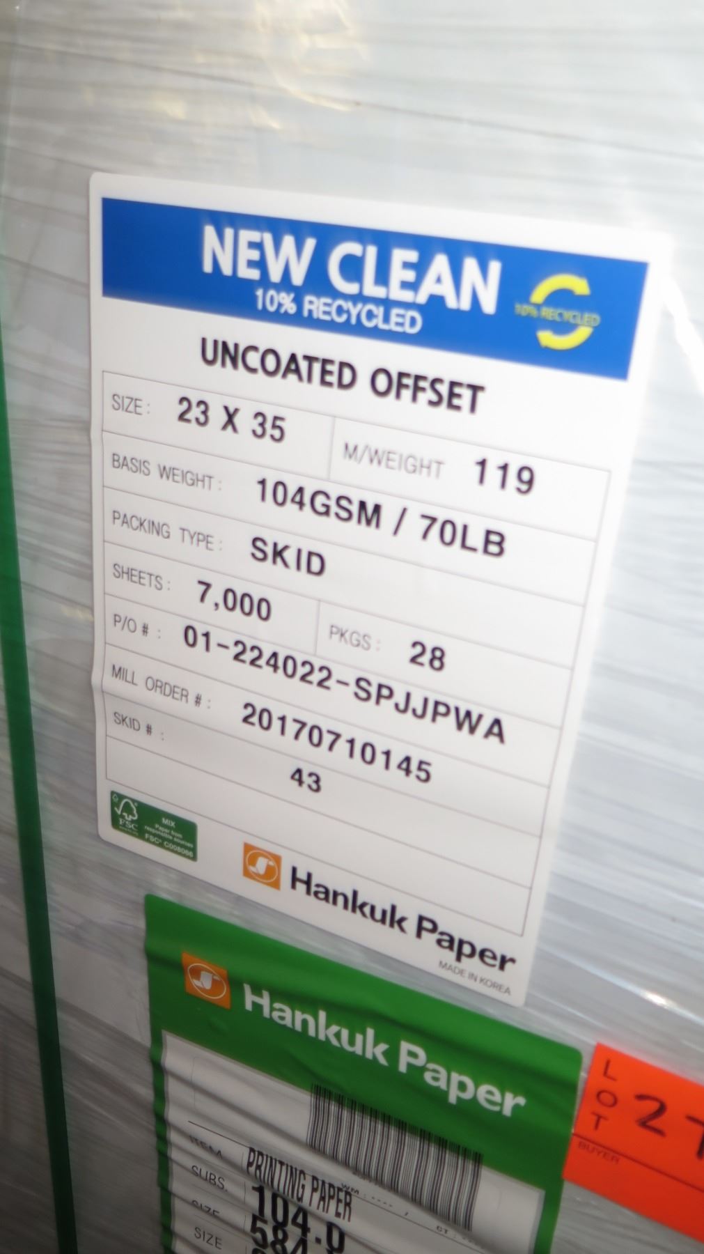 Qty 1 Pallet Hankuk New Clean Uncoated Offset & Printing Paper