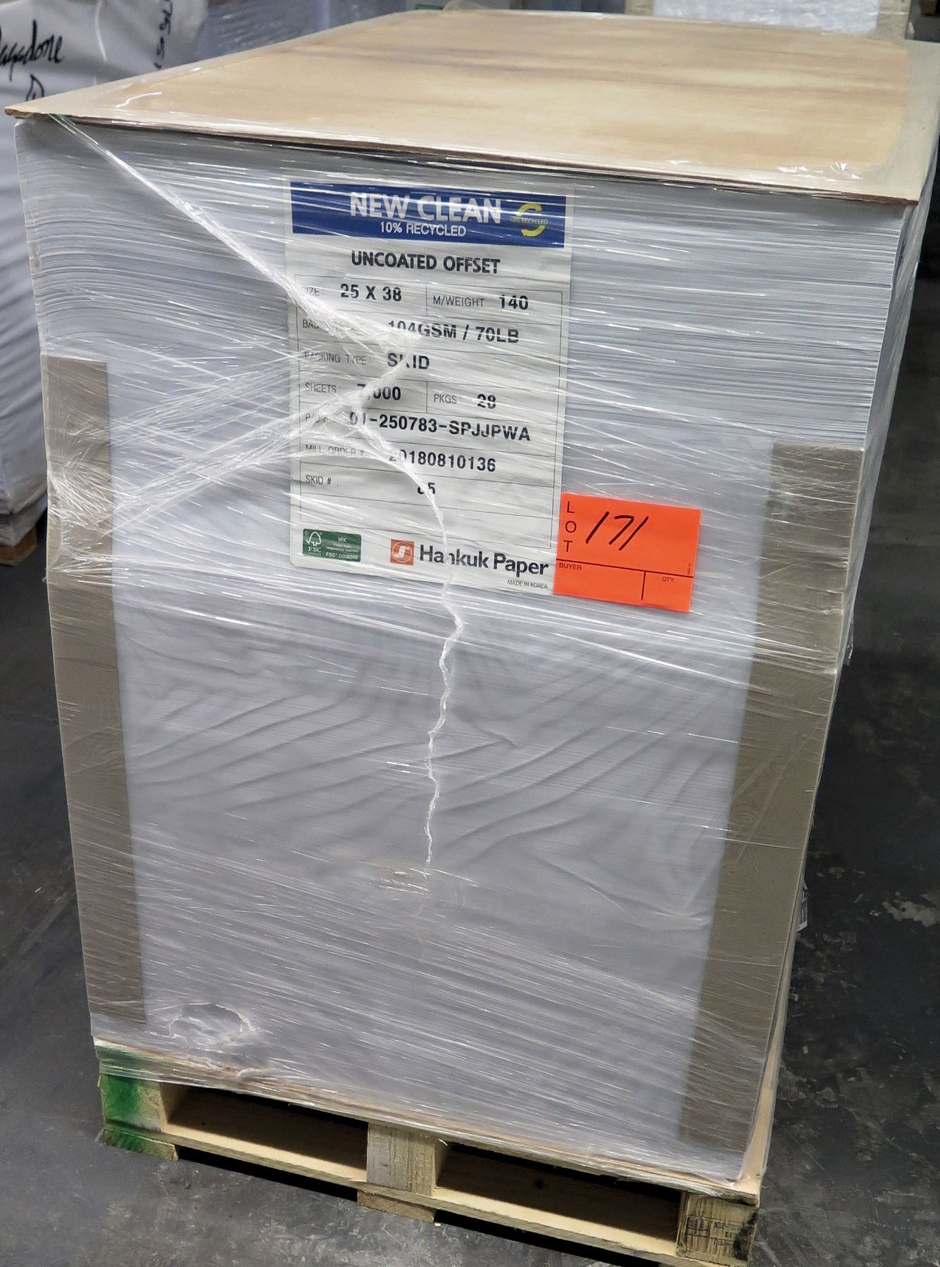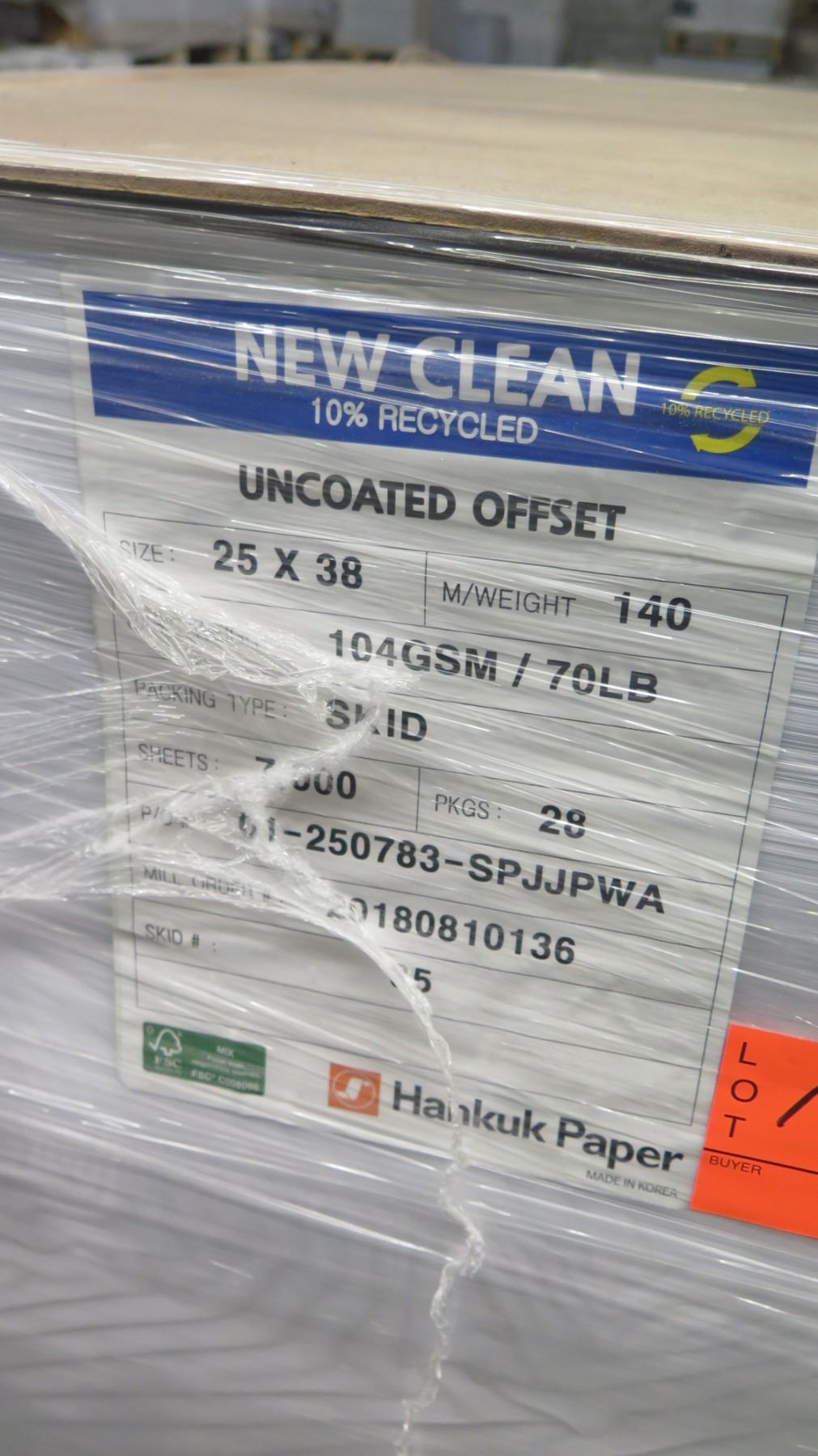 Qty 1 Pallet New Clean Hankuk Paper Uncoated Offset 25 x 38 Paper 7500 Sheets
