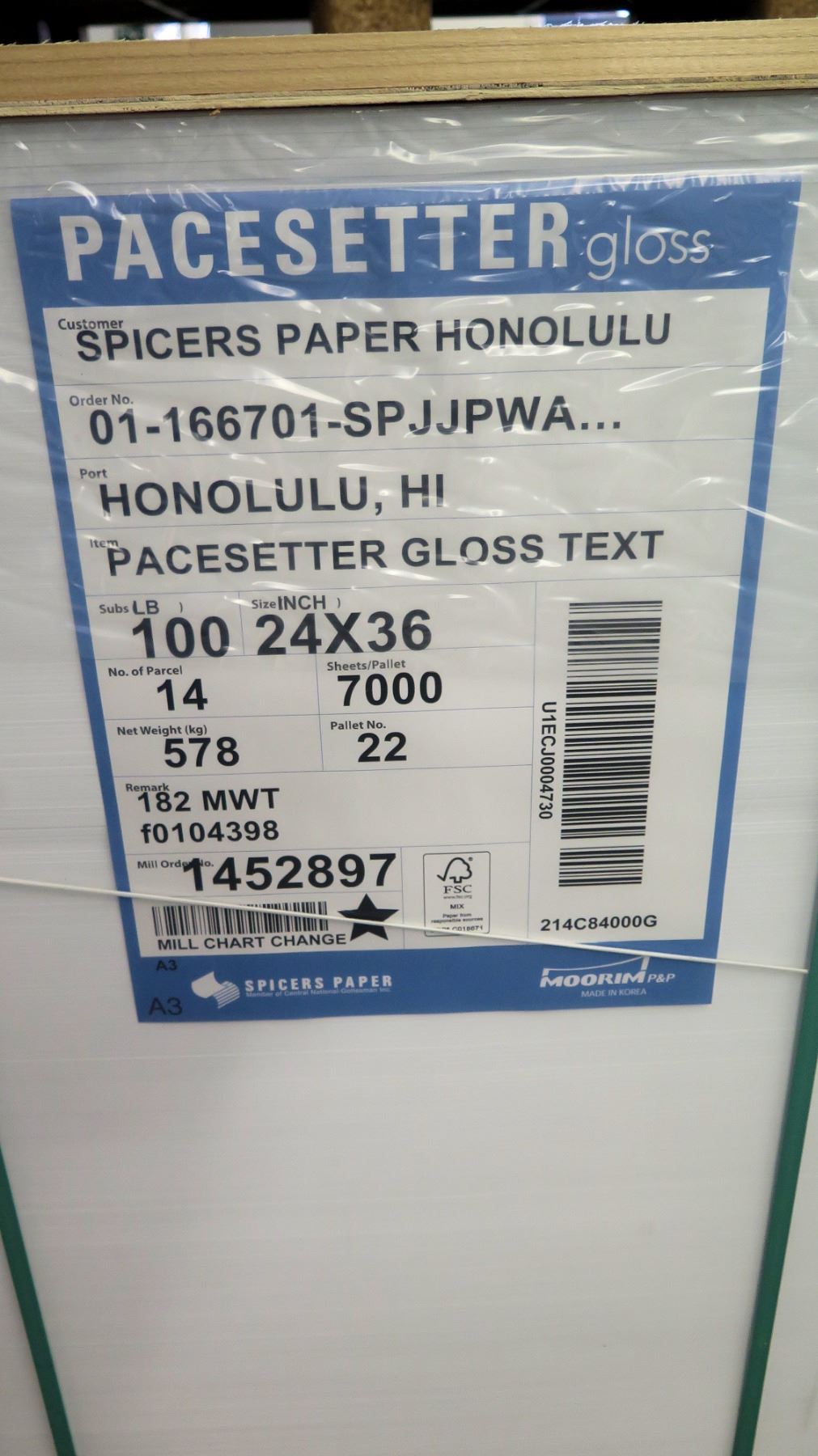 Qty 1 Pallet Pacesetter 24 x 36 Gloss Text Paper 7000 Sheets
