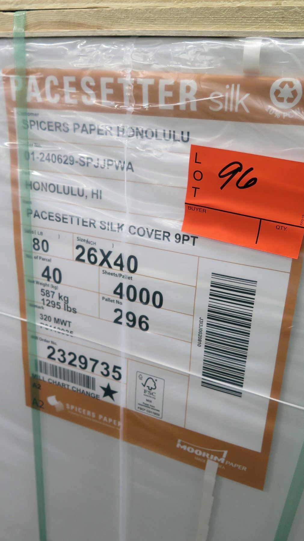 Qty 1 Pallet Pacesetter 26 x 40 Silk Cover Paper 4000 Sheets