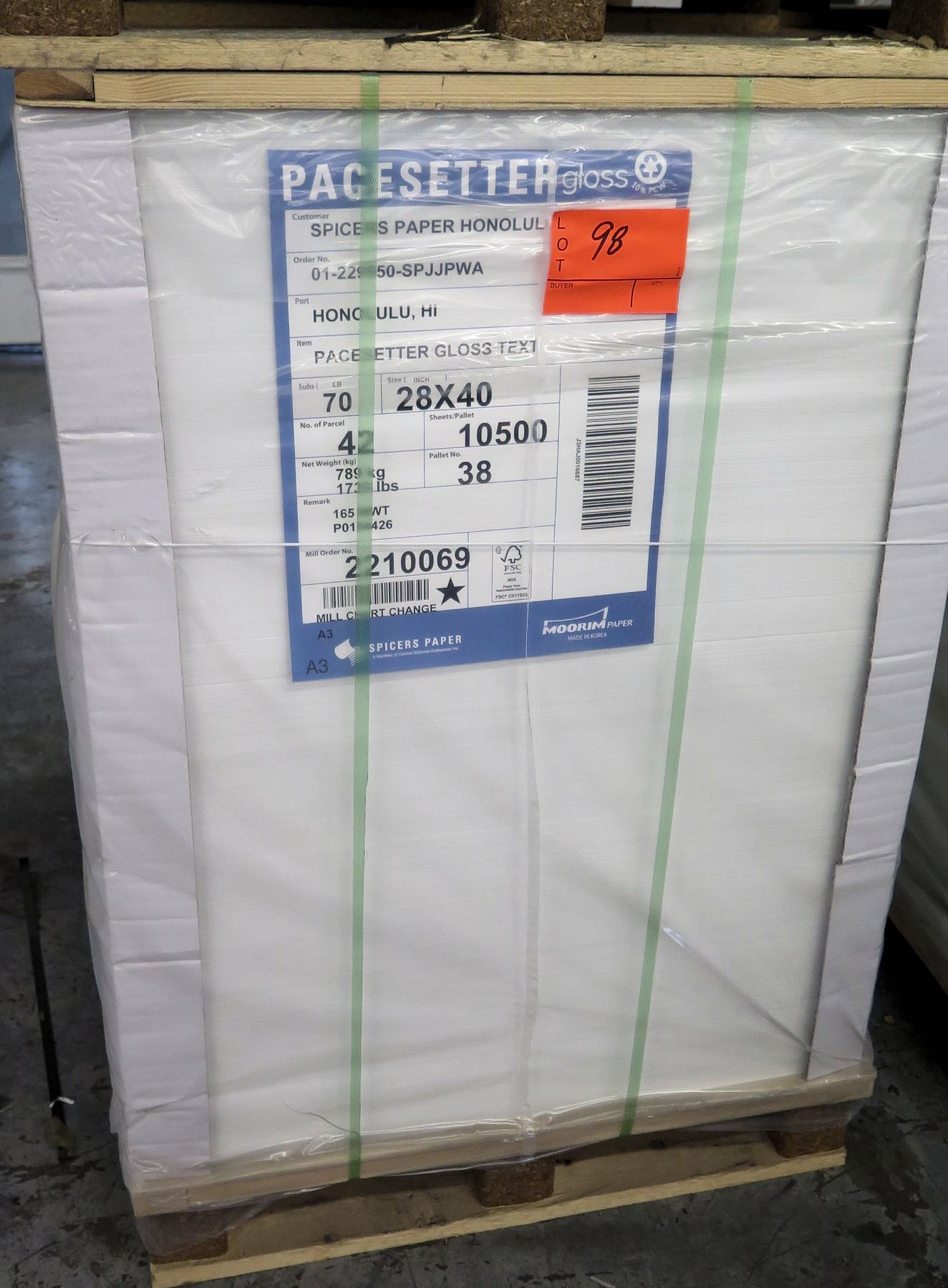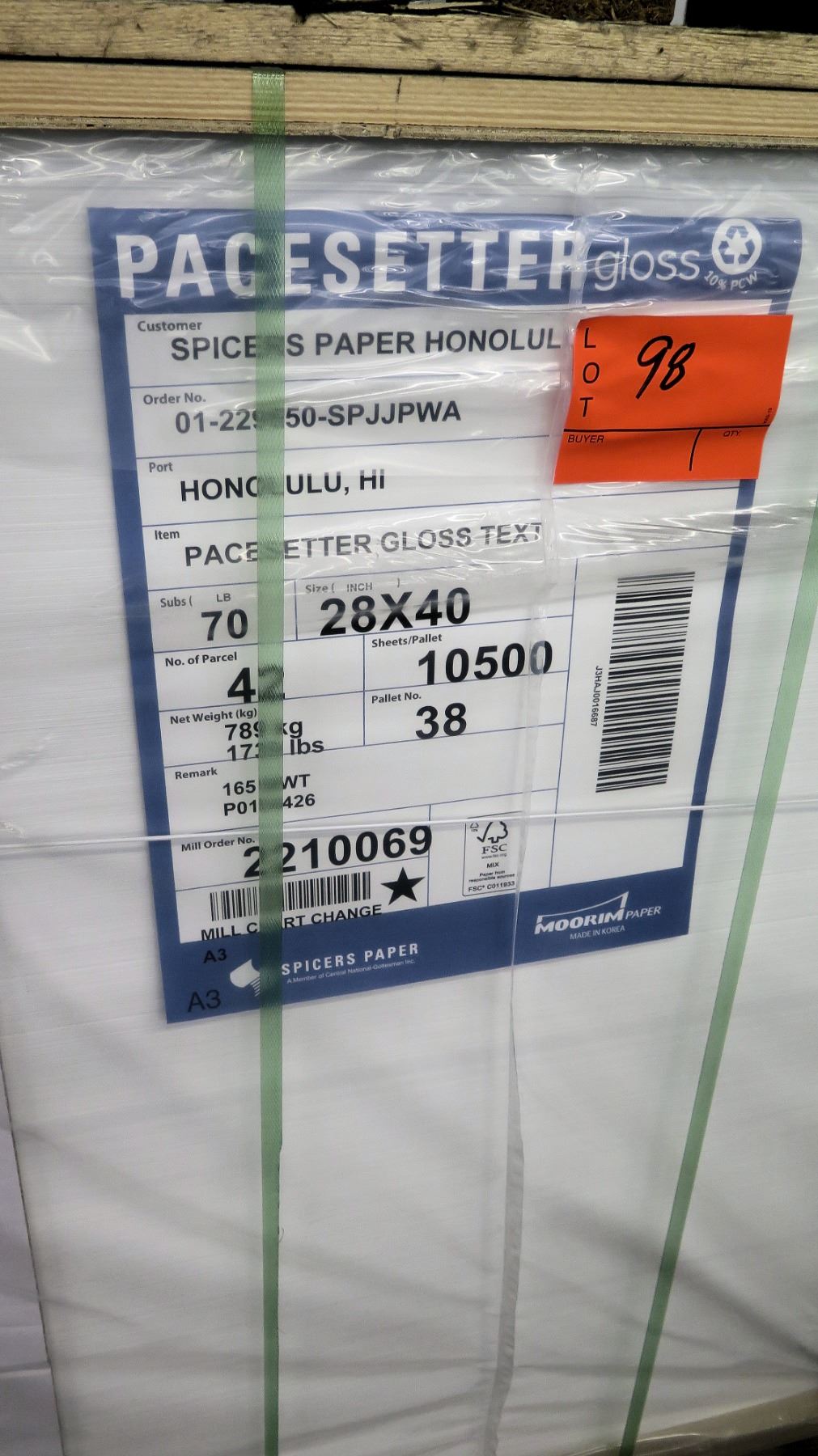 Qty 1 Pallet Pacesetter 28 x 40 Gloss Text Paper 10,500 Sheets