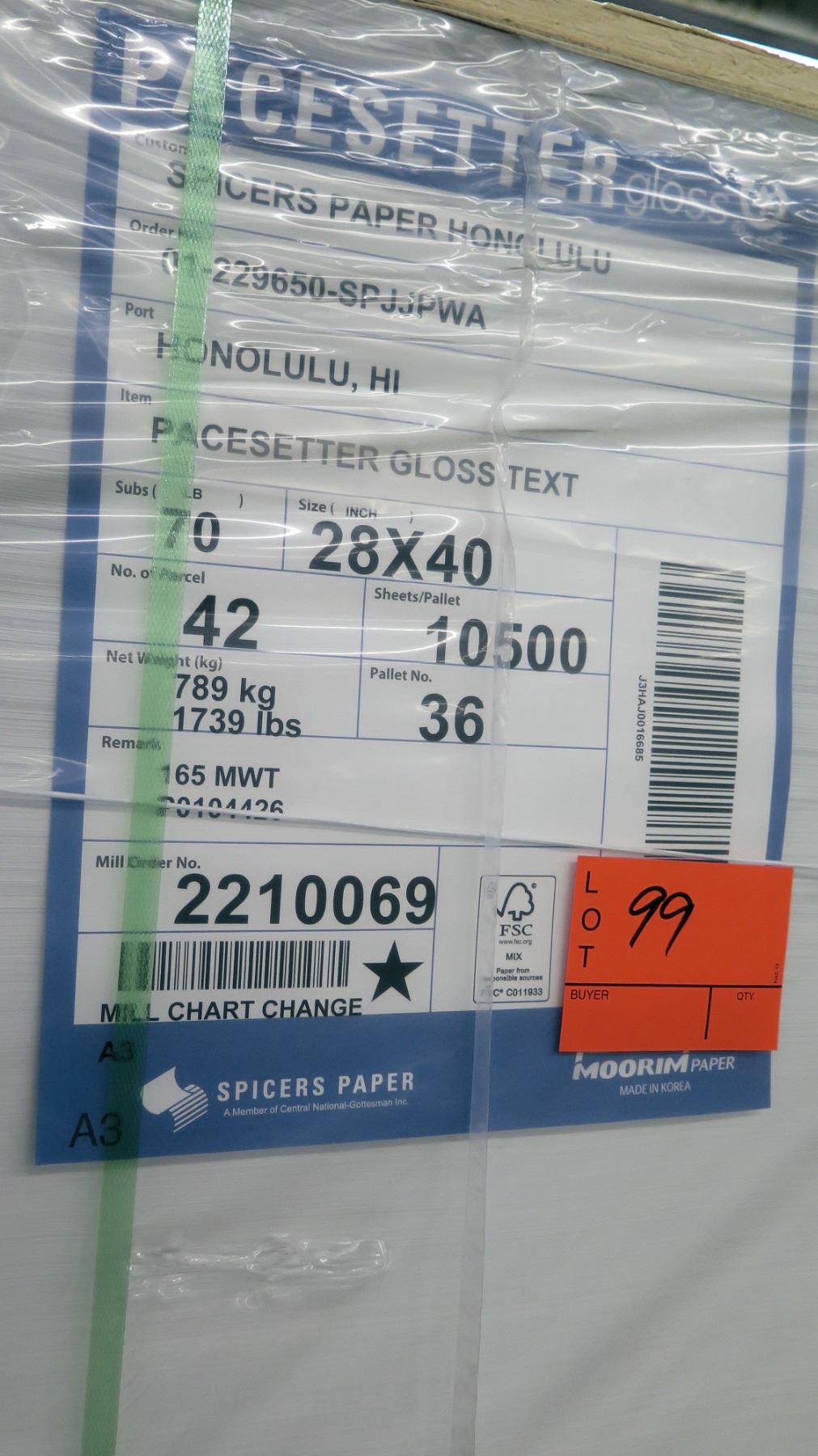 Qty 1 Pallet Pacesetter 28 x 40 Gloss Text Paper 10,500 Sheets