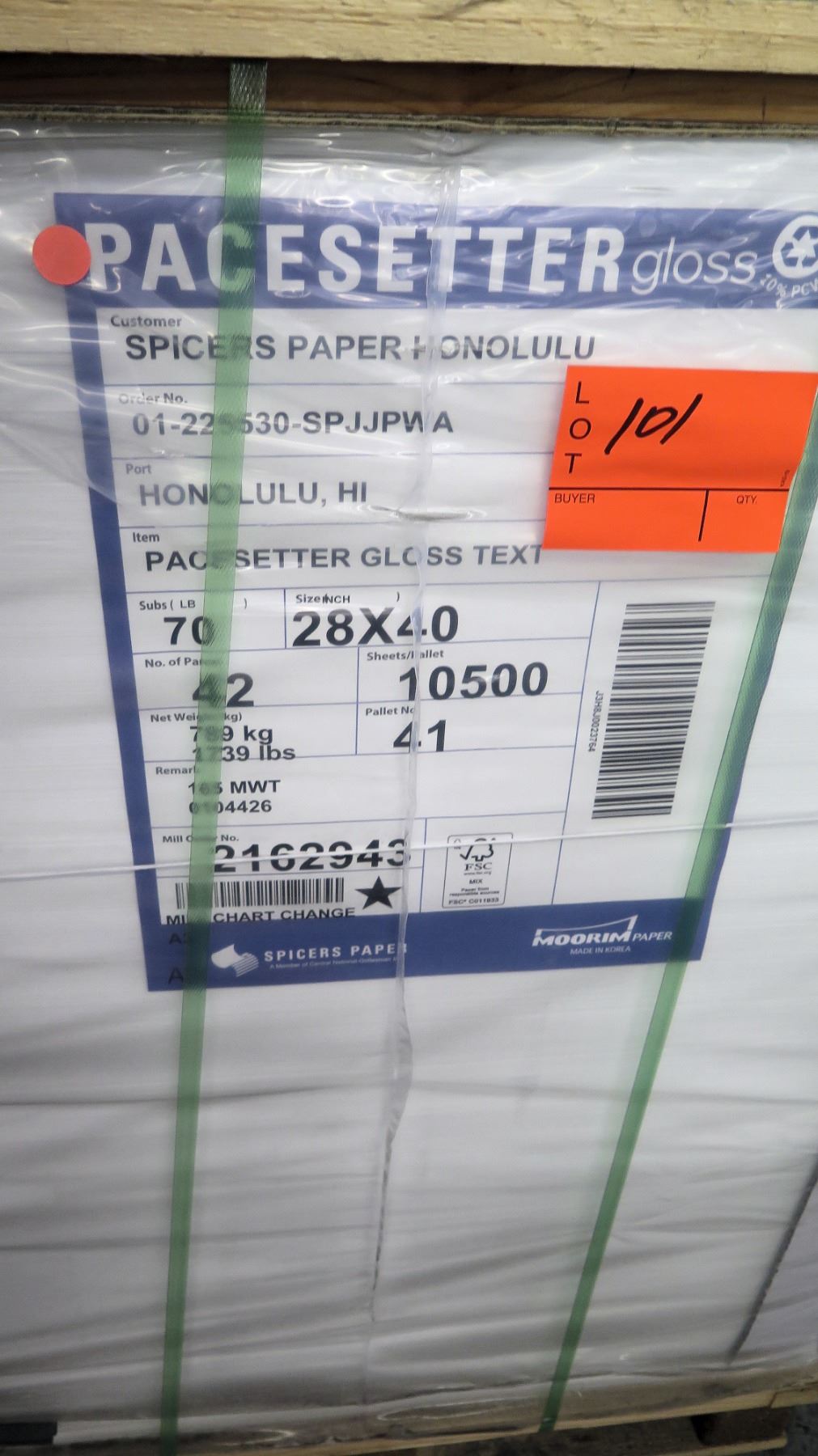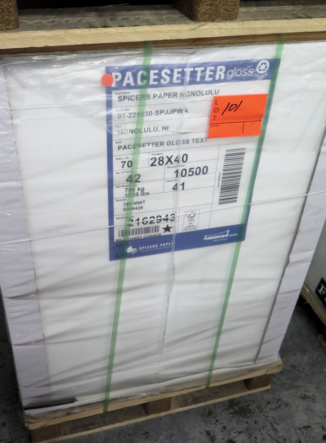 Qty 1 Pallet Pacesetter 28 x 40 Gloss Text Paper 10,500 Sheets