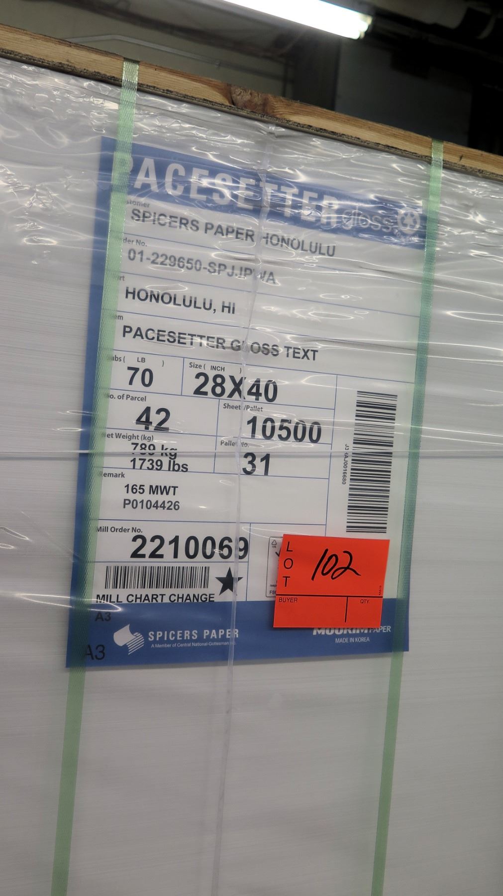 Qty 1 Pallet Pacesetter 28 x 40 Gloss Text Paper 10,500 Sheets