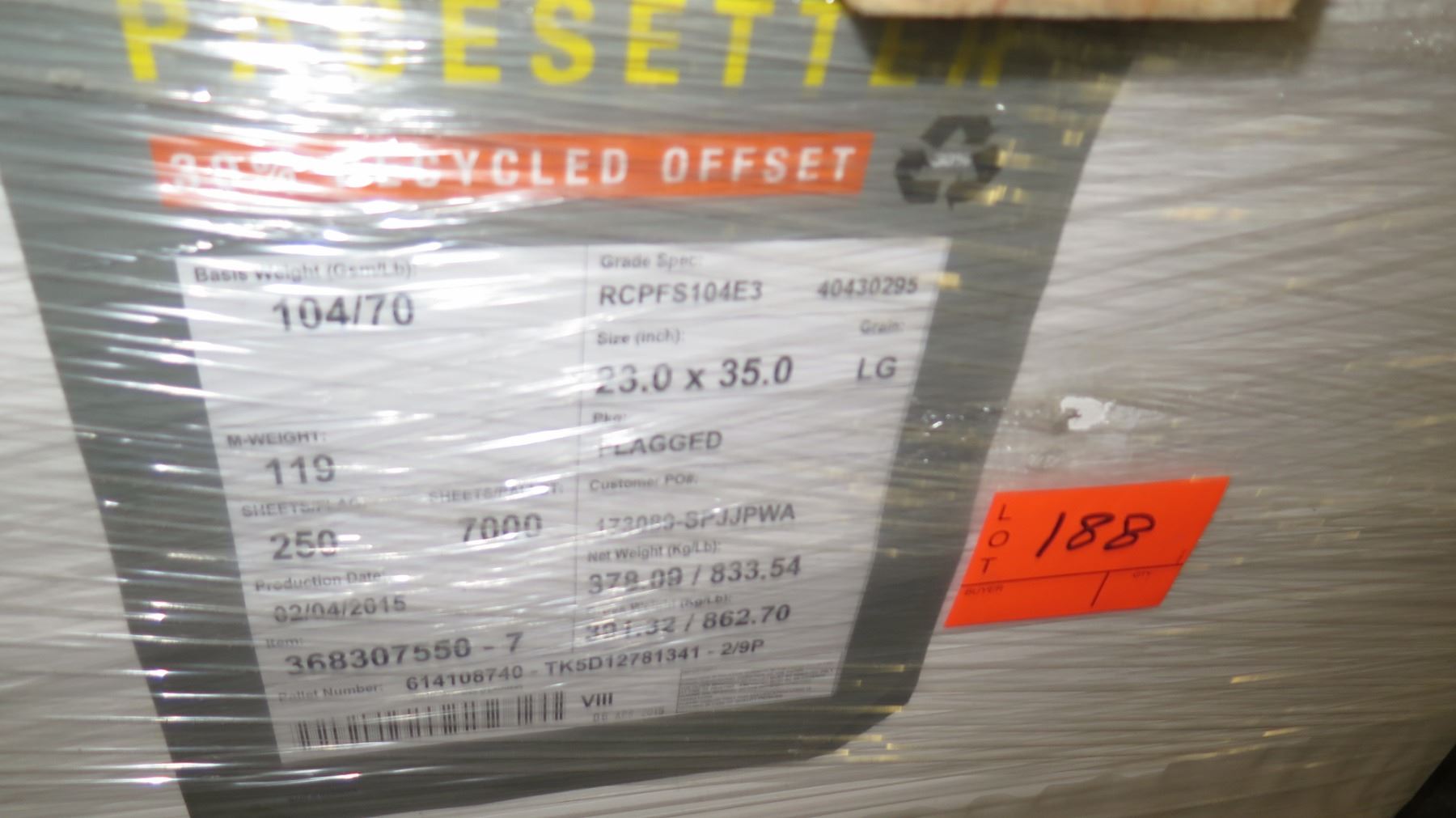 Qty 1 Pallet Pacesetter Recycled Offset 23 x 35 Paper 7000 Sheets