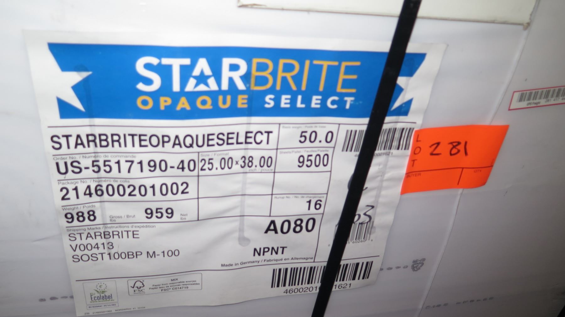 Qty 1 Pallet Starbright Opaque Select 25 x 38 Paper 9500 Sheets