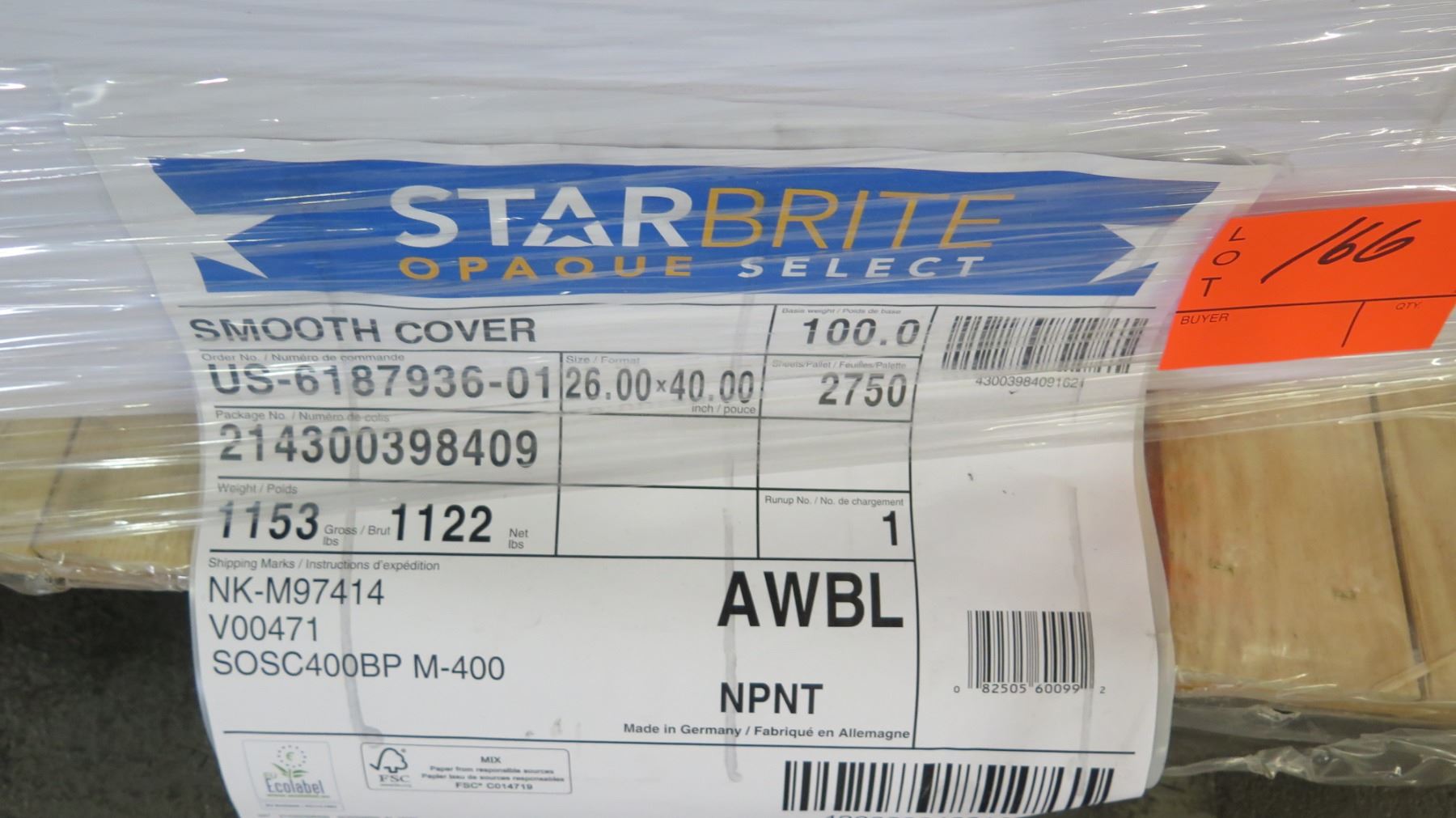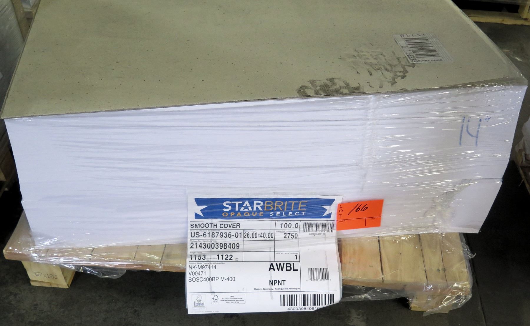 Qty 1 Pallet Starbright Opaque Select 26 x 40 Smooth Cover Paper 2750 Sheets
