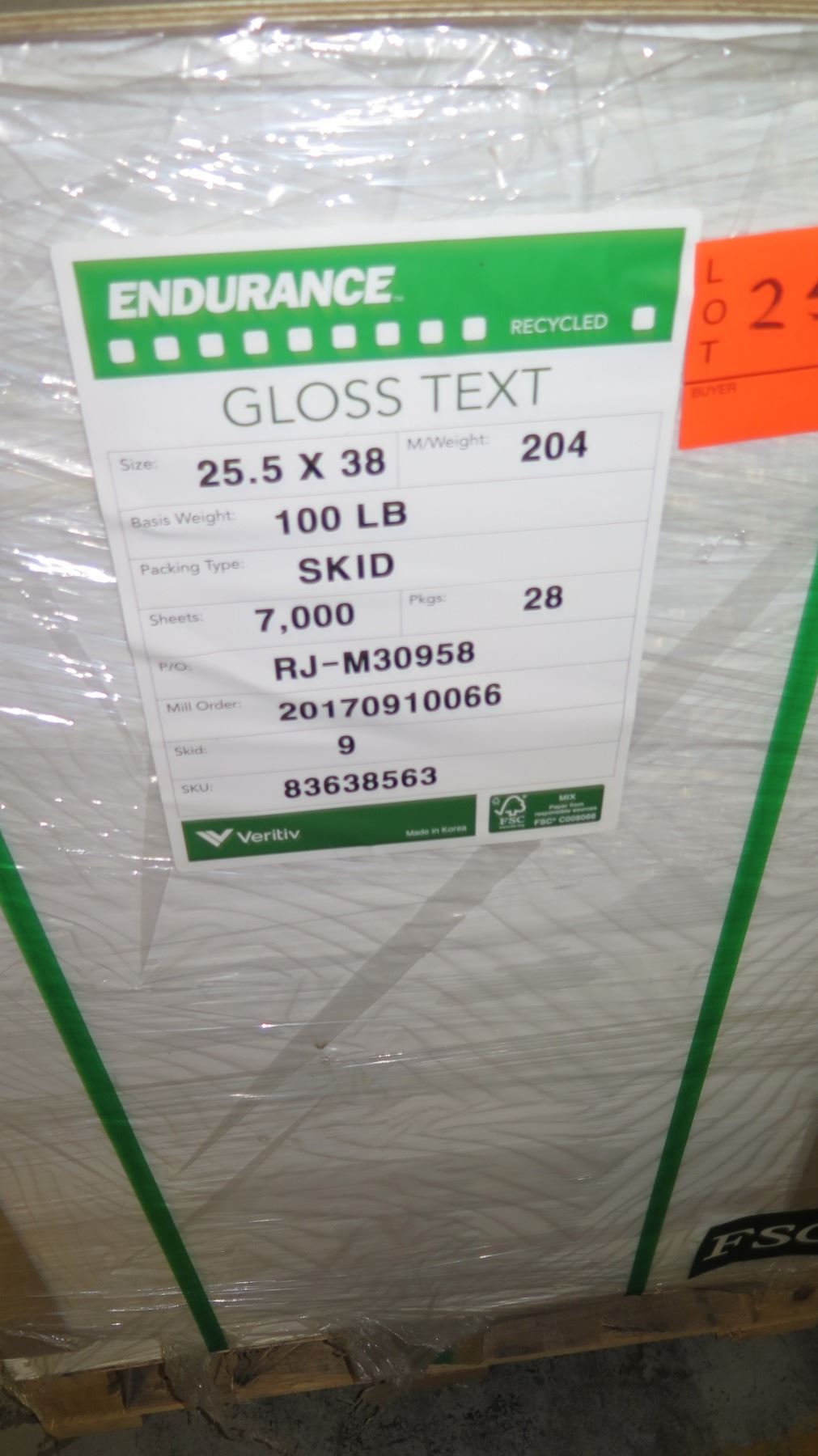 Qty 1 Pallet Veritiv Endurance Gloss Text 25.5 x 38 Paper 7000 Sheets